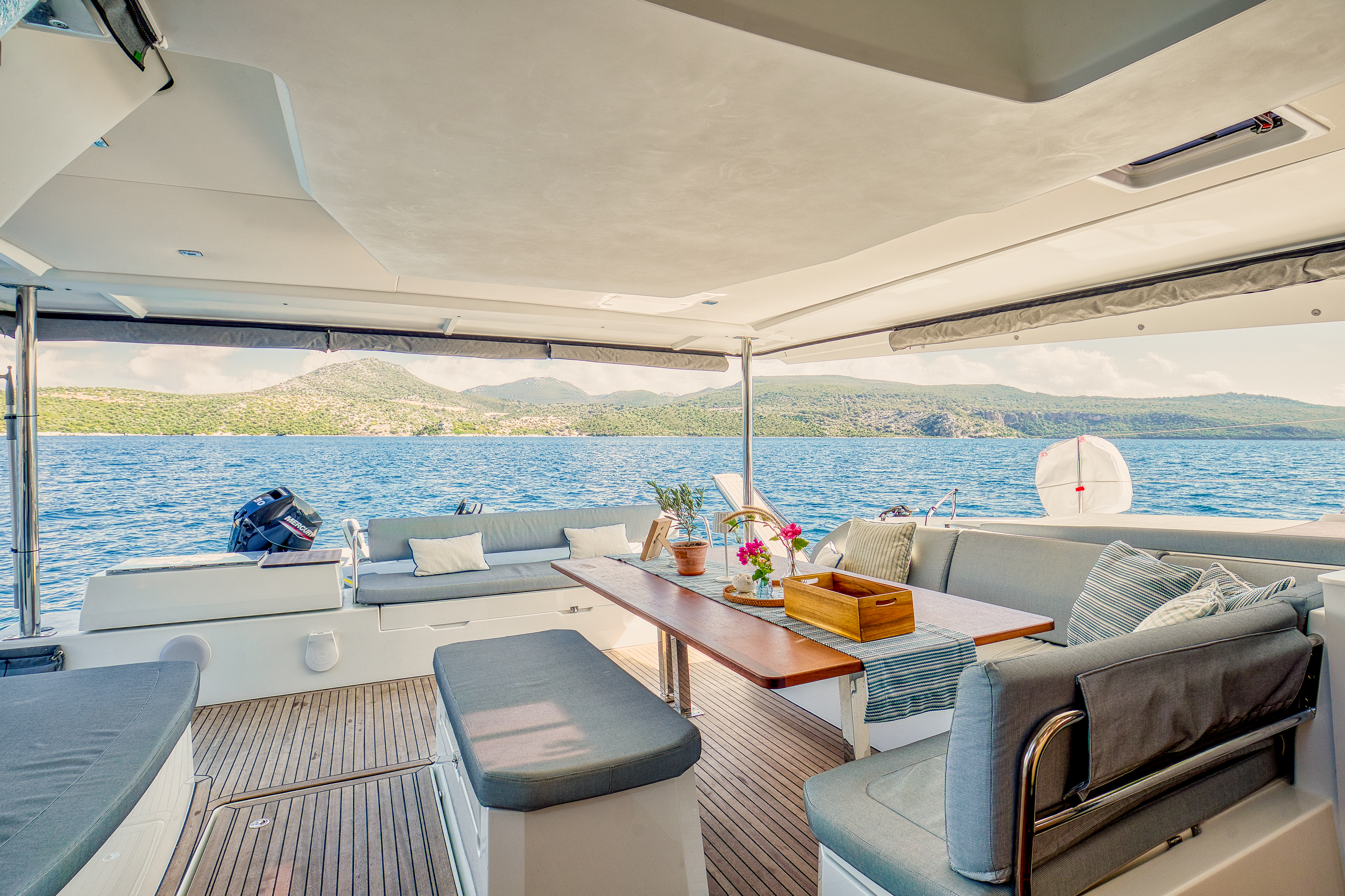 GeneratoreRadarPozzetto in teak12V plugsSafePilota automaticoVHFGeneratoreWatermakerDinghy ZAR mini ALU 3,4m with helmOutboard engine 30HPTeak floor transoms/cockpitBiminiWindlass el. controlA/C