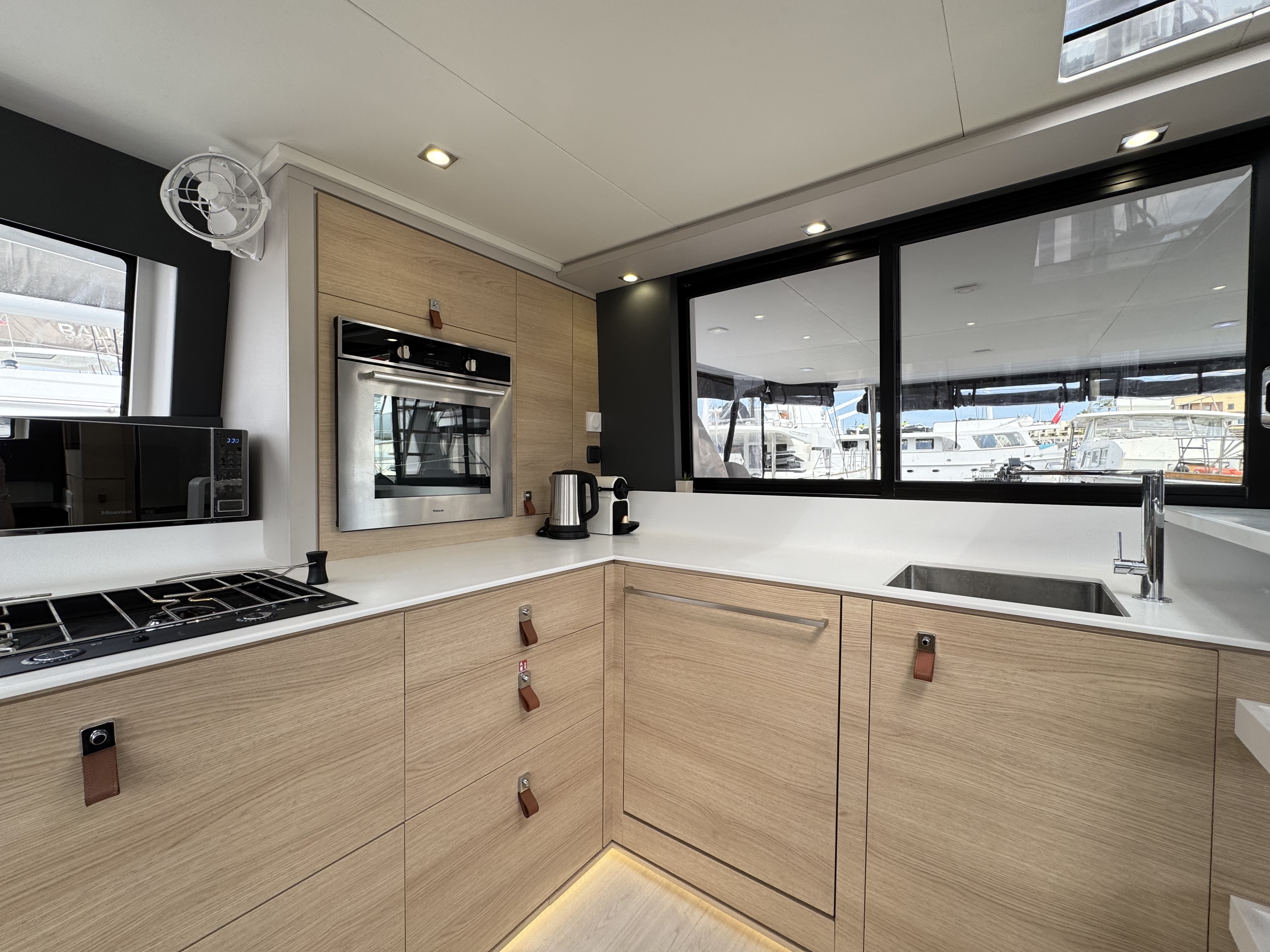 Stazione VentoEcoscandaglioAISSolcometroPilota automaticoVHFRadarGPSChartplotterRadio/BluetoothTransom ladderFrigoriferoBiminiDoccetta esternaForno a microondeFrigoriferoFornello con fornoWinch elettricoPannello solareFuoribordoTenderFly bridgeWatermakerWC elettriciDishwasherFansElica di PruaSpeakersPlanchaAria condizionataCockpit lihts