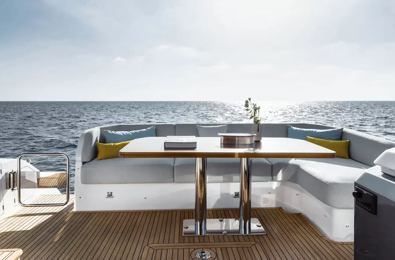 DishwasherVIDEO - TV - HI-FIHi-lo system for TV in salon (TV not included)Proportional bow thrusterAutomatic Bimini on flybridge (usable during navigation) Wine cooler in galleyCrew cabinDimmer lighting in salon and cabinsToilets with bidet faucet feature in Master and VIP bathroomsBlue teak in cockpitBlue teak on side decksBlue teak on swim platformFlybridge furniture with refrigerator and barbecueFlybridge top in synthetic materialFolding backrest for flybridge bow sunbathing cushions (Batyline fabric)Sunshade sail on bow with removable carbon fiber polesWasher dryer combo unitTelescopic gangwaySeakeeper stabilizer 9 Garmin Gold package Garmin AIS 8002 additional cleats on transomStainless steel anchor2 underwater lights on transomUpgraded external cushions in Batyline fabric