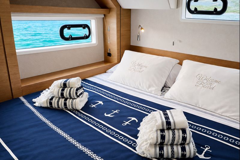 Teak DeckBiminiSliding curtainsWatermakerShower outsideCongelatoreBarbecueScaletta per il bagnoStoviglieAir Conditioning CabinsBluetooth speakersCuscini in pozzettoElectric WCGeneratoreDishwasherAir Conditioning DinetteJuicerRiscaldamentoTV in dinettePannelli solariOutboard engine 20 HPTender 3.40 mt