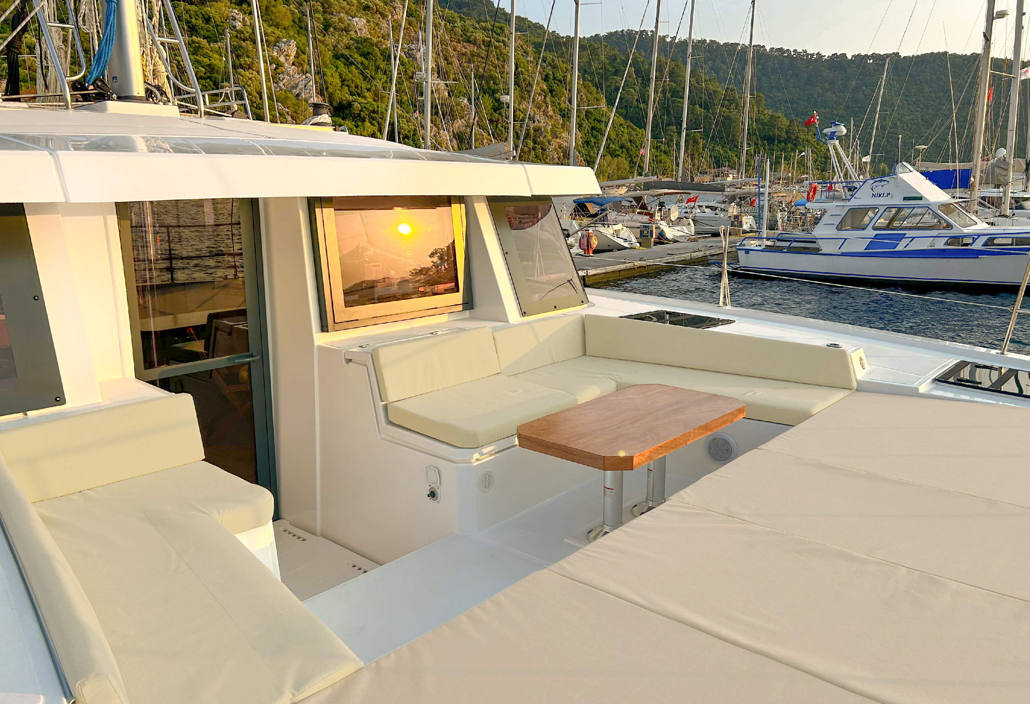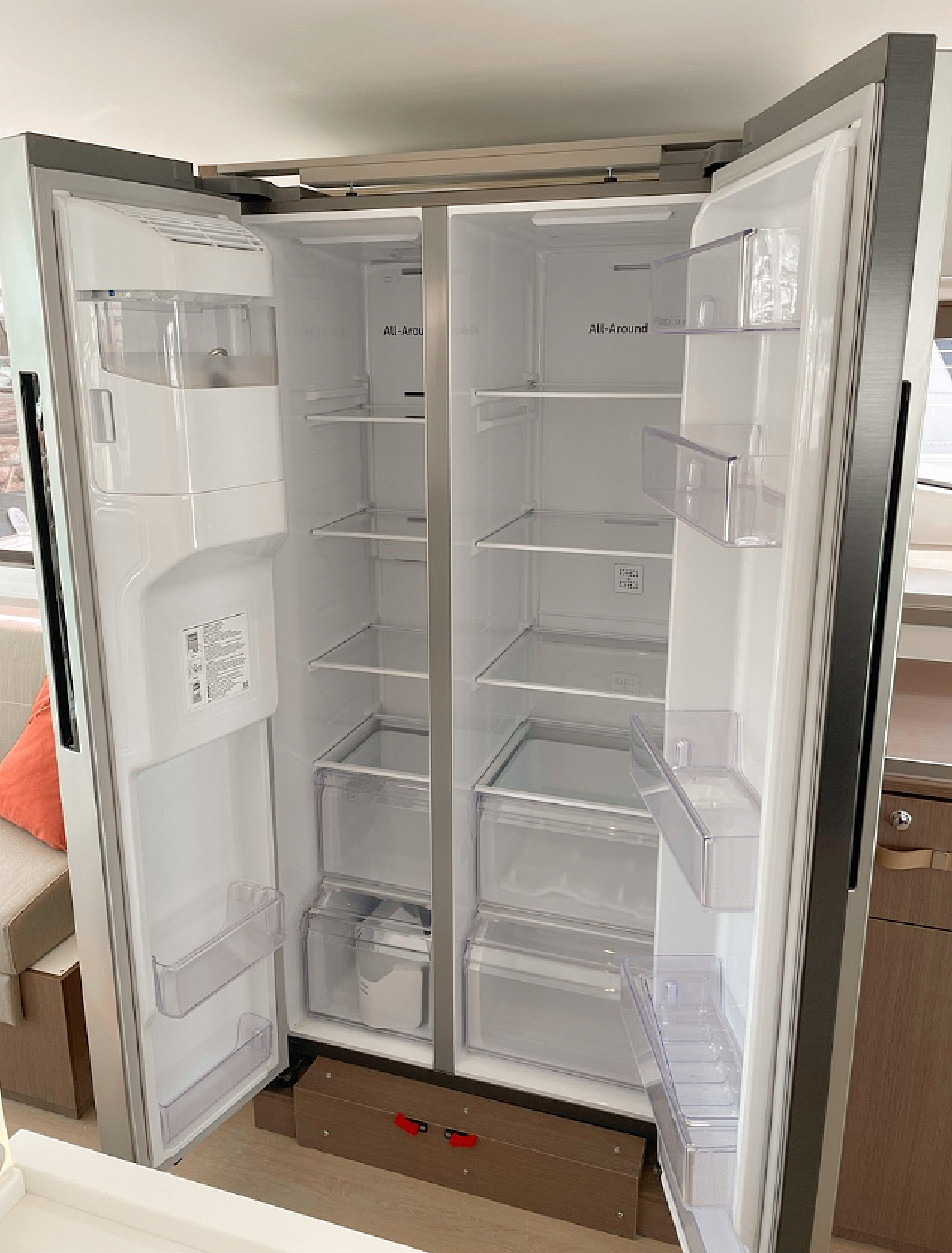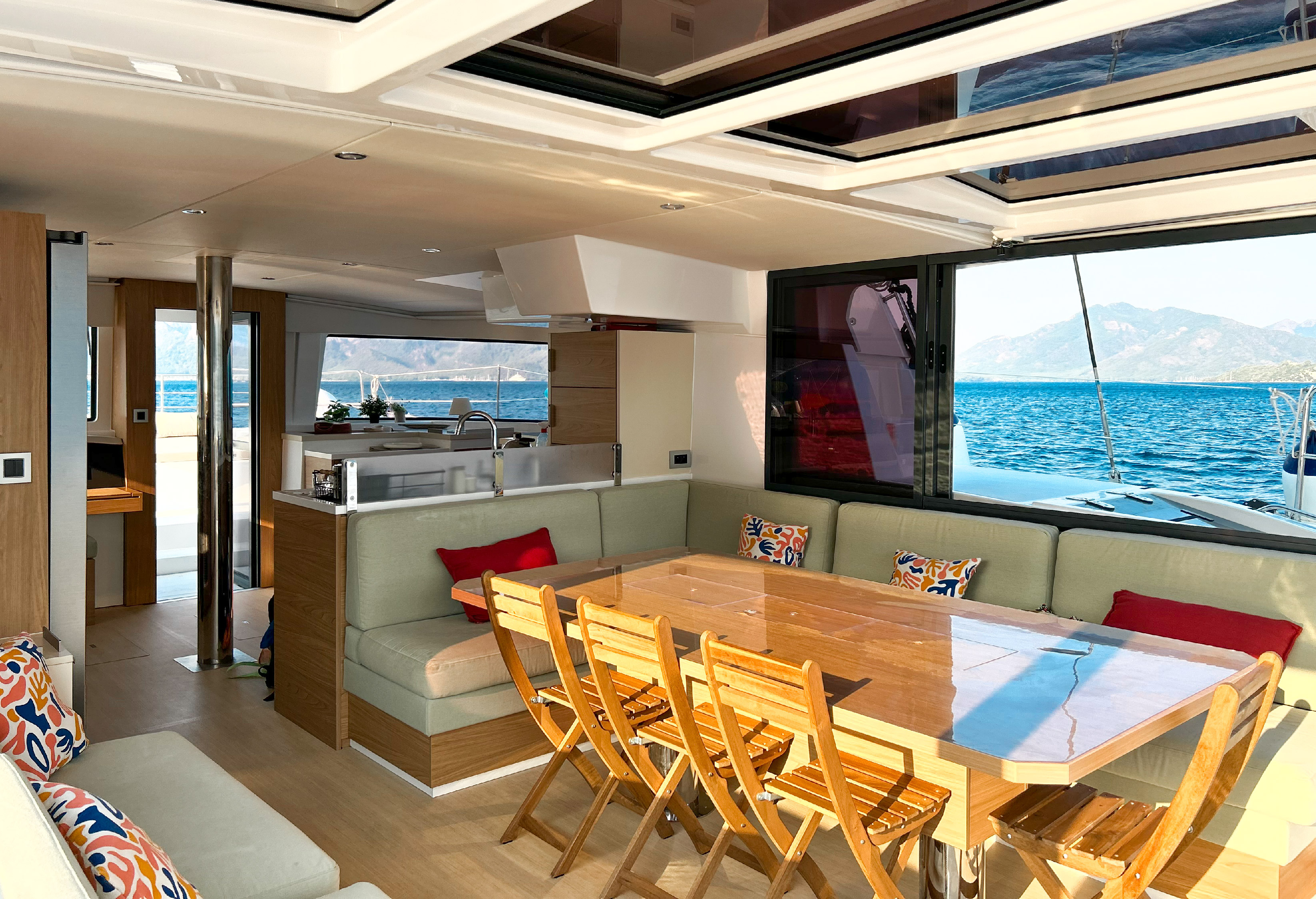 Pilota automaticoGenerator 10 kWOutside GPS plotterBoat rib 3.4 mFuoribordoElectric winchesFlybridgeClassic mainsailSalon GPS plotterSolar pnelsInverter 2000wBiminiDocciaCookerCuscini in pozzettoCoffee machineAir condition in cabnins and saloonCuscini e copertekitchen utensilsFrigoriferoLavelloDishwasher (9 pers)BBQForno a microondeAsciugamaniWatermaker 12V, 105l/hRiscaldamentoFornoOutside showerCongelatoreMacchina del ghiaccioWC elettricoSnorkel setOuside speakersSun padsInside speackersAudio system