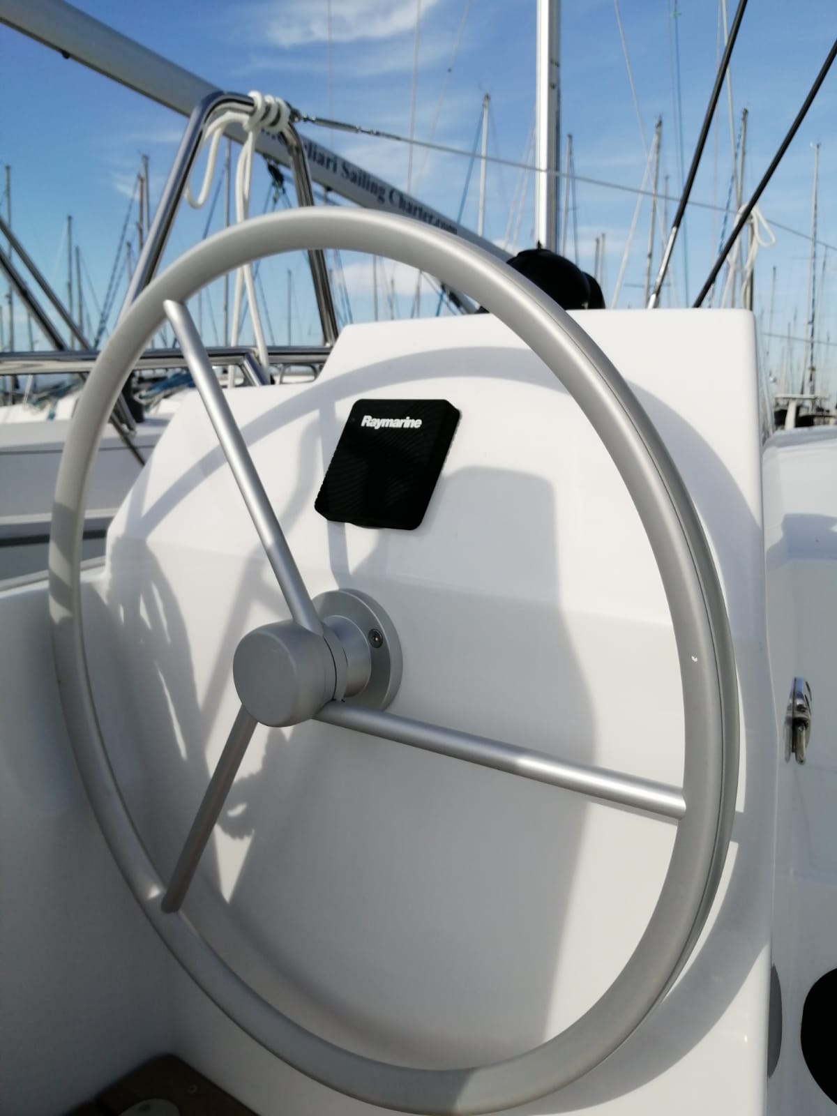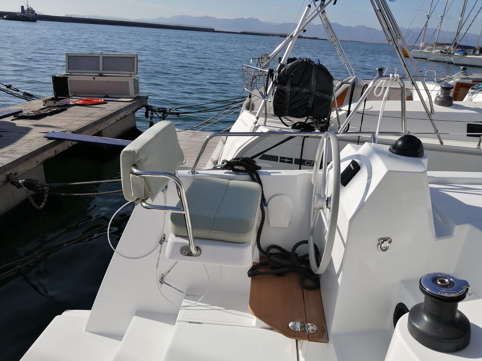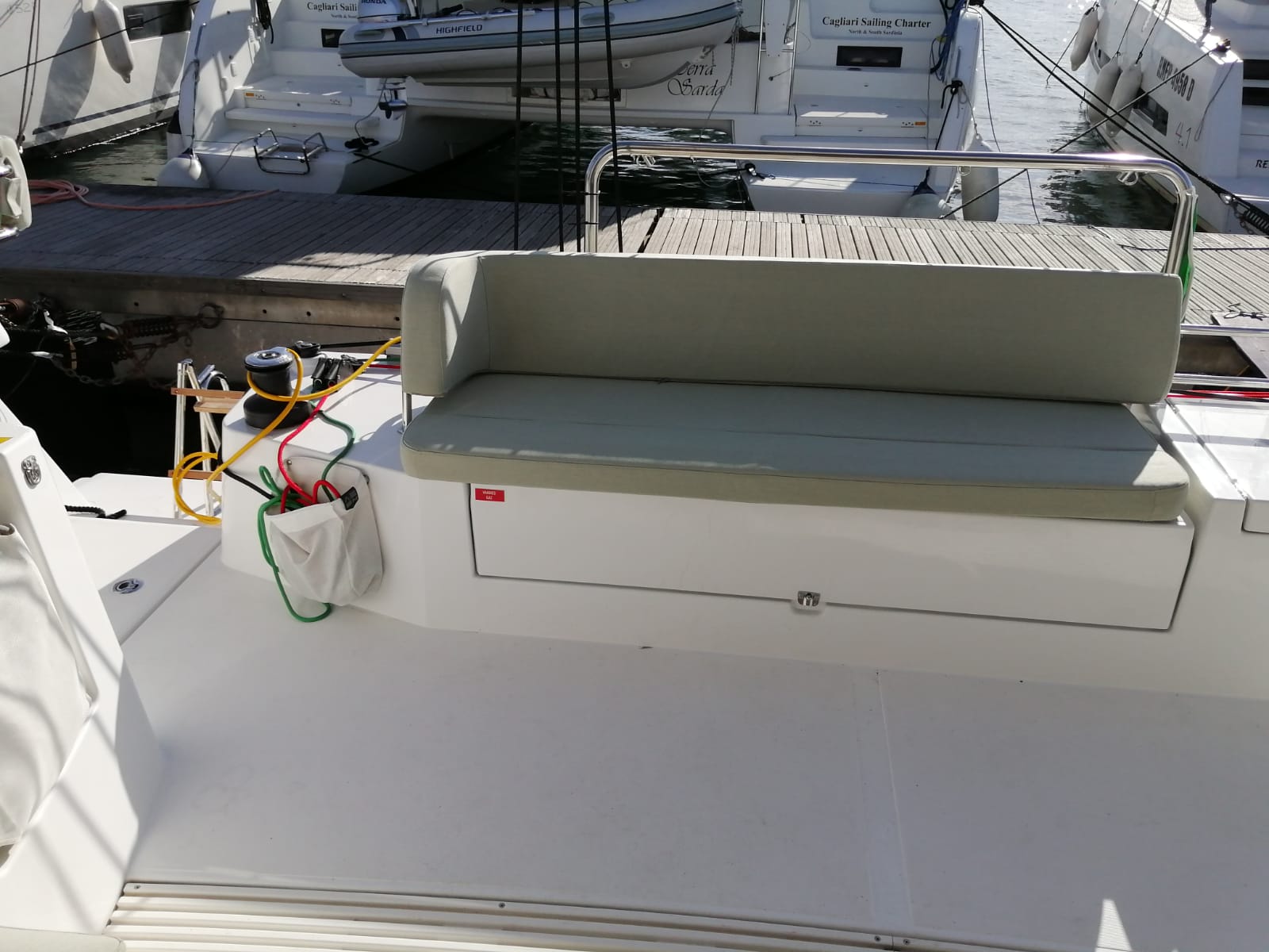 Cuscini e coperteNautical ChartsGiubbotti di salvataggioCushions in cockpit Acqua caldaStazione VentoRefrigerator 106lt.Genoa avvolgibileMapsWood GangwayOutdoor showerElectric winch mainsailSaloon speakersAuxiliary anchor Main AnchorLife BuoyZattera di salvataggioBattery charger (220V)VHFMain deck CompassChart PlotterPilota automaticoStazione VentoDesalter(200 lt/h) Solar Panel Altoparlanti in pozzettoBarbecueItalian MokaFrigoriferoFornoMoka Machine like NespressoCongelatoreFull Galley equipment Battened MainsailLazy jackLazy bag