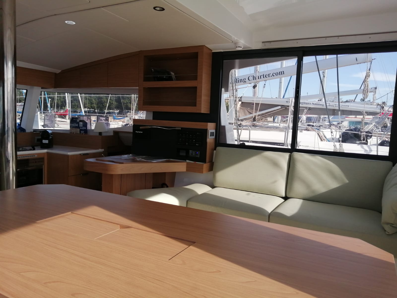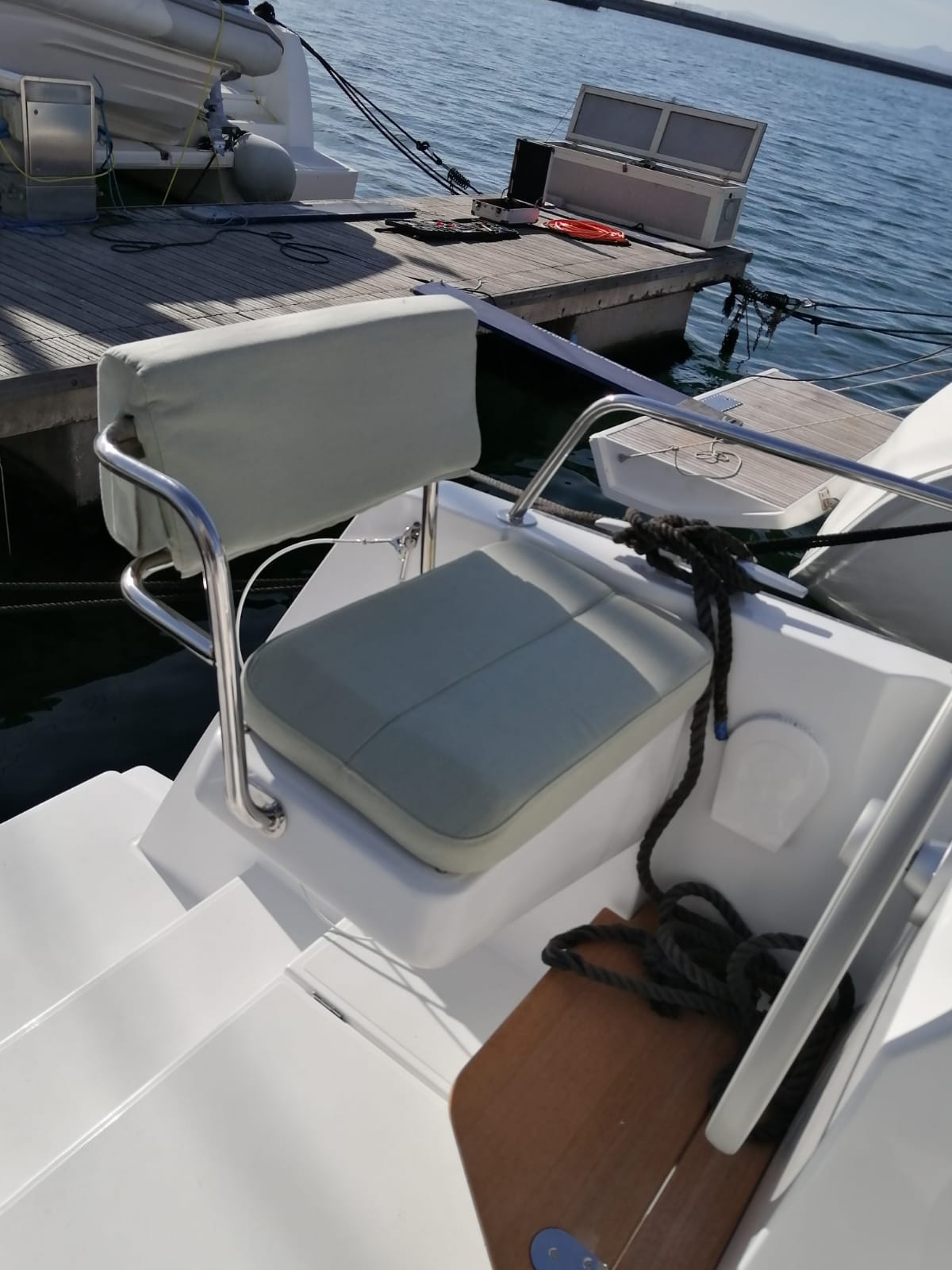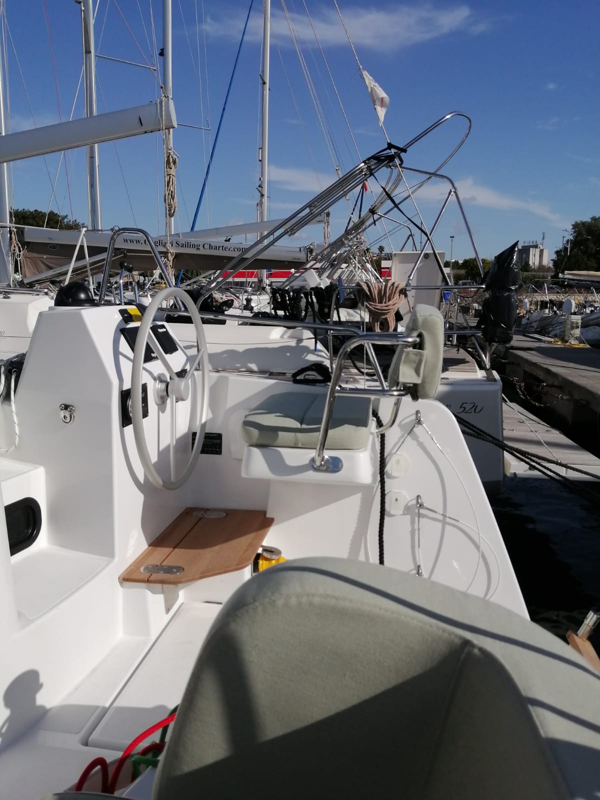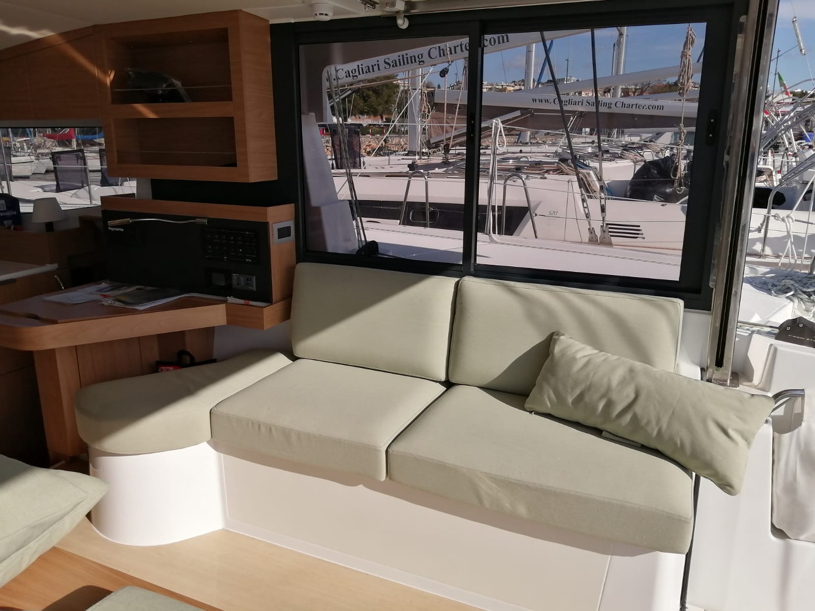 Cuscini e coperteNautical ChartsGiubbotti di salvataggioCushions in cockpit Acqua caldaStazione VentoRefrigerator 106lt.Genoa avvolgibileMapsWood GangwayOutdoor showerElectric winch mainsailSaloon speakersAuxiliary anchor Main AnchorLife BuoyZattera di salvataggioBattery charger (220V)VHFMain deck CompassChart PlotterPilota automaticoStazione VentoDesalter(200 lt/h) Solar Panel Altoparlanti in pozzettoBarbecueItalian MokaFrigoriferoFornoMoka Machine like NespressoCongelatoreFull Galley equipment Battened MainsailLazy jackLazy bag