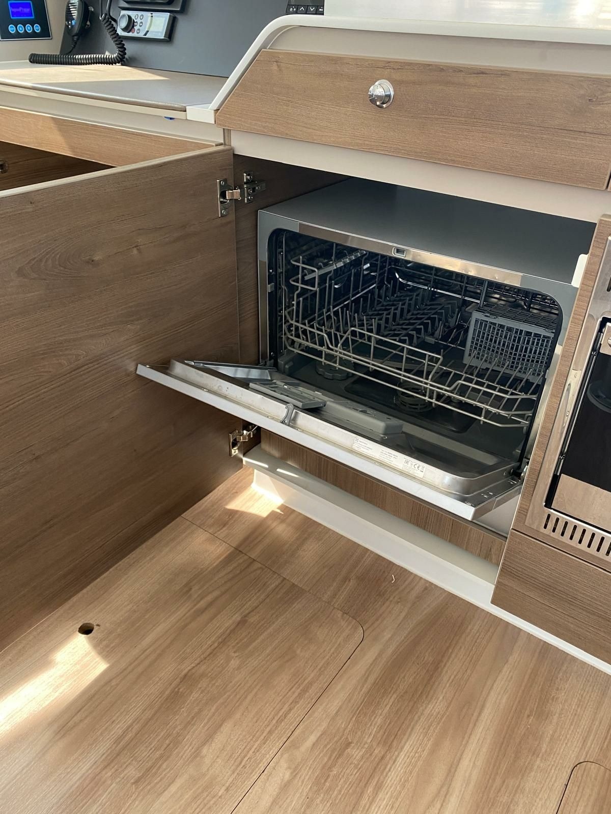 Winch elettricoLazy bagLazy jacksCoffee machineDishwasherGas cookersGas bottles x 2Kitchen utensils (Galley equipment, cutlery)LavelloCoolboxAcqua caldaFrigoriferoCongelatoreForno a microondeFornoPannelli solariWatermaker - DesalinatorHeating (Webasto)Service batteriesInverterCaricabatterieAir conditioning (Saloon & cabins)GeneratoreShore power cable220 V socketRadio, BluetoothIndoor speakersOutdoor speakersAttrezzatura per lo snorkelingSound SystemUSB sockets in cabins and saloonElectric fans in cabins & saloonWC elettricoCuscini in pozzettoSundeck cushionsCusciniGPS chart plotter in cockpitGPS chart plotter in saloonNautical charts and guideRiflettore radarWind/speed/depth instrumentsBinocoloPilota automaticoBussolaBarra Timone di emergenzaEstintoreFire blanketKit di primo soccorsoBoa galleggianteSegnale sonoroRadio VHFDistress signalsSearch light Set of toolsSignal rockets and torchesBlack water tankGiubbotti di salvataggioZattera di salvataggioLife buoy + Flashing lightRepair kitParabordiRound/globular fenderSpare anchor (reserve, auxiliary anchor)Sprayhood (dodger)Spring lineScaletta per il bagnoManichetta acquaImbuto per carburantePasserellaCime di ormeggioRopesManiglia WinchTender liftPlancetta Specchio di PoppaTenderFuoribordoOutside showerBimini topSun awningFlybridgeGrill/Barbecue/PlanchaMezzo marinaioBosun's chair (Safe seat)Canister for waterCockpit lightTavolo in pozzettoSpazzoloneSalpa ancora elettricoAnchor with chainPompa di sentinaBlack ball