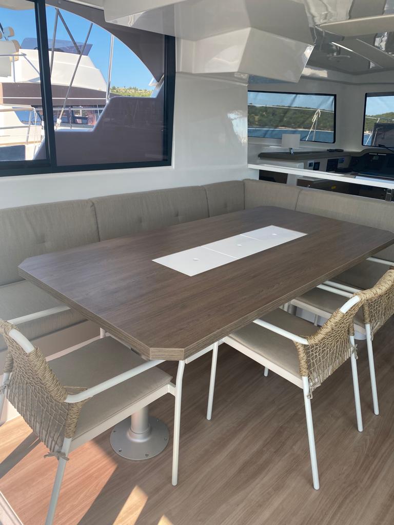 Elica di PruaRanda steccataRefridgeratorGenoa rollabileBiminiSprayhoodTenderGPS plotter esternoDepth meterStazione VentoPilota automaticoRadio VHFSalpa ancora elettricoZattera di salvataggioAltoparlanti esterniWC elettriciPannelli solariRanda steccataOutside BBQOutside Fridge