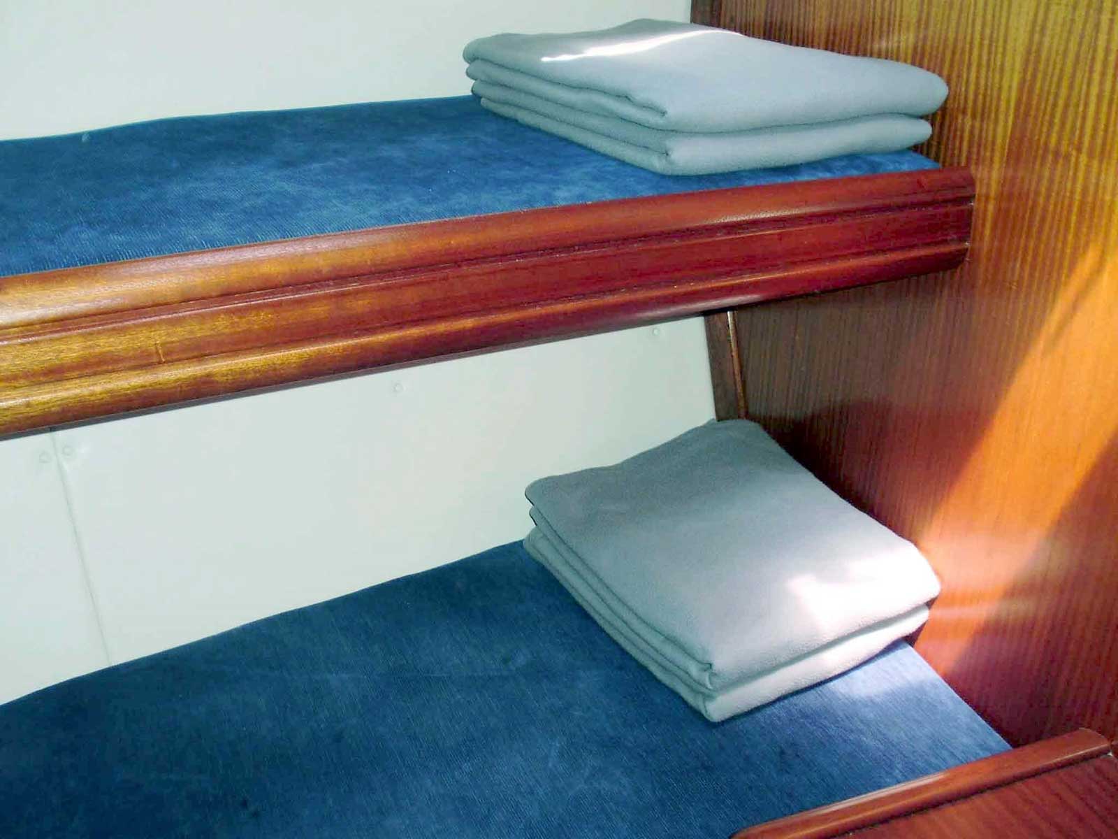 AncoraMezzo marinaioDoccetta in pozzettoTenderPasserellaTavolo in pozzettoBiminiSalpa ancora elettricoBombole gasAcqua caldaFrigoriferoKitchen utensilsCaricabatterieRadio VHFBarometroOrologioRadioGPS Chartplotter in cockpitWind stationBinocoloBearing compassCarte nautichePilota automaticoChartplotterSeat beltsSegnale sonoroTorciaZattera di salvataggioTool setDinghy pump