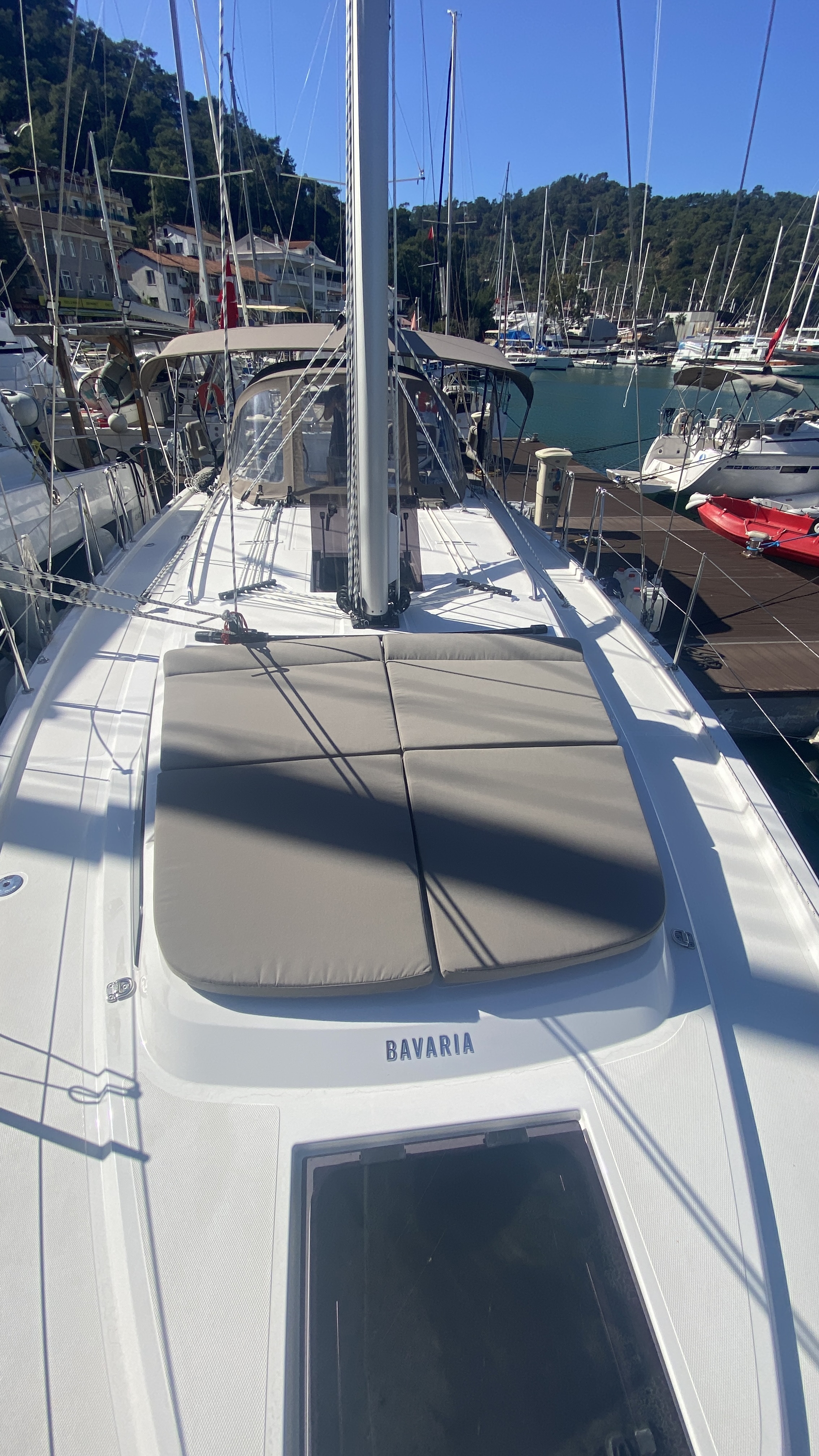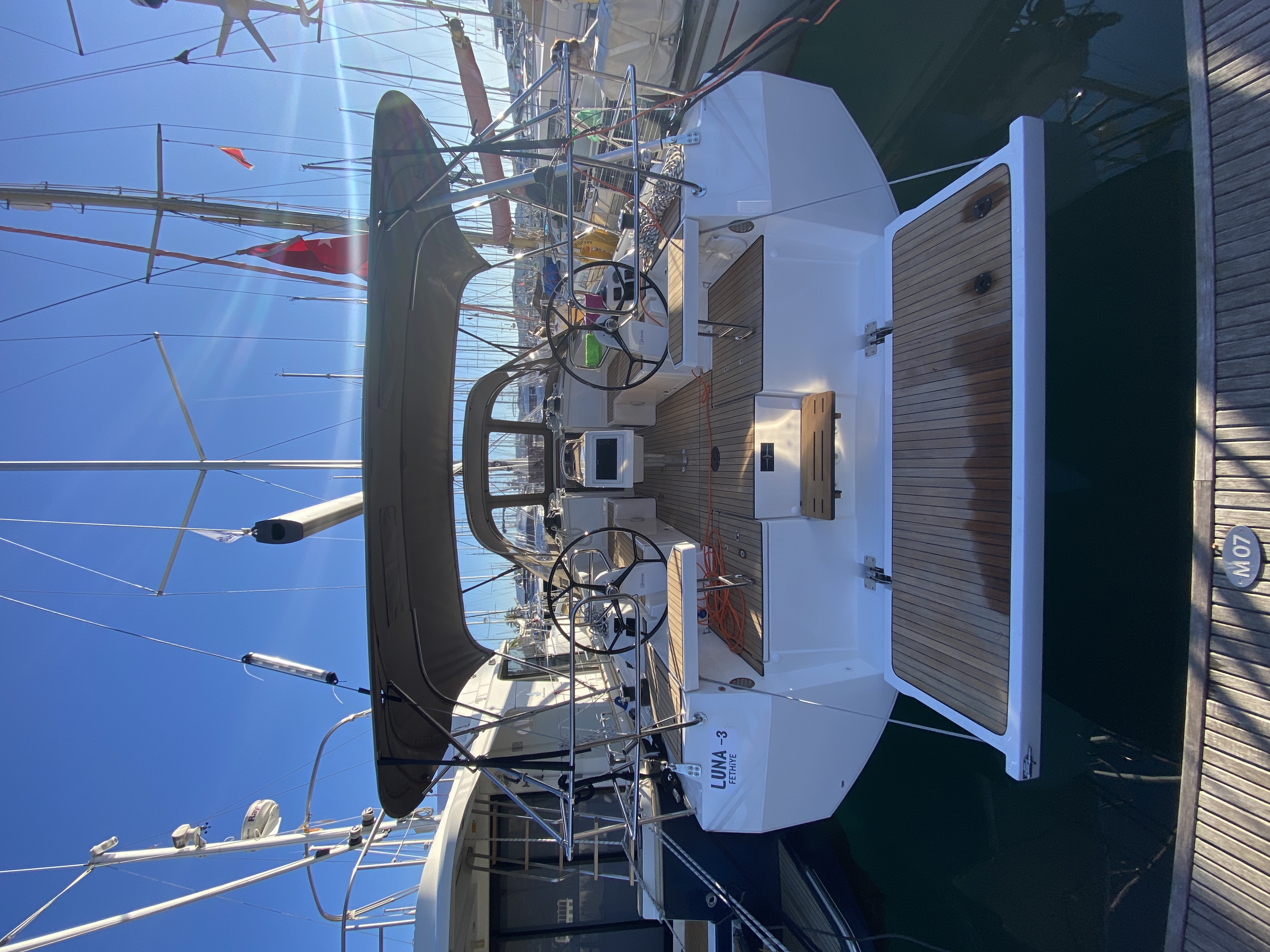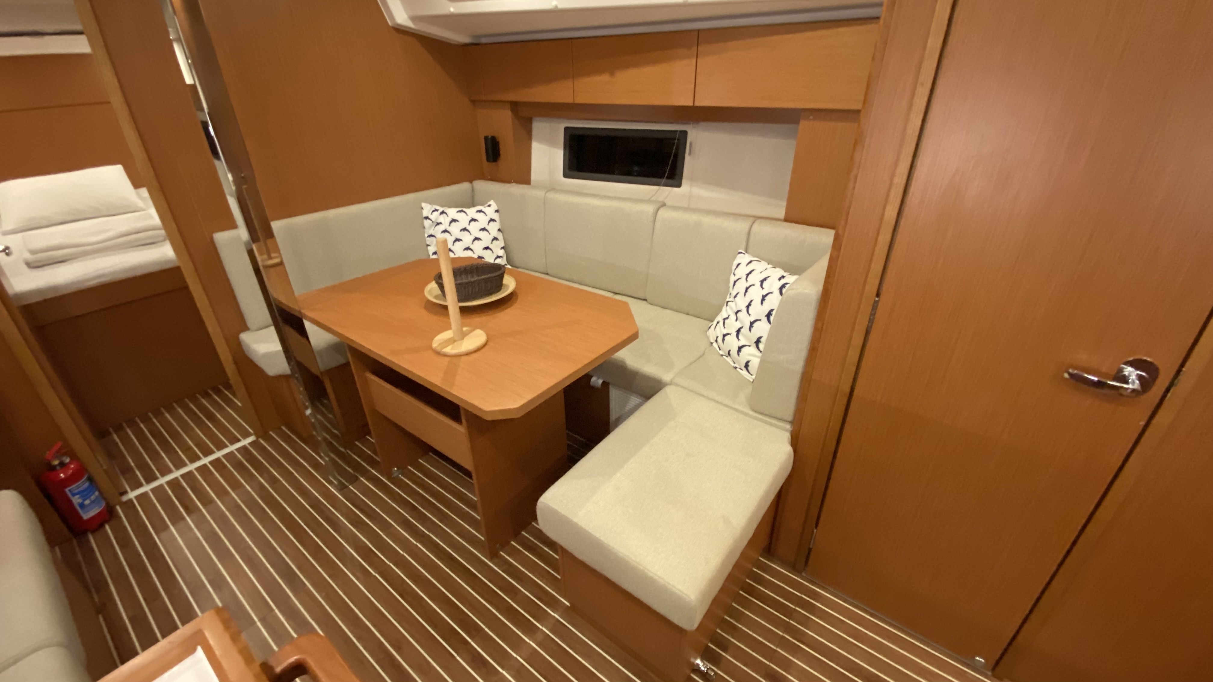 Shower in cockpitAnchor windlass, electricDiesel Jerrycan 20 lt. FullCaricabatterie220V Shore Power CableSalpa ancora4 Mooring Lines 2x15m. & 2x30m. & Shore Line 1x15m.ParabordiLiferaft, DanbuoyGiubbotti di salvataggioCinture di salvataggioManual/ Powered Bilge PumpSegnale sonoroFirst Aid KitFire ExtinguisherFire BlanketEmergency TillerBosun ChairBimini TopCuscini in pozzettoTavolo in pozzettoWaterhose with AdaptorWatercanSwimming LadderCockpit ShowerBoat HookGas BottlesPozzetto in teakPannello solareBow Truster2 Steering WheelsAltoparlanti in pozzettoBiminiSprayhoodSignal flareCinture di sicurezzaSwimming PlatformLuci di navigazioneVHF speaker on cockpitCarte nautichePilota automaticoWind speed instrumentsTridata (Speed, dept log)BussolaRadio VHFFornoInvertorWC elettricoFridge (12 volt)Webasto heater - dieselStoviglieRadio-MP3 player