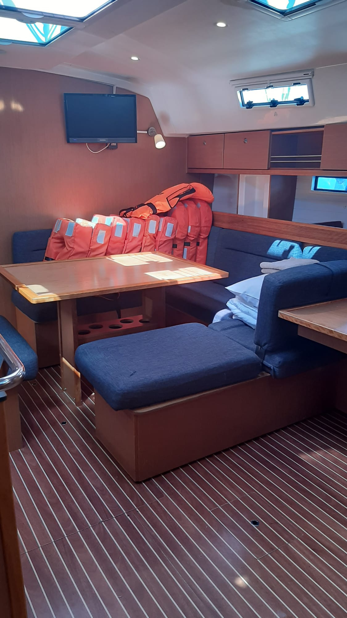 Transit logCooking gasTowels ( one 50x100 per person )Final cleaning & full water tanksLenzuolaOutboard engine & fuelTenderDishtowel ( 3 )TenderOutside showerTavolo in pozzettoBimini topSprayhoodPlancetta Specchio di PoppaTimone a ruotaPozzetto in teakLenzuolaCockpit cushionSound systemIndoor speakerOutdoor speakerTVAcqua caldaKitchen utensilsFornoFrigoriferoStufaMicro waveNon-convertible table in salonPilota automaticoElica di pruaGPS chart plotter cockpitCarte nauticheManualeRadio VHFCaricabatterieInverterPannelli solari