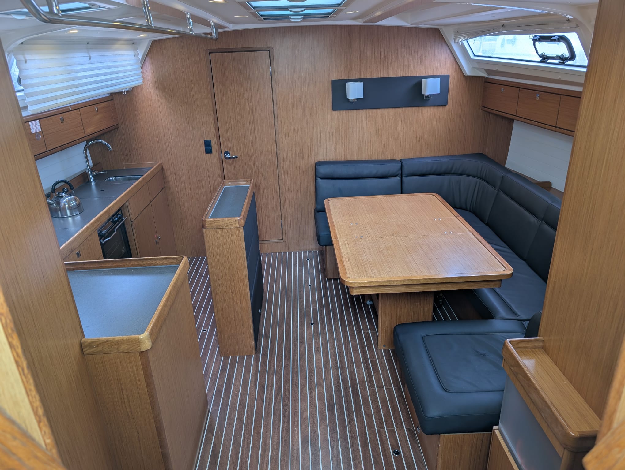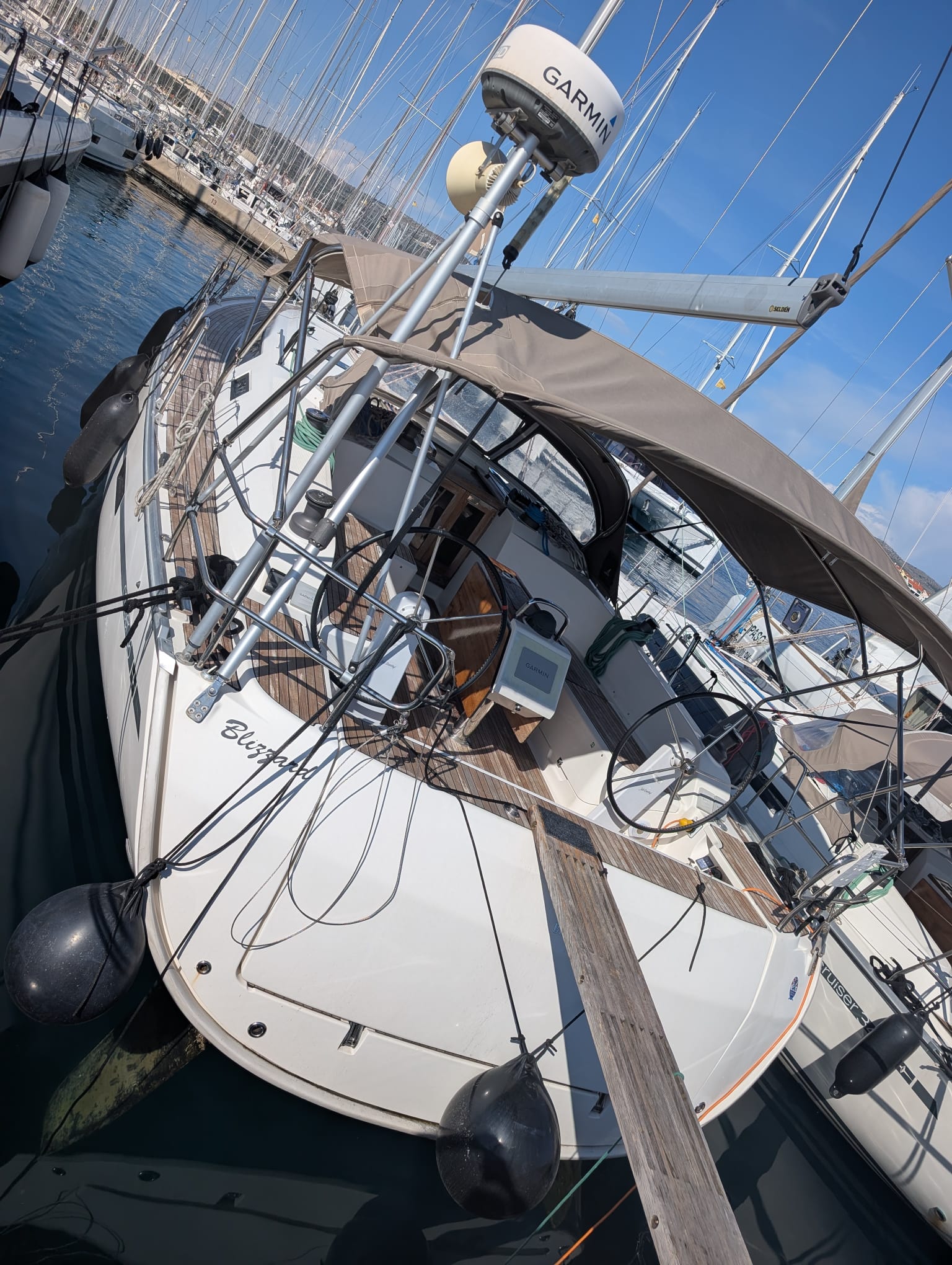 BiminiSprayhoodTeak on cockpit bottomCuscini in pozzettoBimini topCockpit/stern outside shower with hot and cold water Tavolo in pozzettoPonte in teakInverter 220VPannello solareRiscaldamentoInside speakersAltoparlanti esterniWC elettriciFully equiped kitchenRadarPilota automaticoAISWInd speedometerRiflettore radarRadio VHFElica di PruaGPS Chartplotter