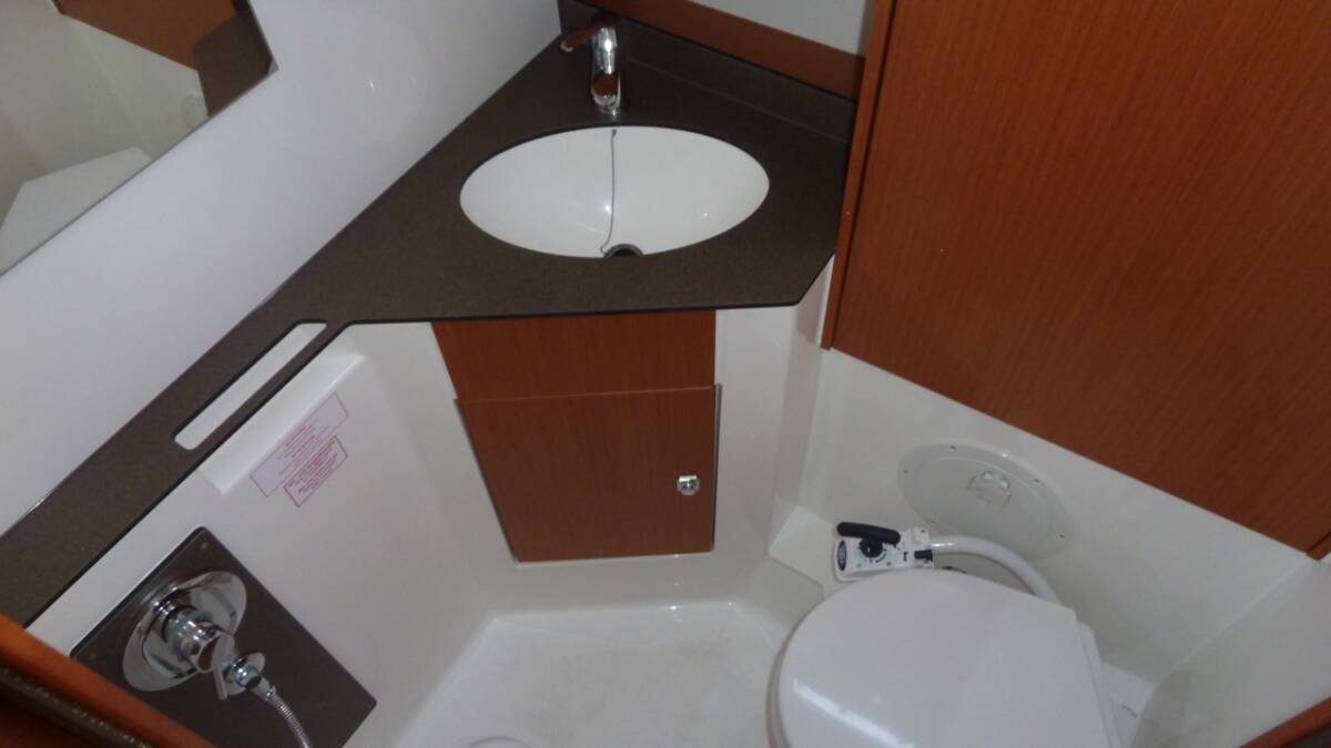 Bed linens/Bed cushions/Blankets (per person)Cuscini in pozzettoHeaterAsciugamaniBimini topMezzo marinaioBosun's chair (Safe seat)Cockpit table with lightCockpit/stern, outside showerSalpa ancora elettricoTenderSprayhoodParabordiPasserellaBarometer & ClockManichetta acquaKitchen utensils (Galley equipment, cutlery)Kitchen appliancesAcqua caldaFrigoriferoBombole gasOutdoor speakersRadio (Fusion)InverterSolar Panels and chargerShore connection 220 VUSB socketsElica di pruaPilota automaticoBussola da rilevamentoGPS chart plotter - cockpitPortlandplotterComposite steering wheelsHarbour guidesLog/Lot/Speed/WindNavigation (Nautical) charts and nautical guideRiflettore radarStazione VentoSet di navigazioneDistress signalsKit di primo soccorsoEstintoreTorciaSegnale sonoroLife belts (Safety harness)Life buoy + Flashing lightRadio VHFLife jackets (Automatic)Wire (shroud) cutter