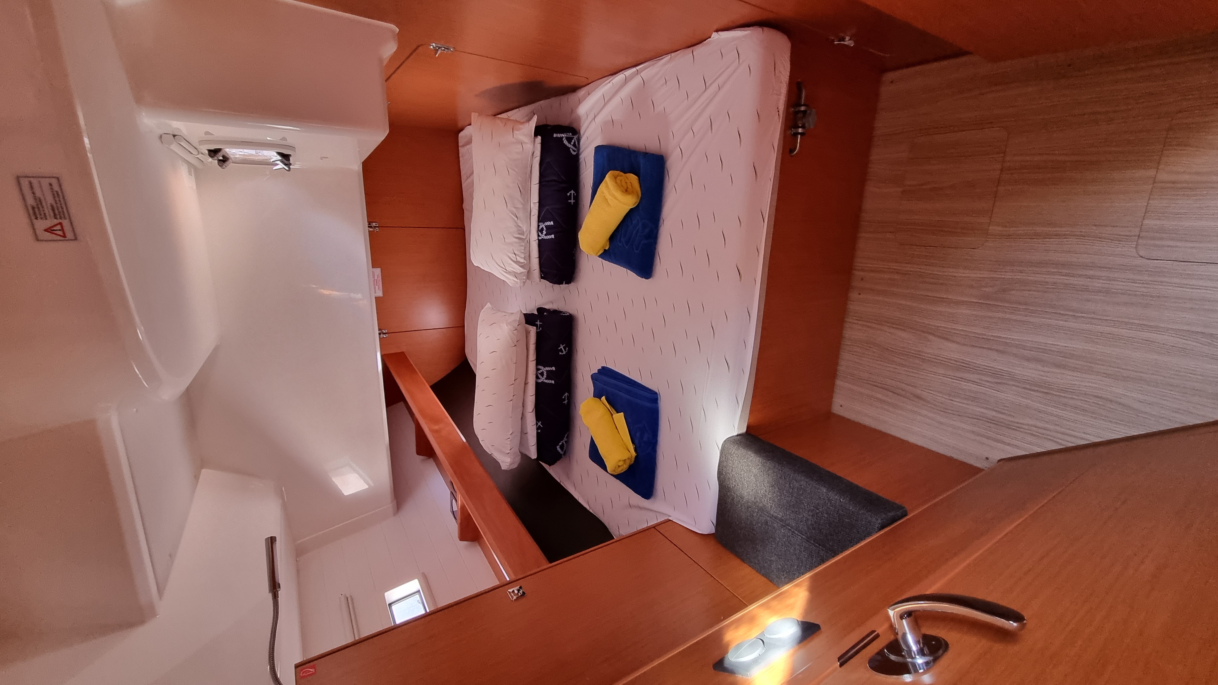 3 burner gas cook top with ovenFurling/Roll mainTavolo in pozzettoFurling/Roll GenoaBimini TopVHFEcoscandaglioLog SpeedDoccetta esternaWindlass (electric)Plancetta Specchio di PoppaElica di PruaPannelli solariAutopilot B&G incl.heading compass and wireless remote controlFusion radio MS-RA770 with 2 speakers in salon+2 in cockpitGPS plotter B&G Zeus 9"Hot air heating, 5,5 kW, 1 Unit for salon, foreship cabin and aft cabinSprayhood with handholdStandard genoa winches placed aftBlinds on side & panoramic windowsTeak on cockpit floorElectric toilette 3xAutomatic life jacketsGPS plotter esternoInverterOutboarderCuscini in pozzetto