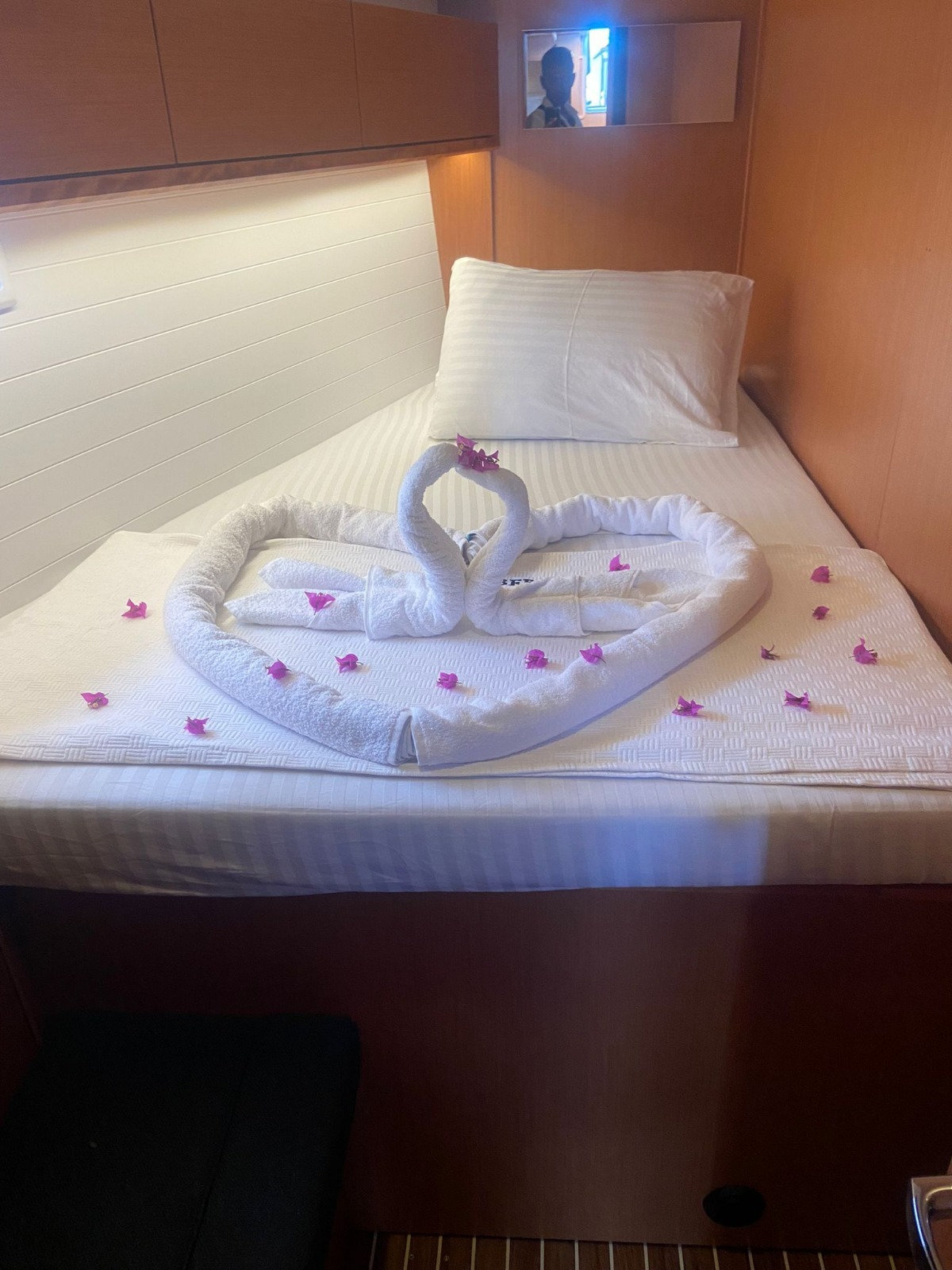 SprayhoodFenderBiminiCockpit lightTenderPasserellaPlatformCockpit/sternTavolo in pozzettoDoccetta esterna100 m x 10 mm Anchor ChainCockpit cushionSun Bathing CushionBilge pump - ElectricDSC stationPannelli solari5x110 Amp Battery2500W Inverter4+1xFanWebasto(heating)Electric 1000W windlass(Anchor Winch)B&G V60 VHF radioKit di primo soccorsoLife jackets, Life Belts(Safety Harness)Bosun's chair (Safe seat) (boatswain's chair)EstintoreBarra Timone di emergenzaDistress signalsZattera di salvataggioSegnale sonoroLife buoy + Flashing lightB&G Zeus 3 GPSNavigation (Nautical) charts and nautical guideB&G AutopilotChartplotterWind/Speed/Depth Instruments2 Steering WheelsSaildriveBussolaElica di pruaRiflettore radarAcqua caldaKitchen utensils (Galley equipment, cutlery)FornoFrigoriferoSnorkel equipmentFusion RadioUnderwater lightingBluetoothUSBAltoparlanti esterni