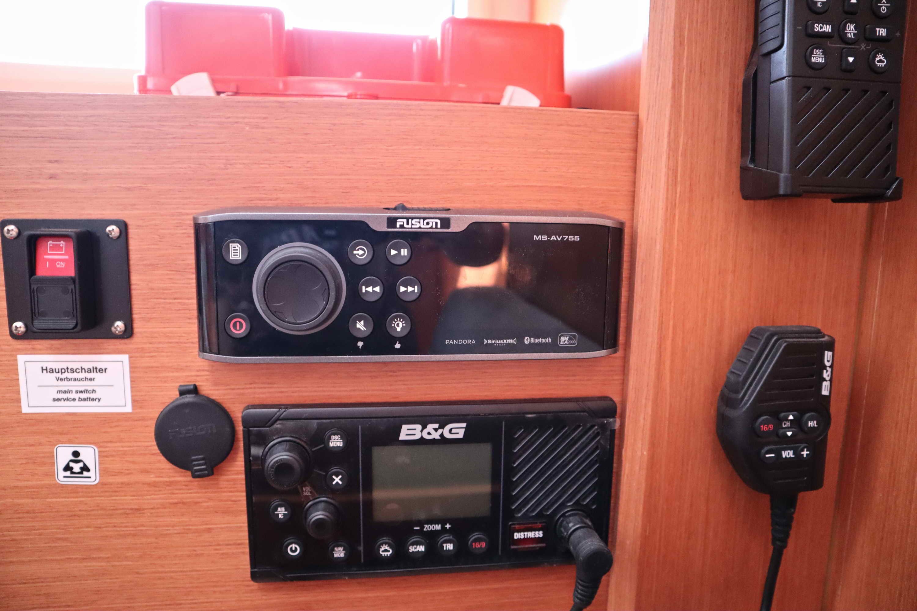 Cuscini in pozzettoPilota automaticoElica di pruaBussolaGPSGPS chart plotterLogge/Lot/SpeedCarte nauticheSet di navigazioneWind instrument/AnemometerBlack Water TankEstintoreKit di primo soccorsoTorciaDotazioni di sicurezzaSet of toolsRadio VHFPannelli solariAncora di rispettoBimini topCockpit/stern, outside showerSpazzoloneTenderSalpa ancora elettricoParabordiFolding cockpit tablePlastic bucketSprayhoodAcqua caldaKitchen utensils (Galley equipment, cutlery)FornoFrigoriferoStufaElectric fansInside showerFusion radioOutdoor speakersRadio mp3 player - + BluetoothTVUSB