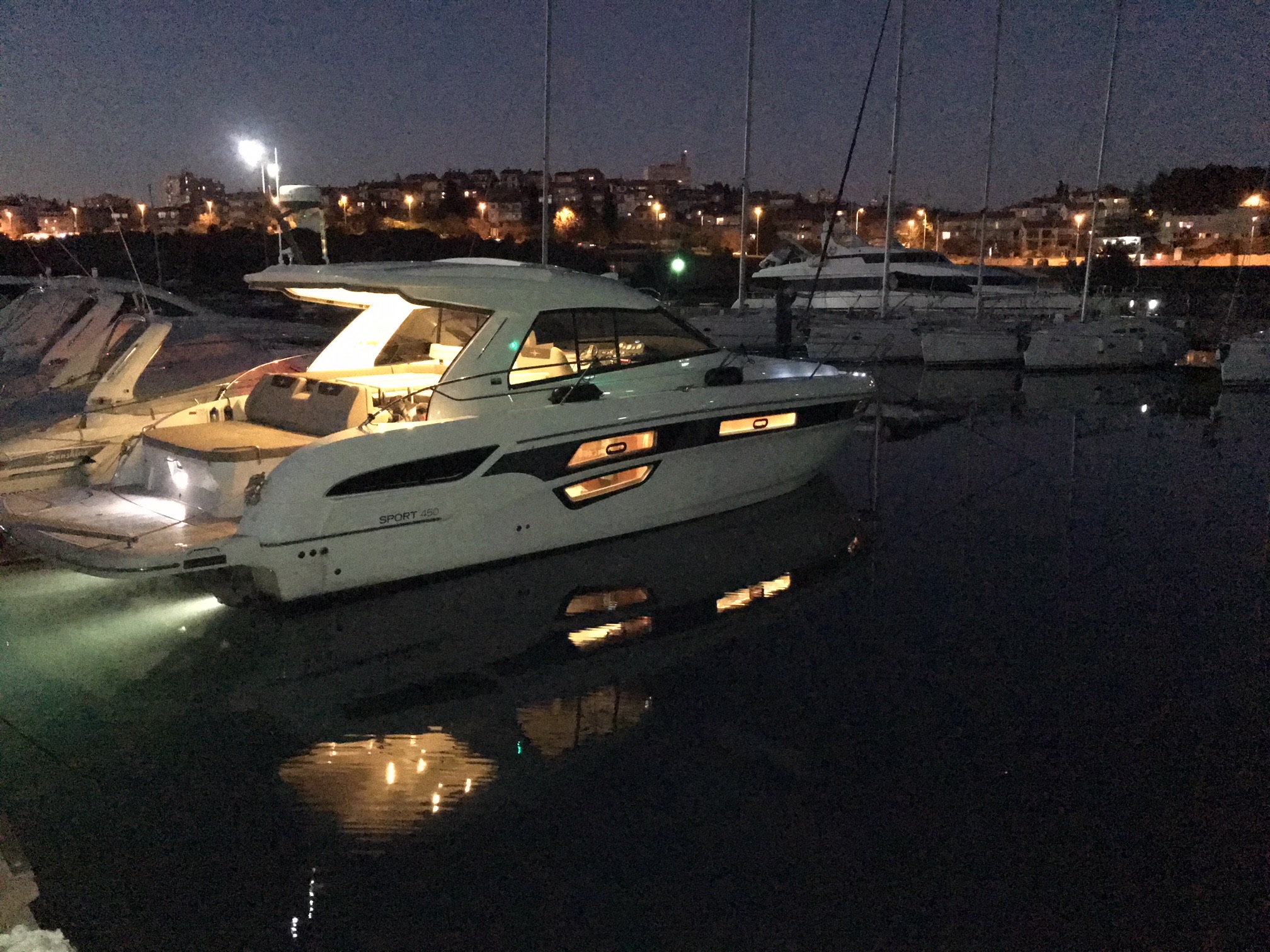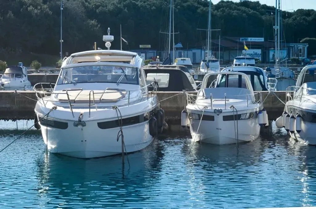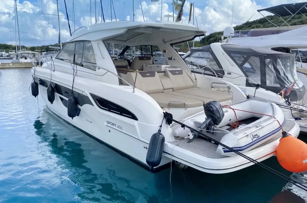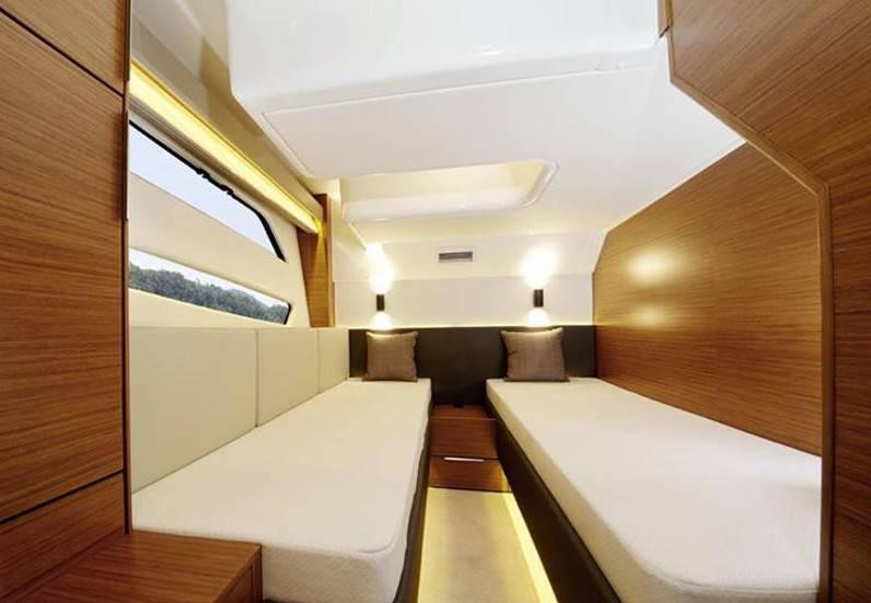 BiminiFrigoriferoVHF-radioElica di pruaBarometroAC 230V Shore powerHydraulic bathplatformIcemakerGPSAria condizionataDistress equipmentElectric anchorElectric cookerWC elettricoCaricabatterieAcqua caldaEstintoreScaletta per il bagnoPompa di sentina elettricaCoffee machineKit di primo soccorsoEcoscandaglioGiubbotti di salvataggioGPS Chart plotterFusion audio systemPilota automaticoRadarJoystick ControlSet di navigazioneGeneratoreLED lighting on the side walks Hard-Soft Top electric Anchor winch Wetbar and refrigerator furniture in cockpitTeak in the cockpitSearchlightAnchor chain counter Teak on bathing platformLED underwater lights