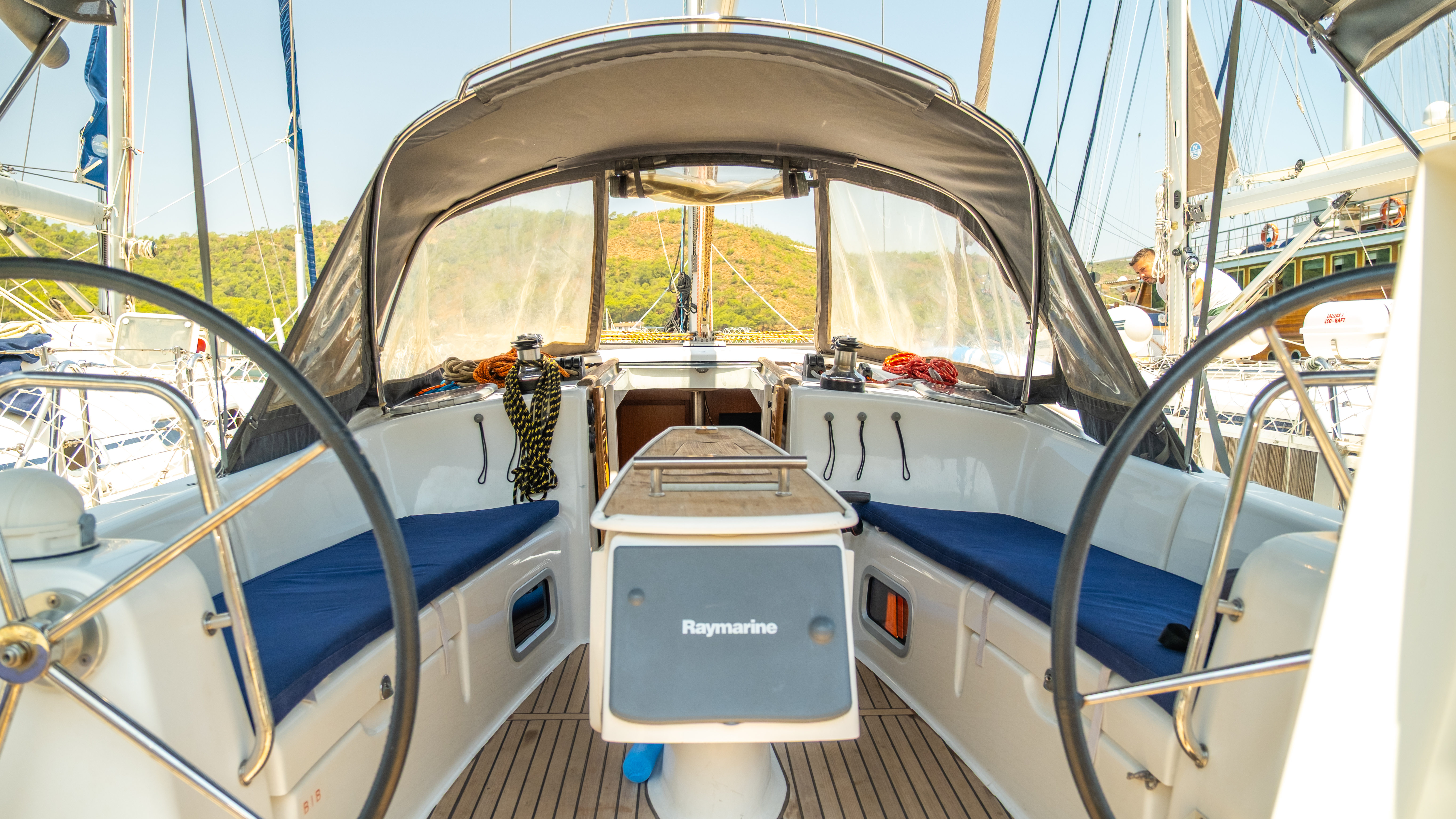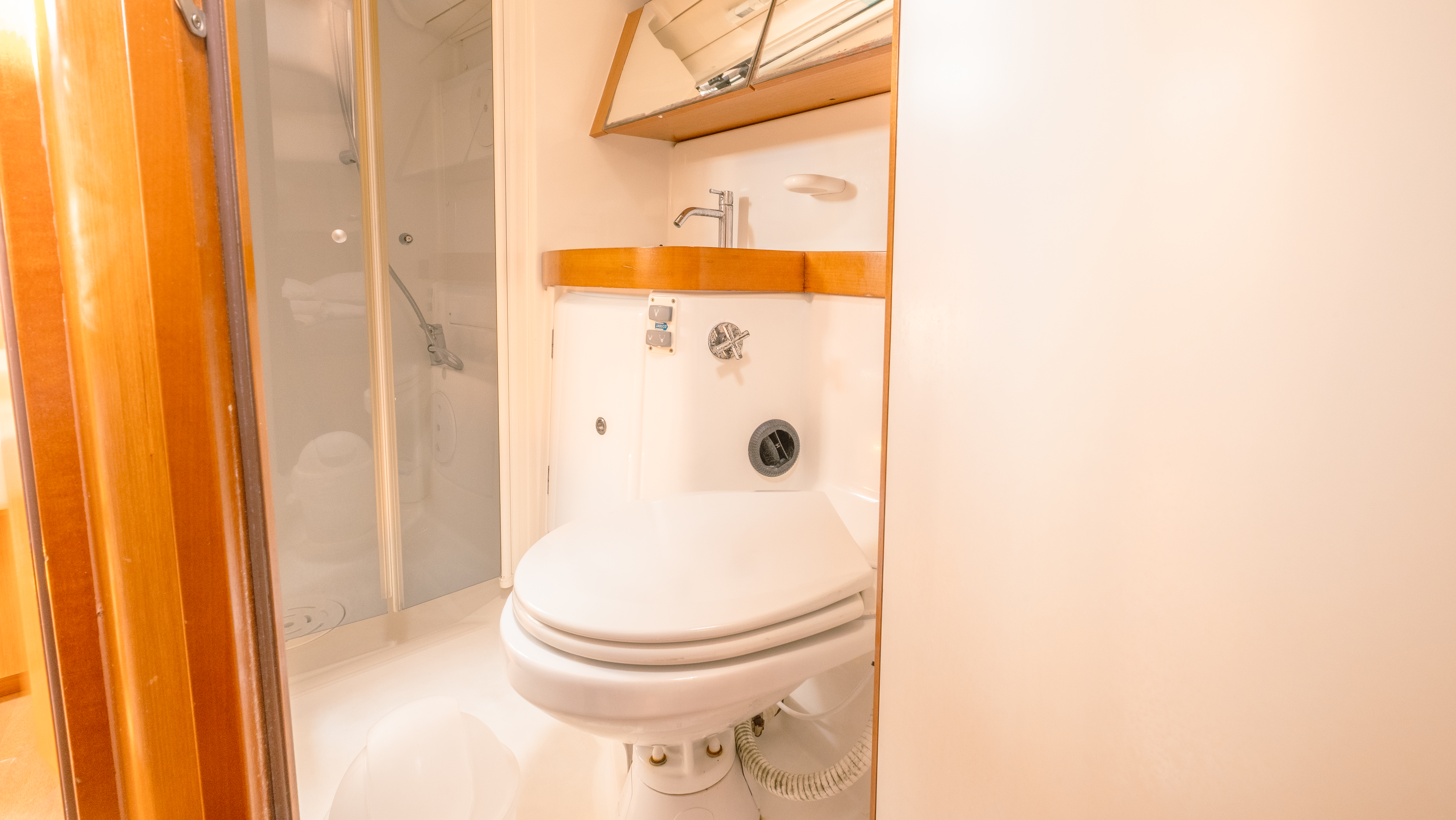 BussolaAcqua caldaCooker (num.)Fornello con fornoLavelliSinks (num.)Batteria servizi12 V/220 VTVMarine GeneratorEcoscandaglioRadarDouble steeringTenderOutoard engineEstintoreGiubbotti di salvataggioKit di primo soccorsoTool kitTavolo in pozzettoSprayhoodBiminiFornoFrigoriferoTeak Cockpit