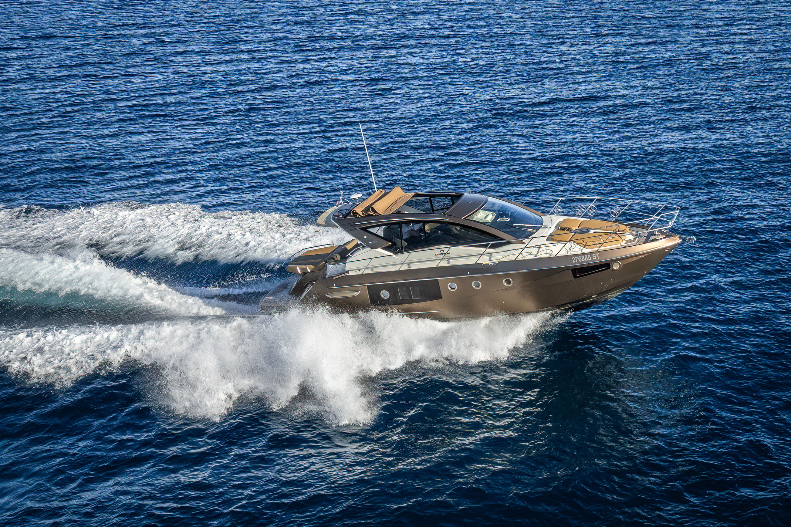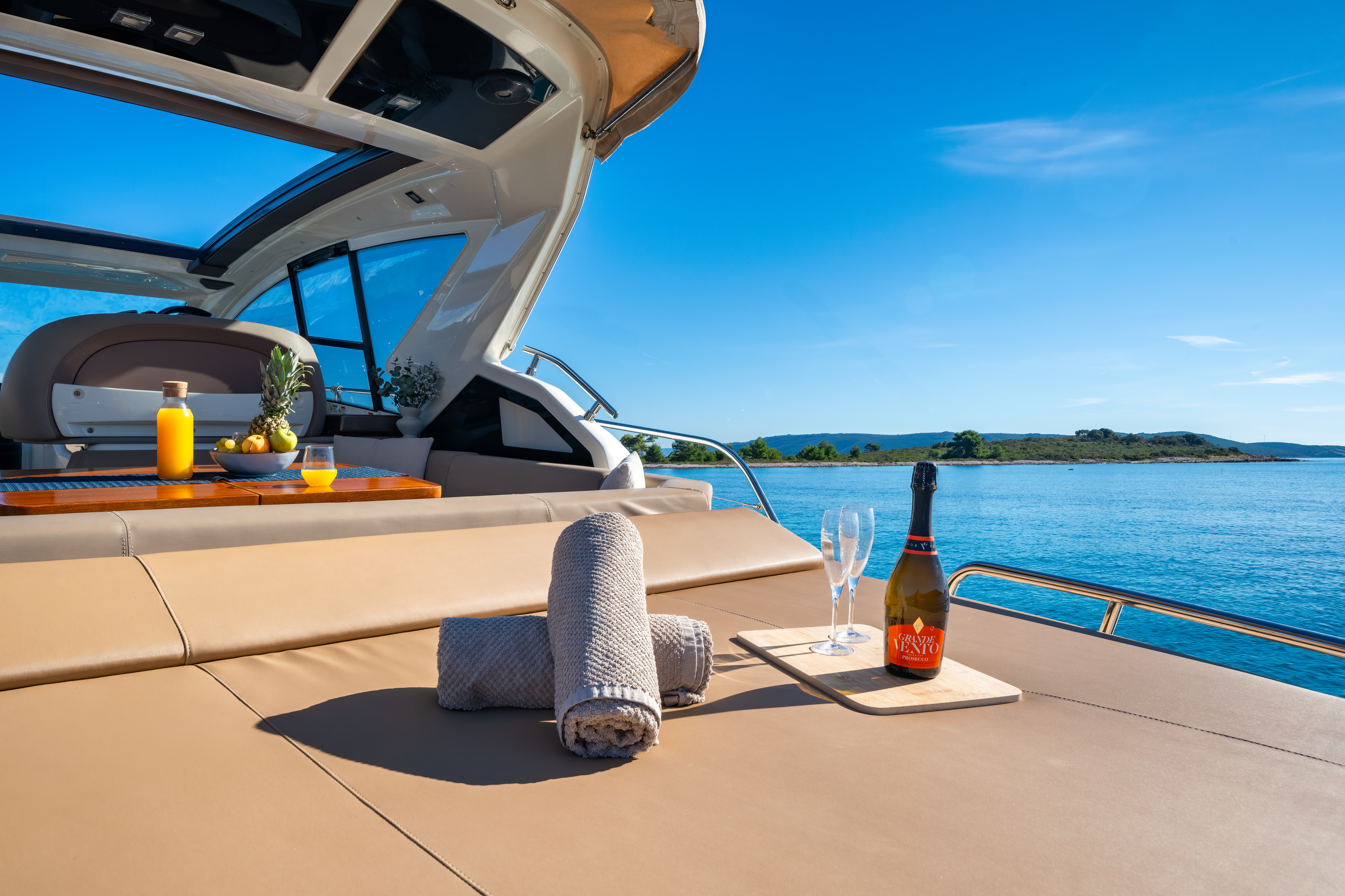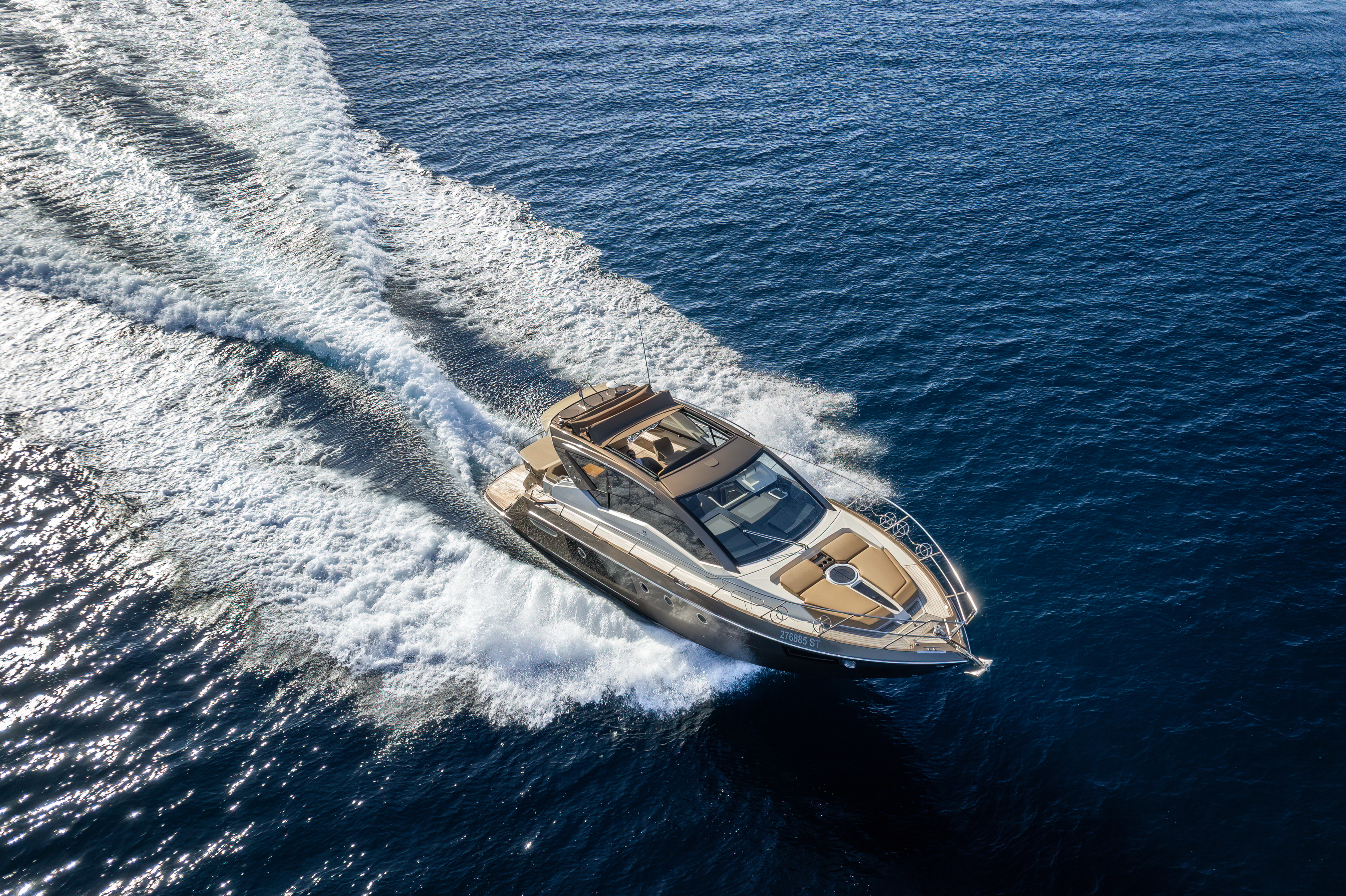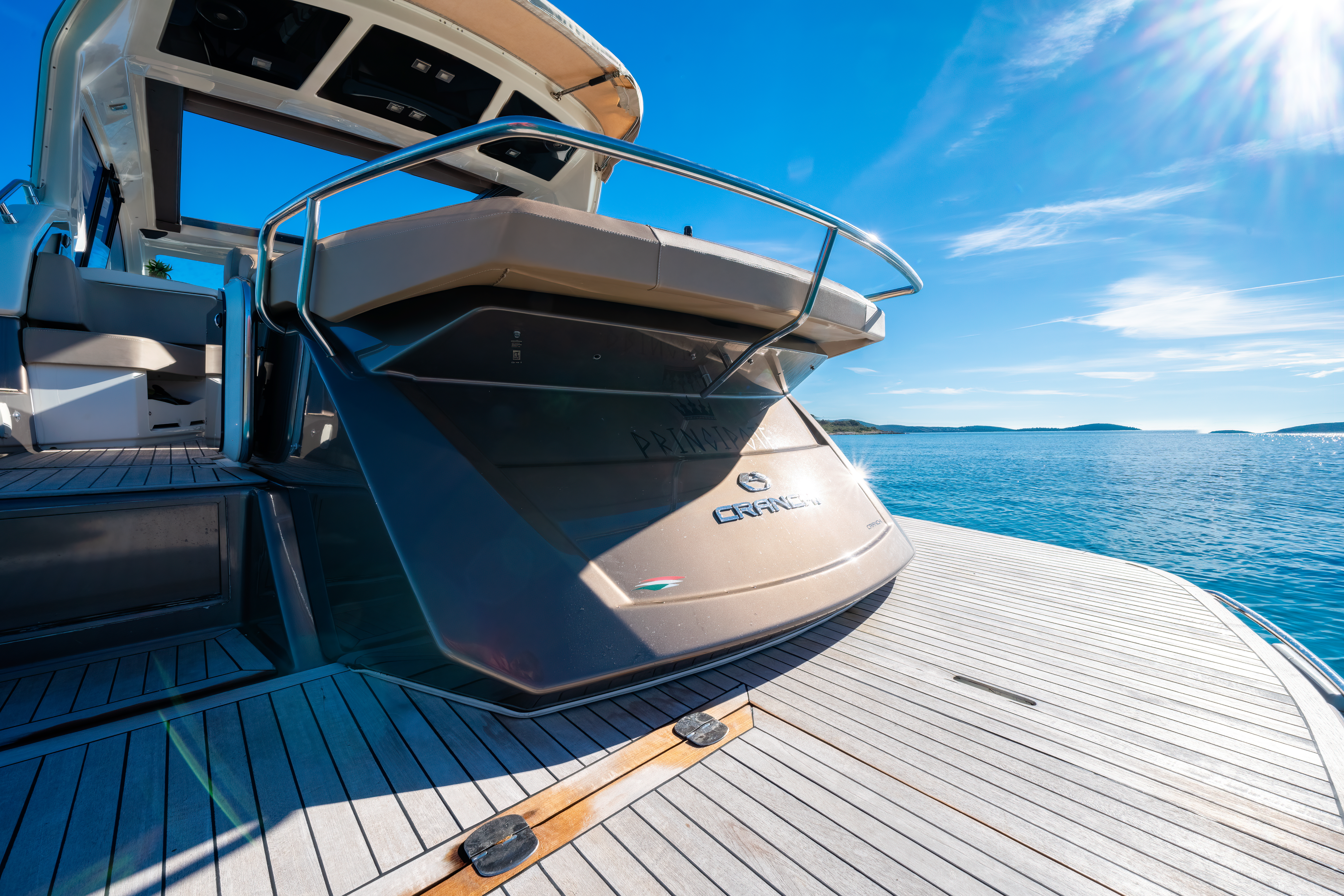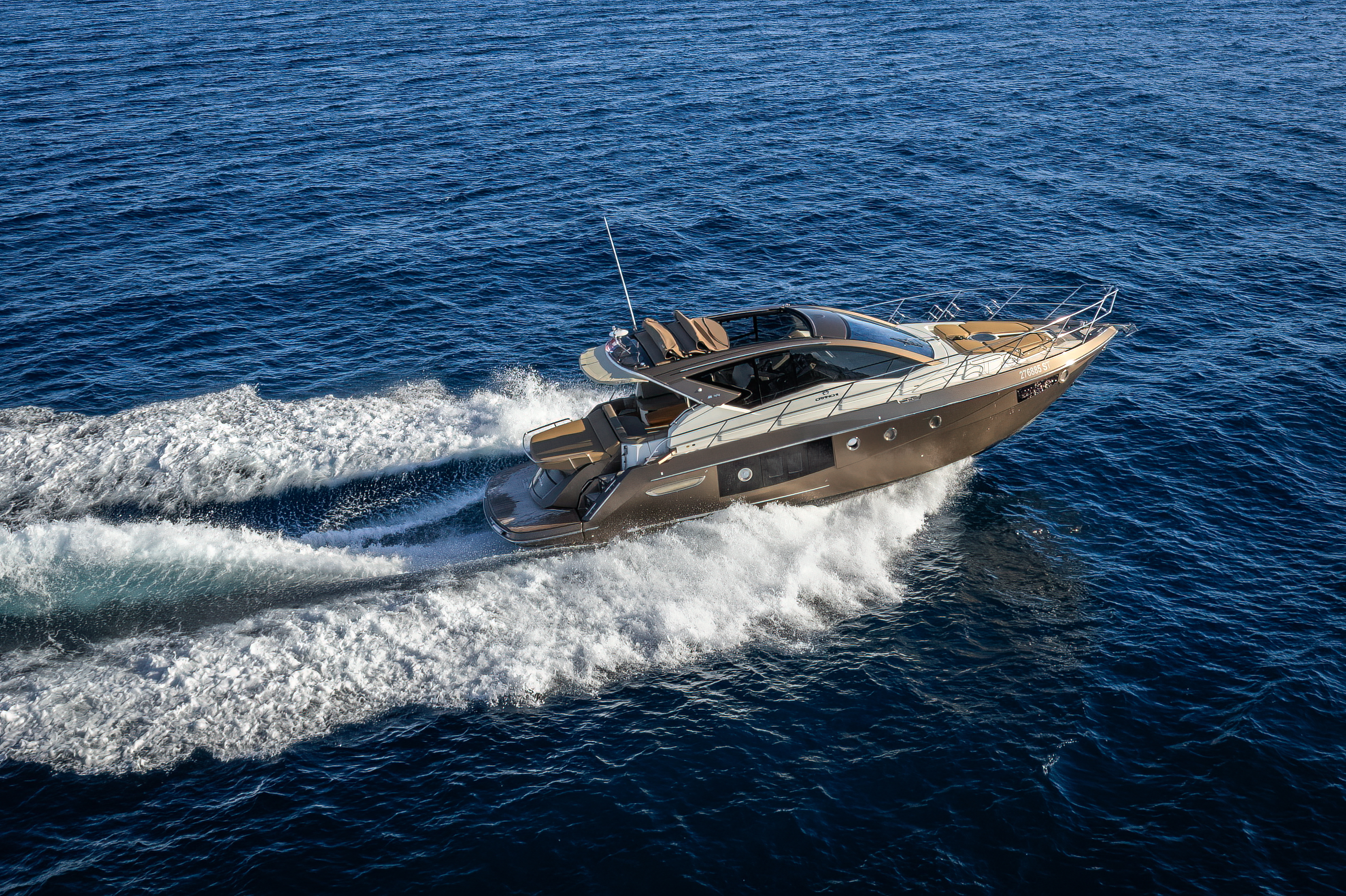 Dinghy with outboard engineSUP boardSnorkeling gearHardtop with a large opening soft topHelm stationU-shaped seatingConvertible dinette/sunbedPortside galley with fridgeWet barGalley (oven, fridge)Aria condizionataRiscaldamentoTVGPSChartplotterVHFElica di pruaJoystick control (engine)Hydraulic gangwayPozzetto in teakSalpa ancora elettricoPlancetta Specchio di PoppaSwim ladderGeneratoreShore powerBoiler acqua caldaWC elettrici