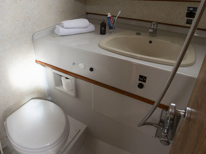 Oven / GrillHobFrigoriferoCD/Radio playerExternal Steering PositionInternal Steering PositionHeaterFans12/220V ConverterCigarette lighter plug (12V)Shore Power (220V on dock) Alfresco diningSundeckElectric ToiletsSafety Box
