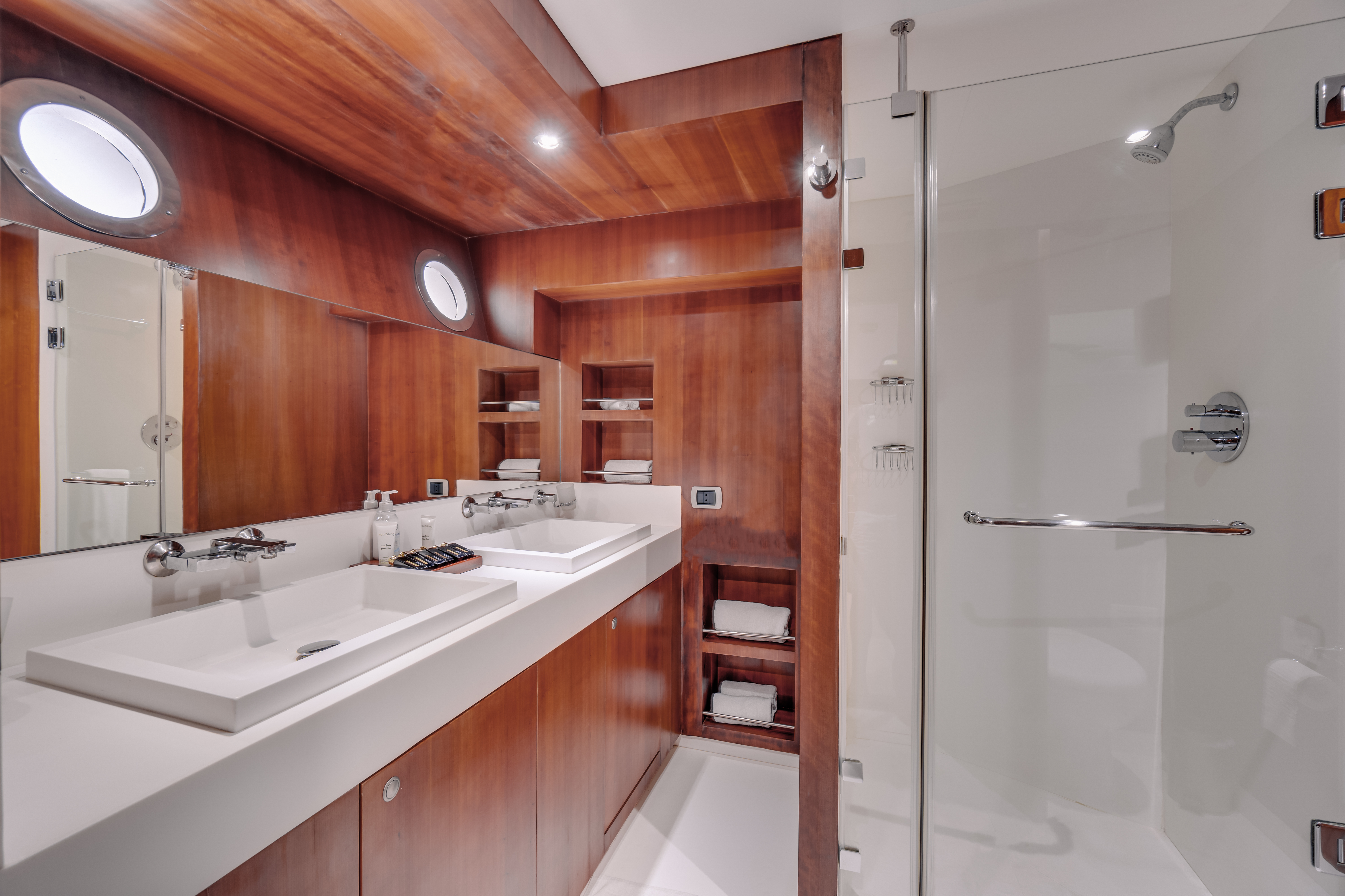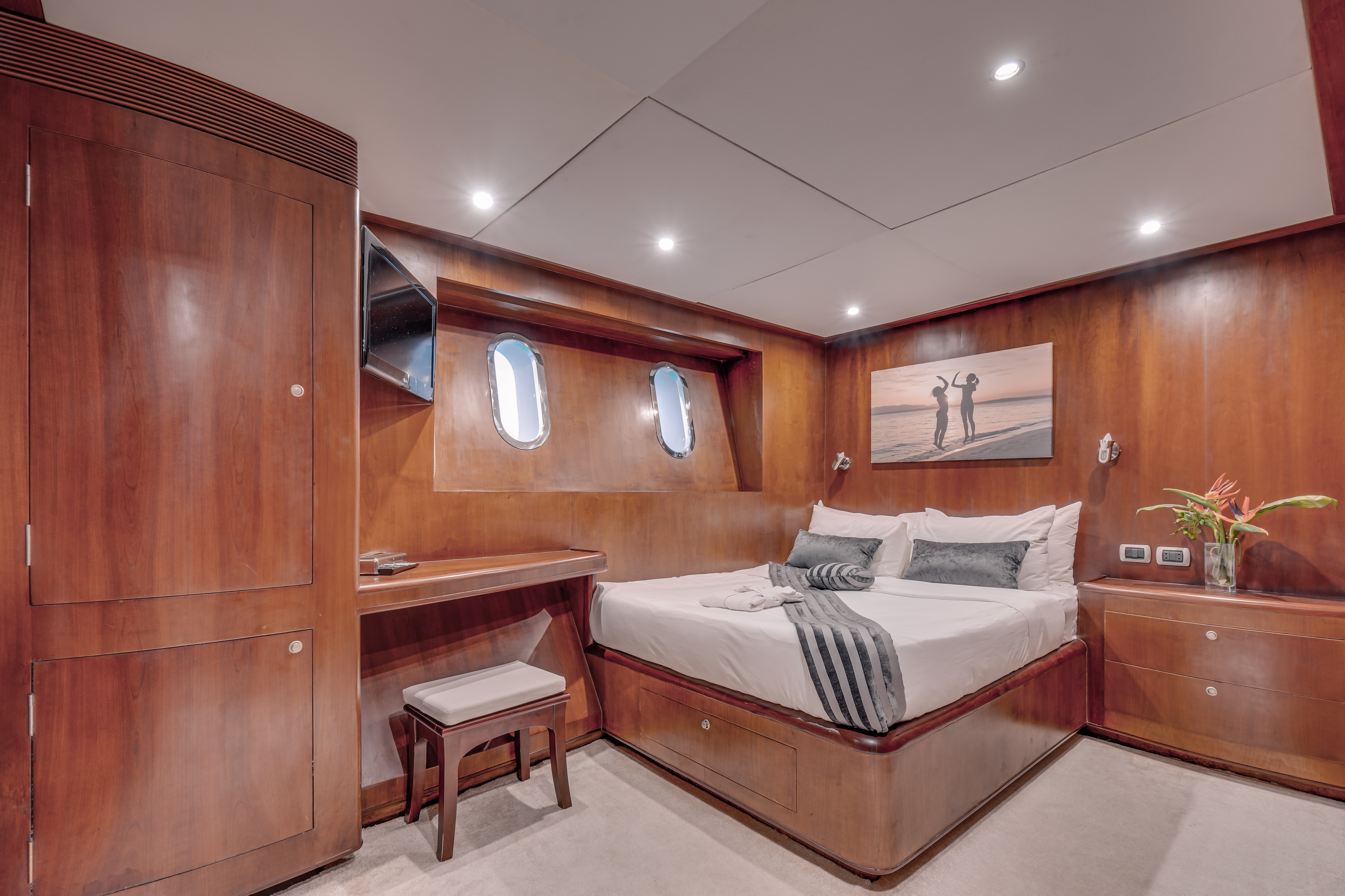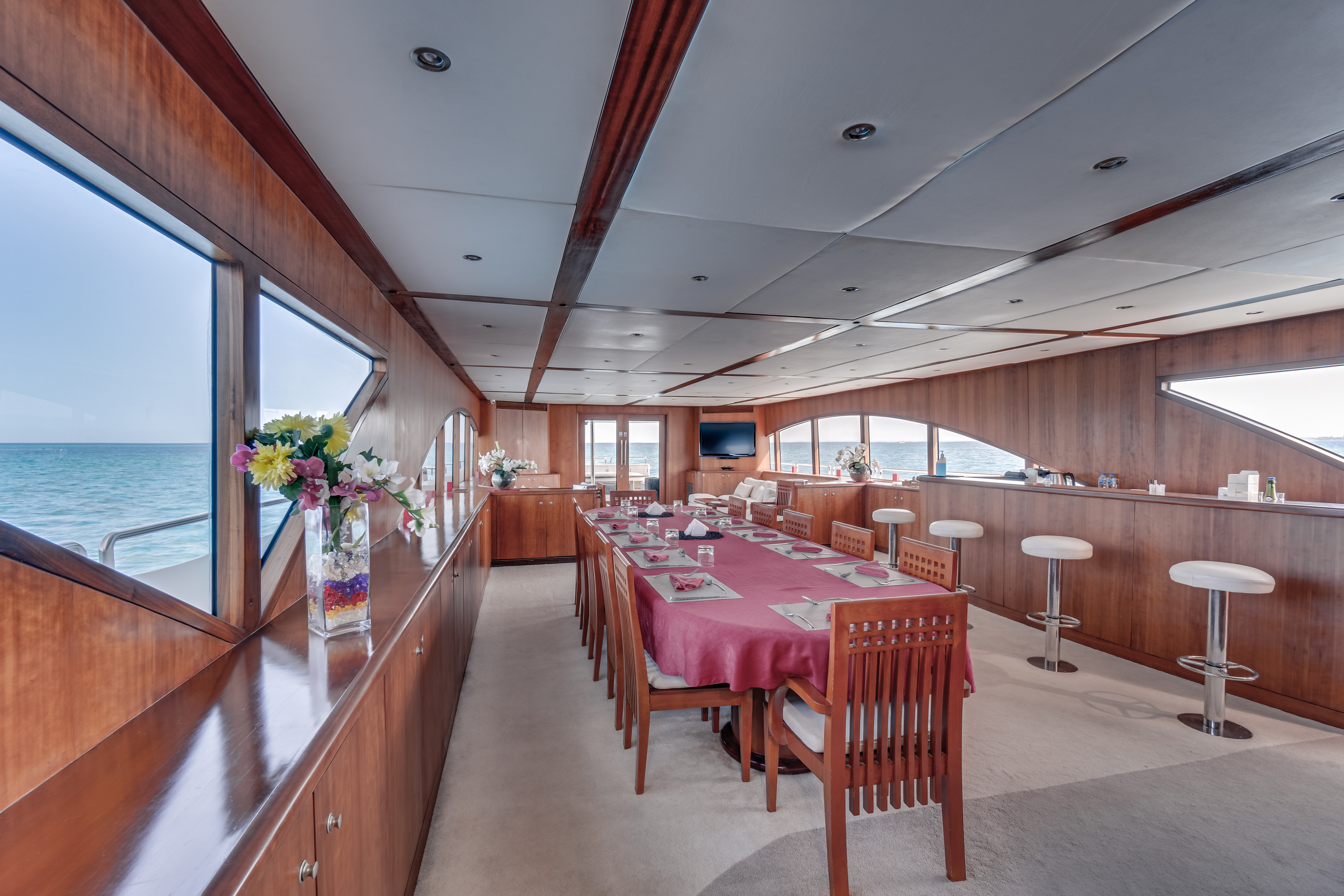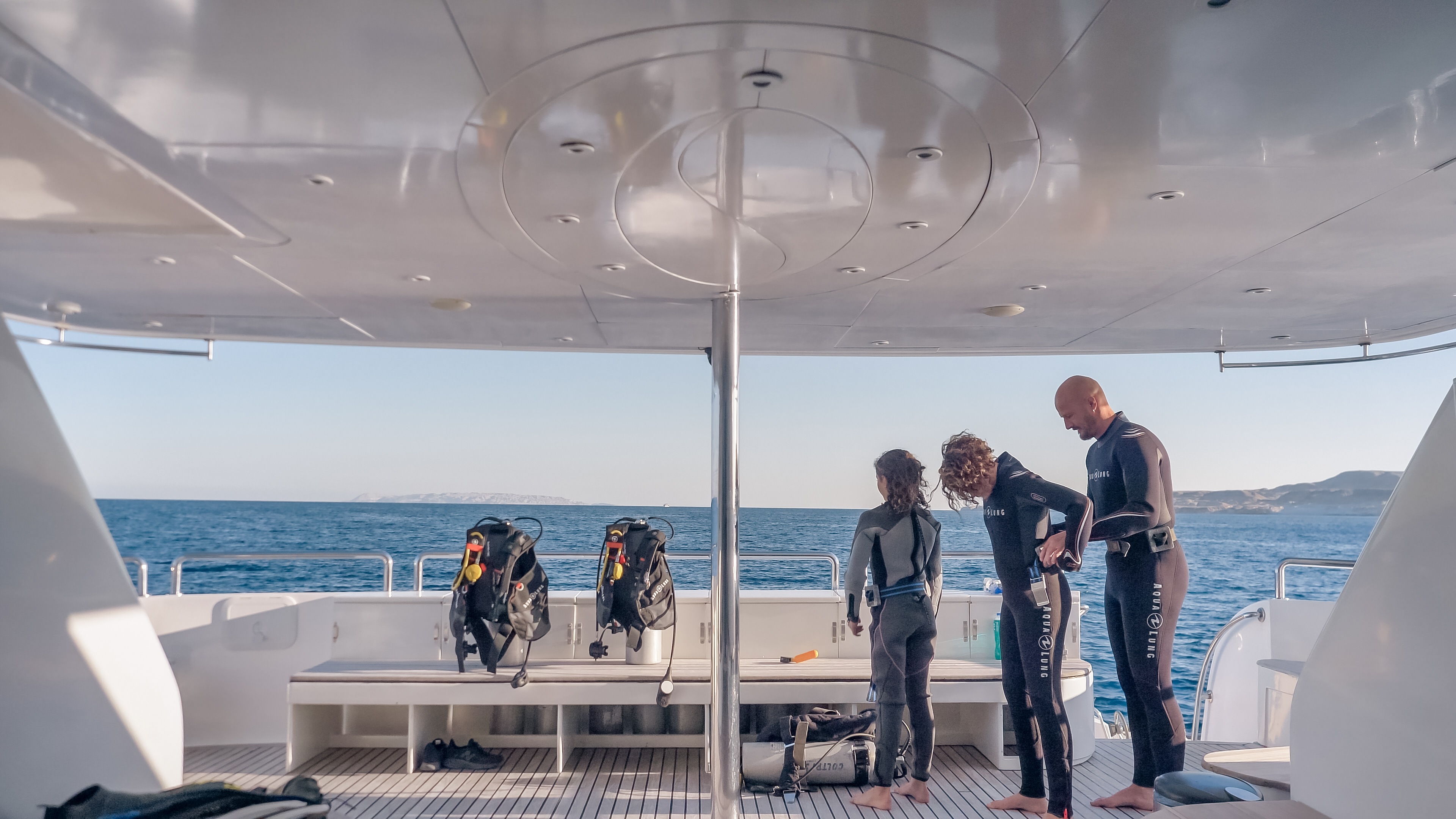 FuoribordoBimini topTenderOutside GPS plotter Ponte in teakAir condition-separate adjustable AC unit in each cabinHeating systemWatermakerFire Protection SystemsSewage TreatmentWC elettriciGeneratoreFrigoriferoSARTEPIRB - Boa di emergenzaLine-Throwing DeviceFuruno RadarHondexZattera di salvataggioRIB Speedboat: Large 8.5-meter RIB with 2x150 HP enginesWater Skiing: Water skis to suit various feet sizesWakeboarding: 2 wakeboards to suit various feet sizesBanana Boat: 5-seat inflatable banana boat for riding the wavesKnee boarding: 1 kneeboard suitable for all agesInflatable Tube: Inflatable 1-person Cruzer Tube for riding the wavesMarine HF and VHF RadiosGMDSSLife vestsDiver/ MOB locator systemSoft weights for maximum comfort (250 kg in total of various weight sizes)Children's easy slip-on backed fins20 pairs of high-quality snorkeling finsUnderwater rechargeable torches for night dives x 82 × 10-liter oxygen tanks, plus a portable 7-liter oxygen unit2X Dive ComputersAqualung BCDs of various sizes (20 in total)13 sets of octopus, first & second stage, air/depth consolesThree sized sails to suit various wind conditions and skills. Sizes: 2.5m training rig, 5.0m and 6.1mTwo top-branded windsurfing boards suitable for beginners
