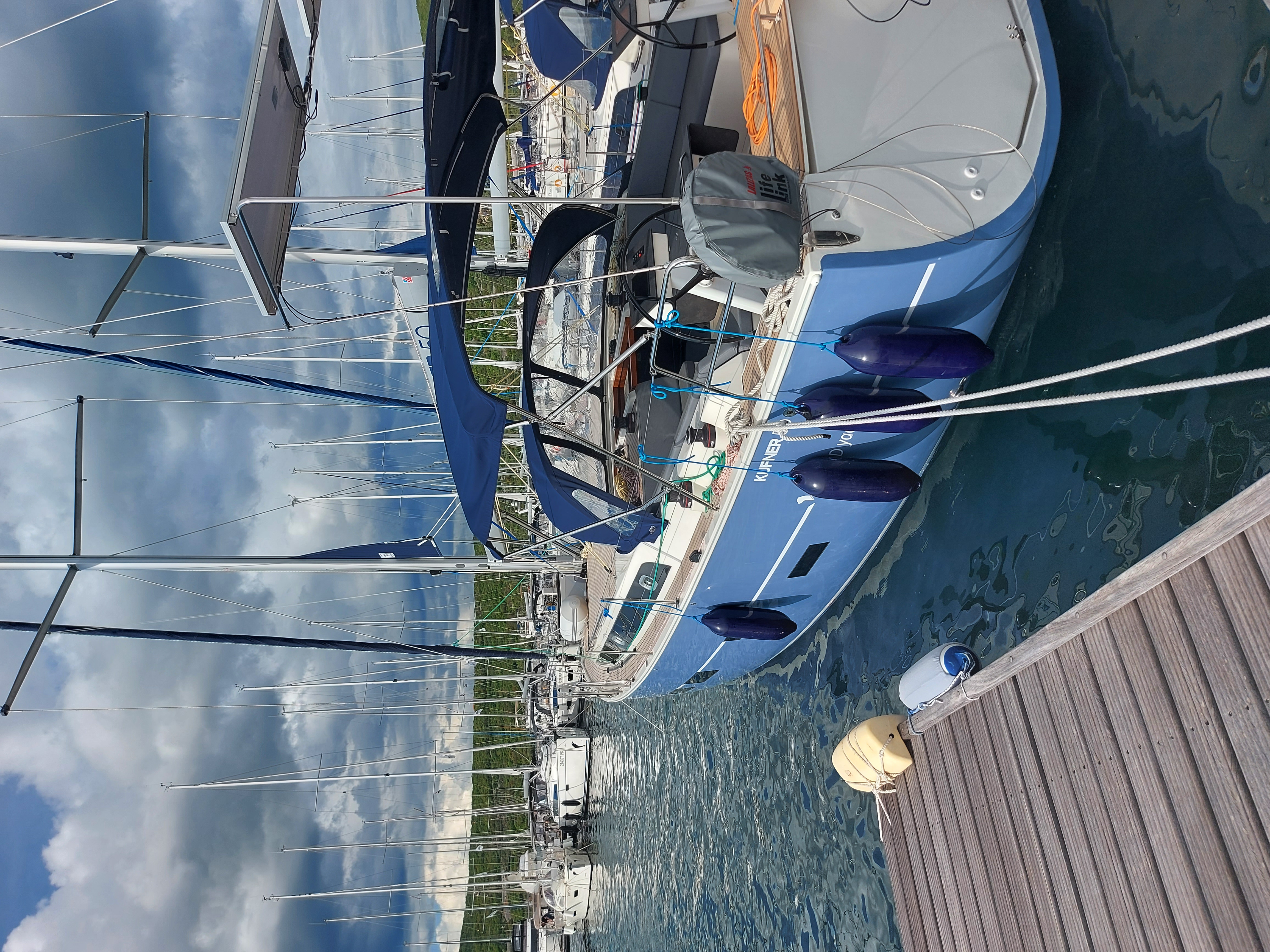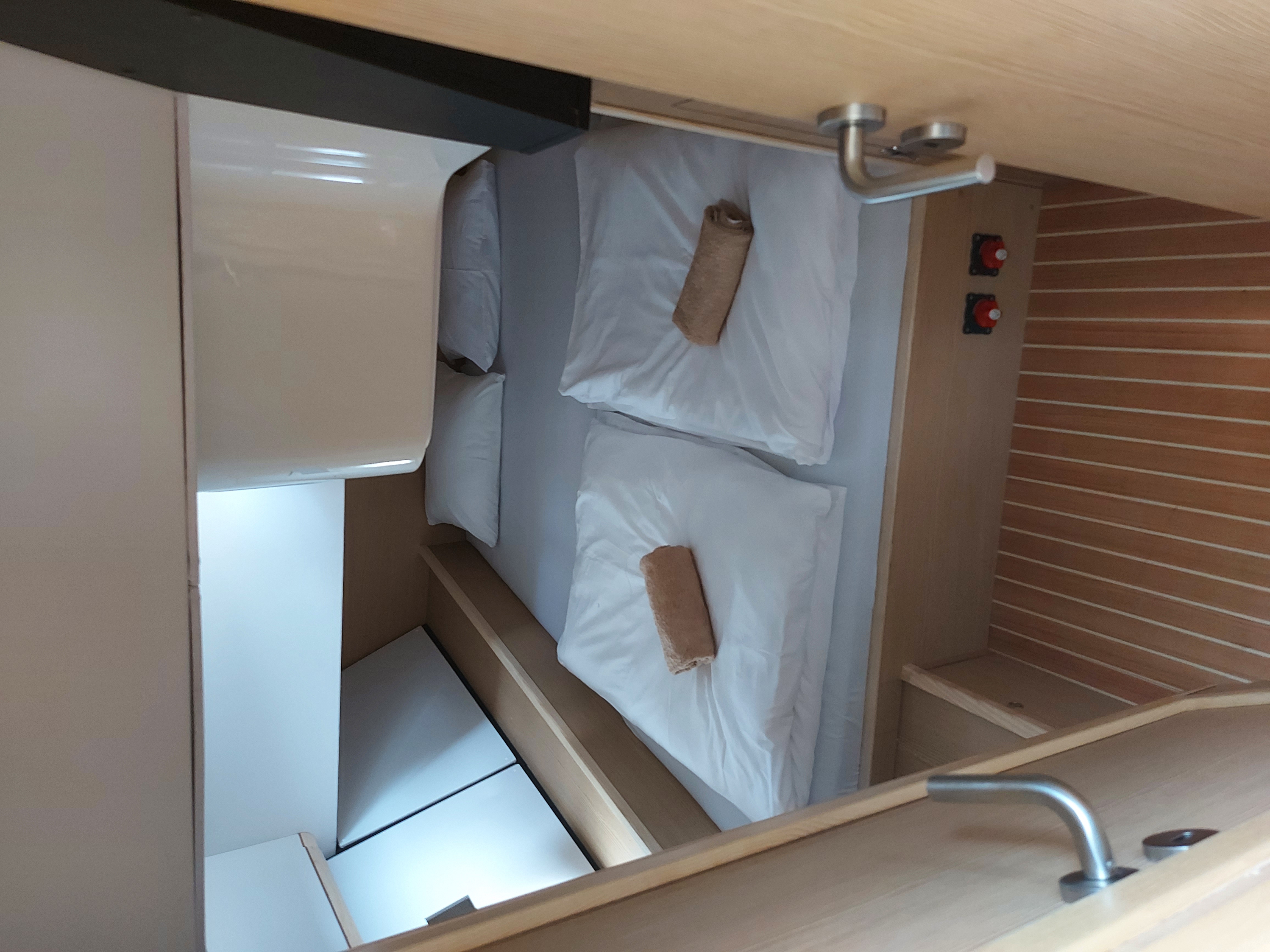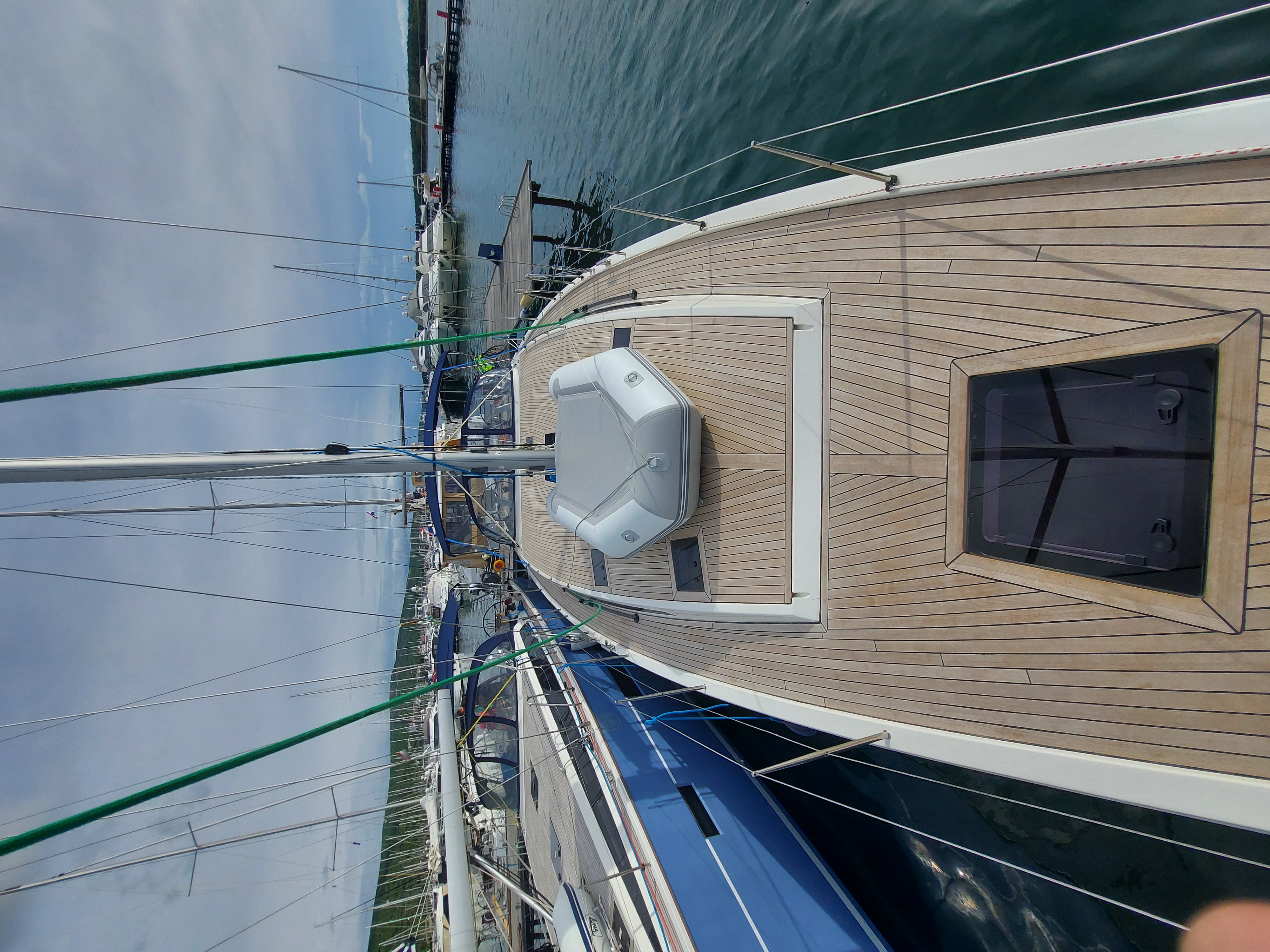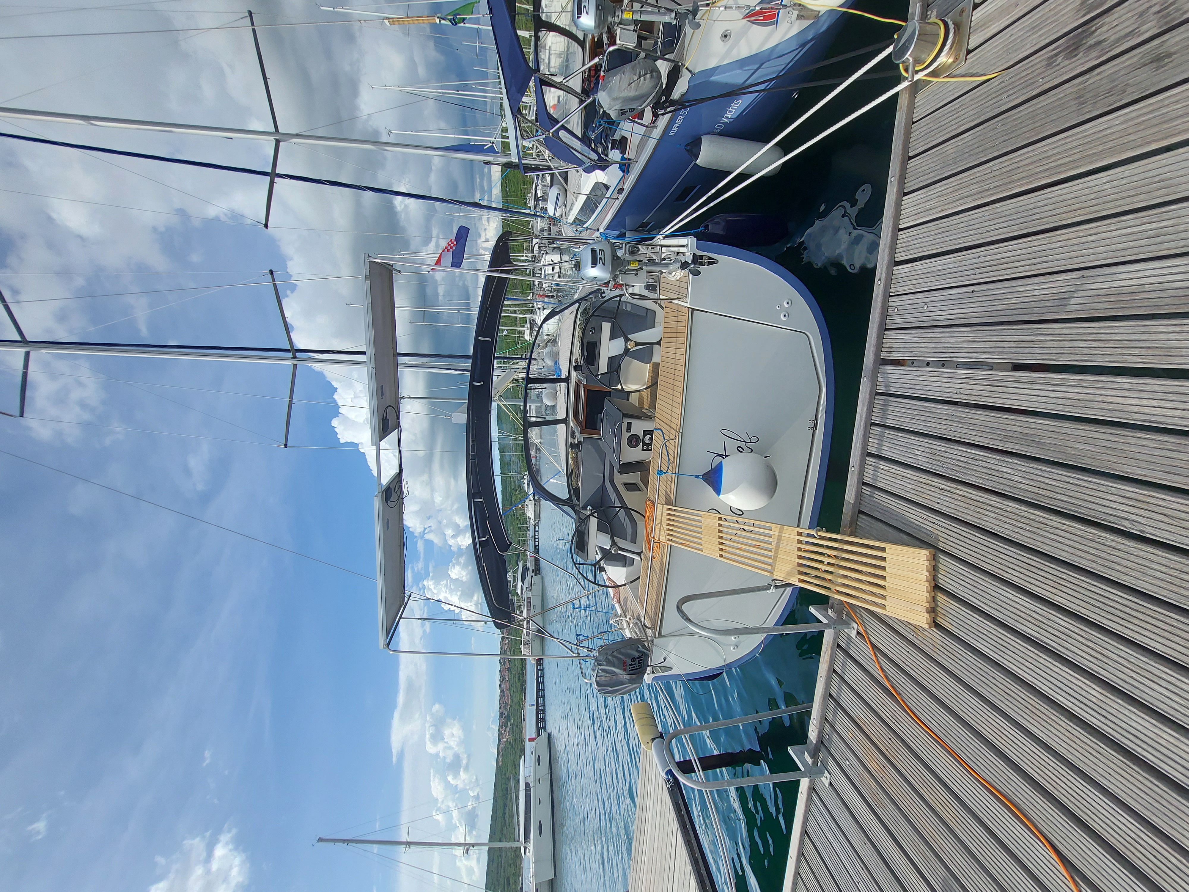 Bimini topPilota automaticoAcqua caldaSternshowerRanda avvolgibileWind direction-speedVHF Radio stationToilets with showerTavolo in pozzettoHeating systemAlimentazione a terra 220VCockpit pillowsElectrical anchor winchElica di PruaSteering wheel x2Ponte in teakZattera di salvataggioForno a microondeGPS Chartplotter in cockpitTV LCDPlancetta Specchio di PoppaFornello con fornoGenoa avvolgibileRadio/CD/MP3 playerCockpit loudspeakersDoccetta in pozzettoPozzetto in teakAria condizionataRefrigirator with freezerGeneratoreBilge pump (el./manual)USB/AUXStazione VentoTachimetroSprayhoodHolding tank (waste tank)Carte nautiche e guidaCinture di sicurezzaOutside showerNavigation equipmentDouble plotterCockpit refrigeratorDeck cushionsSolar panels 2 x 160 WNon-convertible table in salonBluetoothB&G elecronics with 2x Vulcan Chart ploters 7” (outside)Wine coolerBBQ grill, sink and teak covered countertop in cockpitSundeck cushionsTransit logCooking gasTowels ( one 50x100 per person )Final cleaning & full water tanksLenzuolaOutboard engine & fuelTenderDishtowel ( 3 )