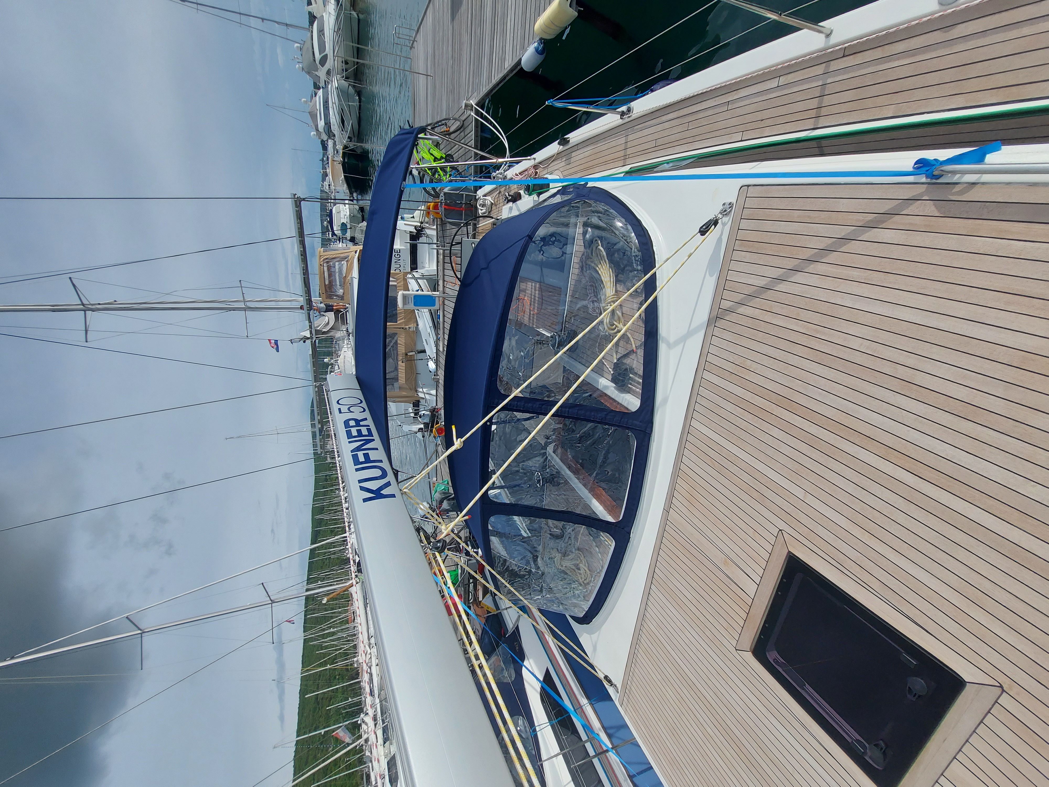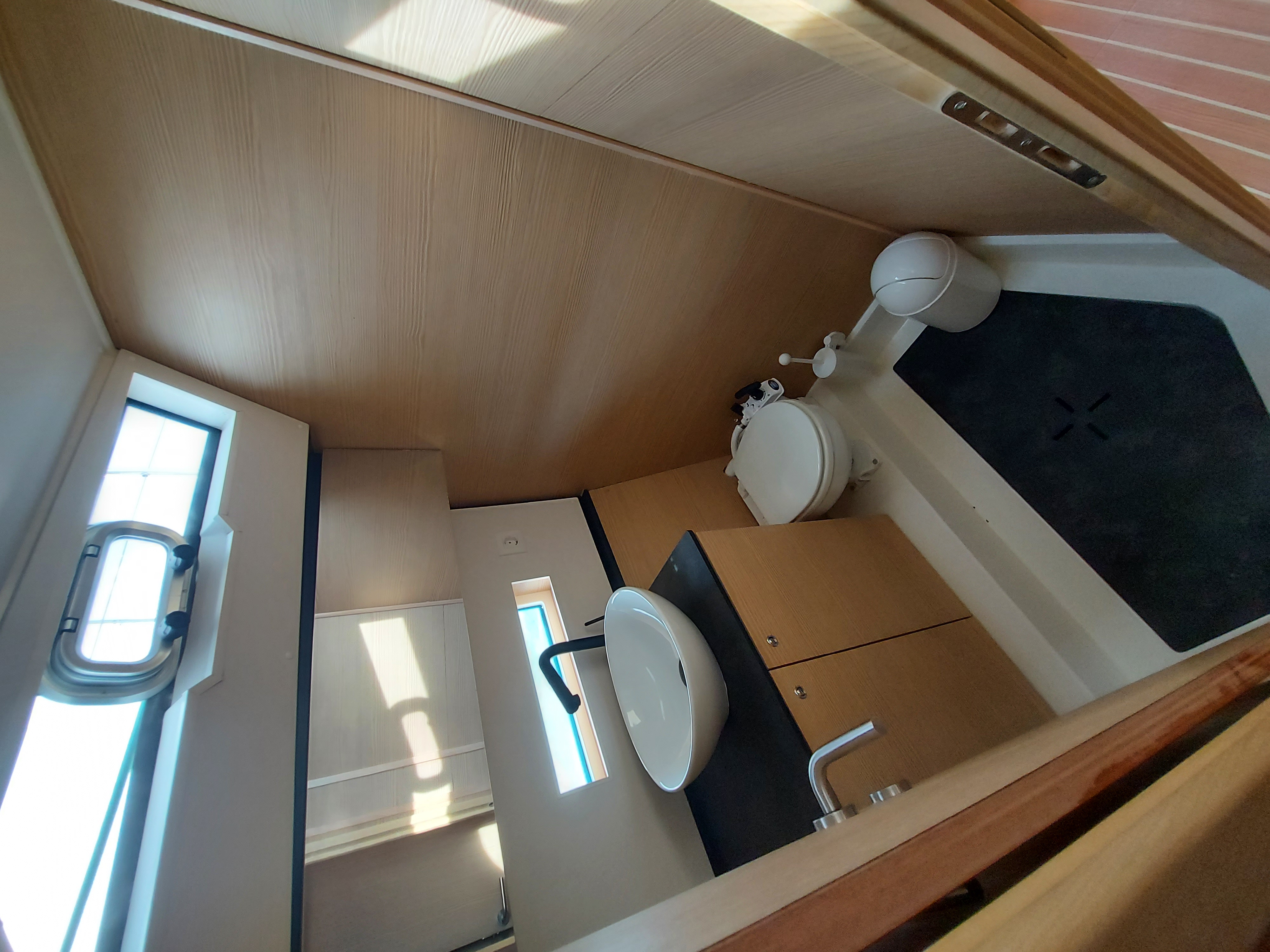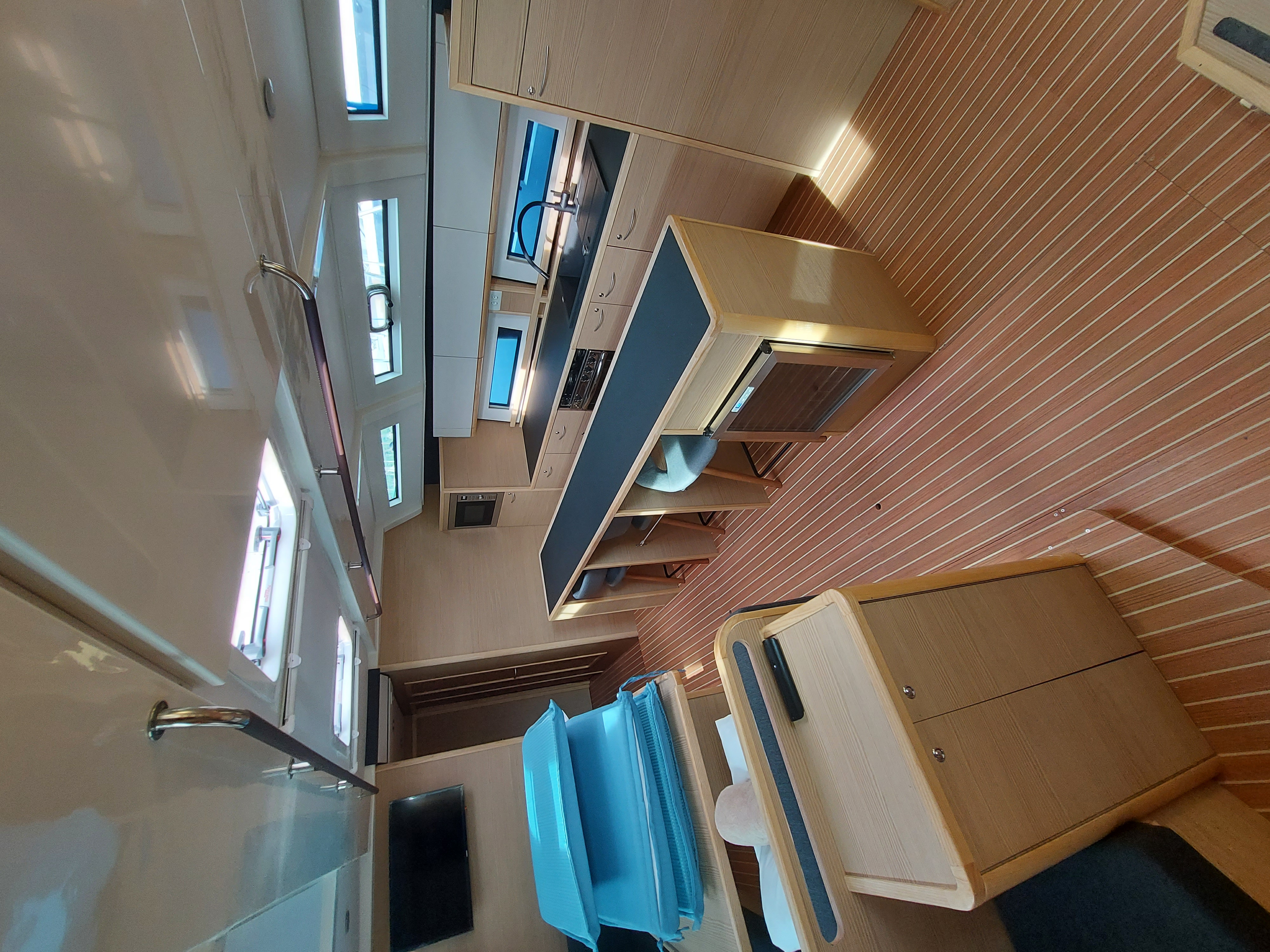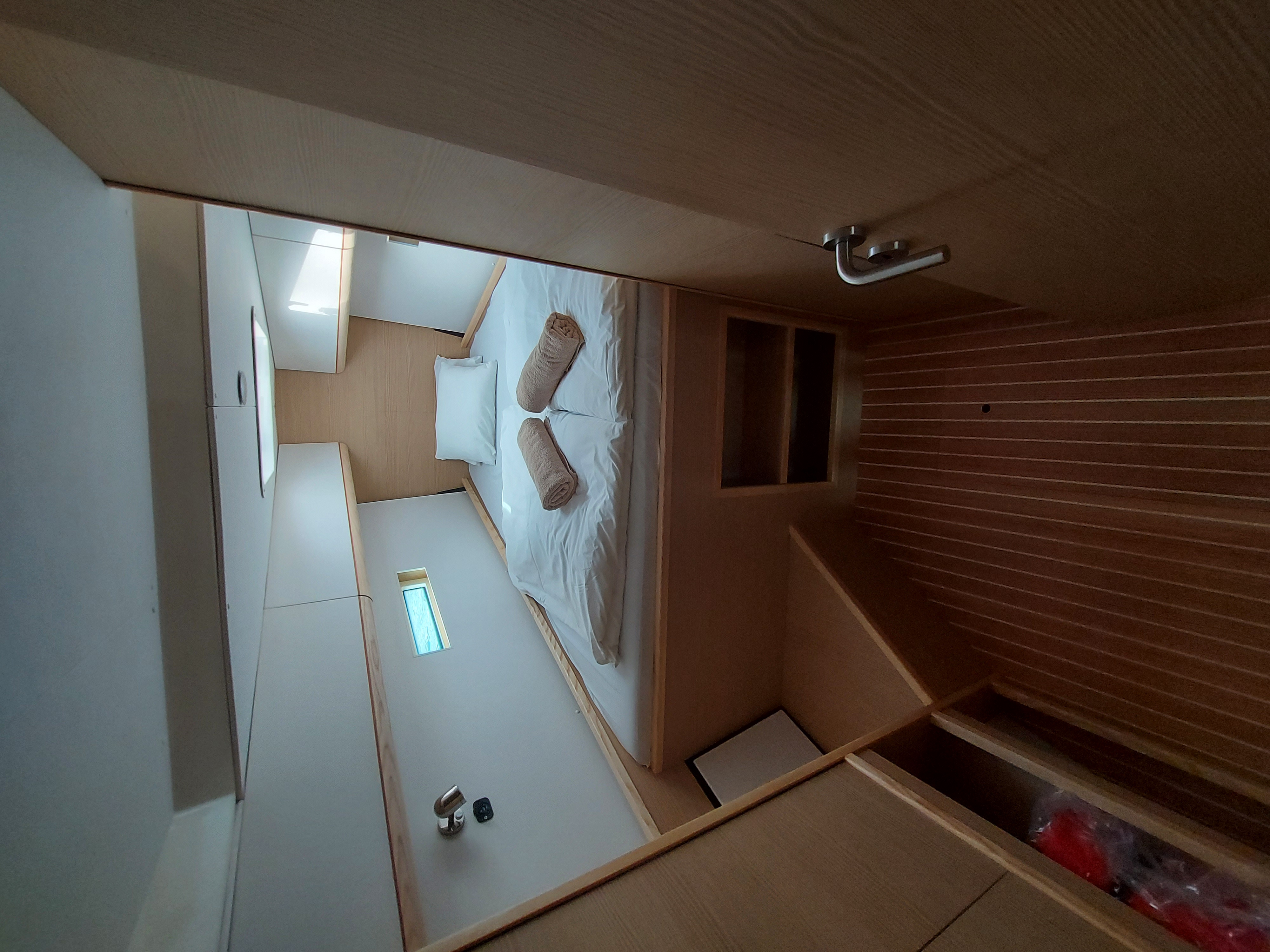 Bimini topPilota automaticoAcqua caldaSternshowerRanda avvolgibileWind direction-speedVHF Radio stationToilets with showerTavolo in pozzettoHeating systemAlimentazione a terra 220VCockpit pillowsElectrical anchor winchElica di PruaSteering wheel x2Ponte in teakZattera di salvataggioForno a microondeGPS Chartplotter in cockpitTV LCDPlancetta Specchio di PoppaFornello con fornoGenoa avvolgibileRadio/CD/MP3 playerCockpit loudspeakersDoccetta in pozzettoPozzetto in teakAria condizionataRefrigirator with freezerGeneratoreBilge pump (el./manual)USB/AUXStazione VentoTachimetroSprayhoodHolding tank (waste tank)Carte nautiche e guidaCinture di sicurezzaOutside showerNavigation equipmentDouble plotterCockpit refrigeratorDeck cushionsSolar panels 2 x 160 WNon-convertible table in salonBluetoothB&G elecronics with 2x Vulcan Chart ploters 7” (outside)Wine coolerBBQ grill, sink and teak covered countertop in cockpitSundeck cushionsTransit logCooking gasTowels ( one 50x100 per person )Final cleaning & full water tanksLenzuolaOutboard engine & fuelTenderDishtowel ( 3 )