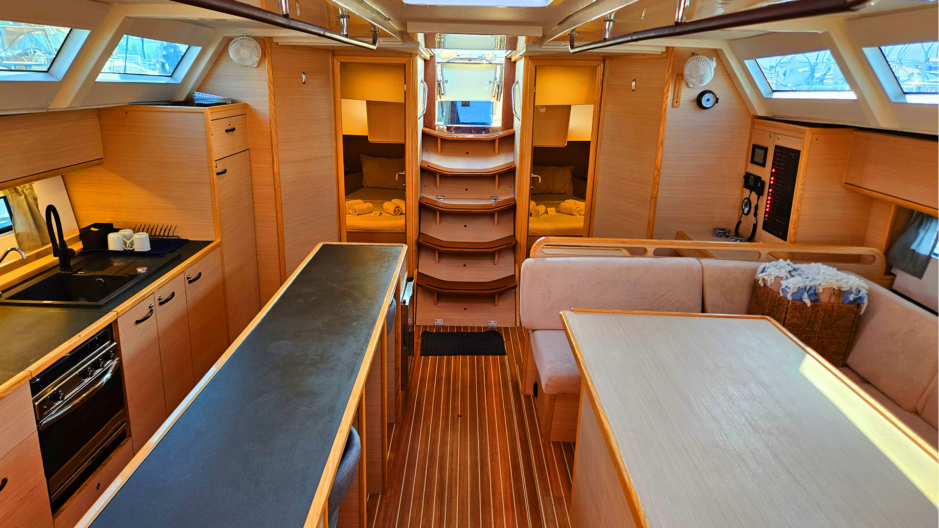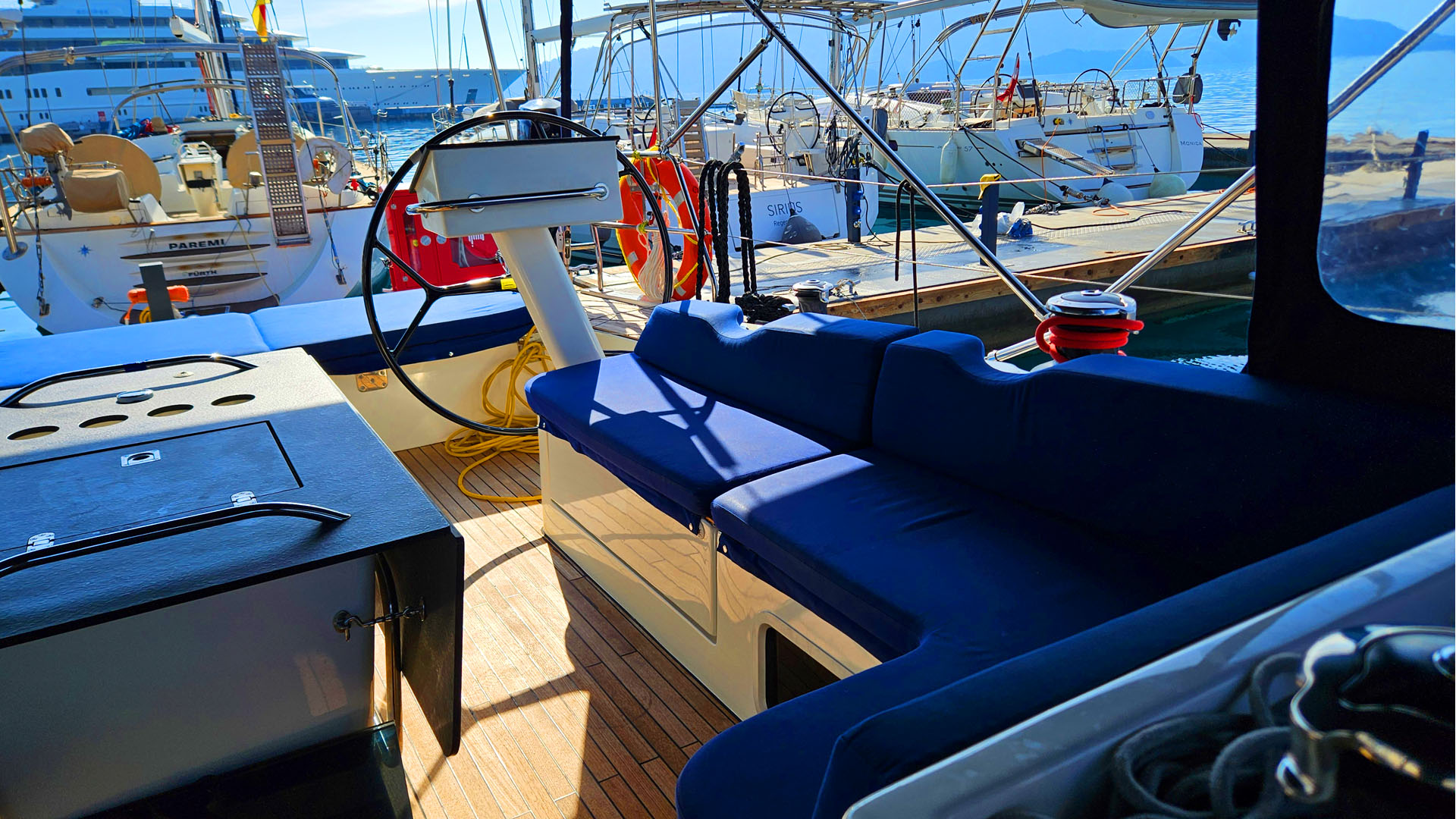 GeneratoreTenderInverterTVOutboard EngineElectric ToiletBiminiFornoStufaElectric Bow ThrusterB&G Navigation PackageAir Condition in SaloonB&G RadarUnderwater LightsB&G H50 Wireless SetWine Cooler 42 LFridge 42 LTeak Deck