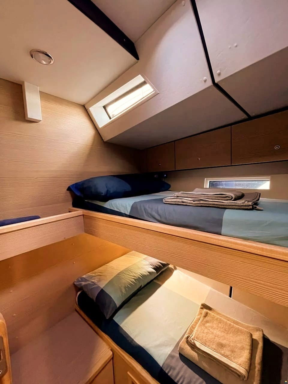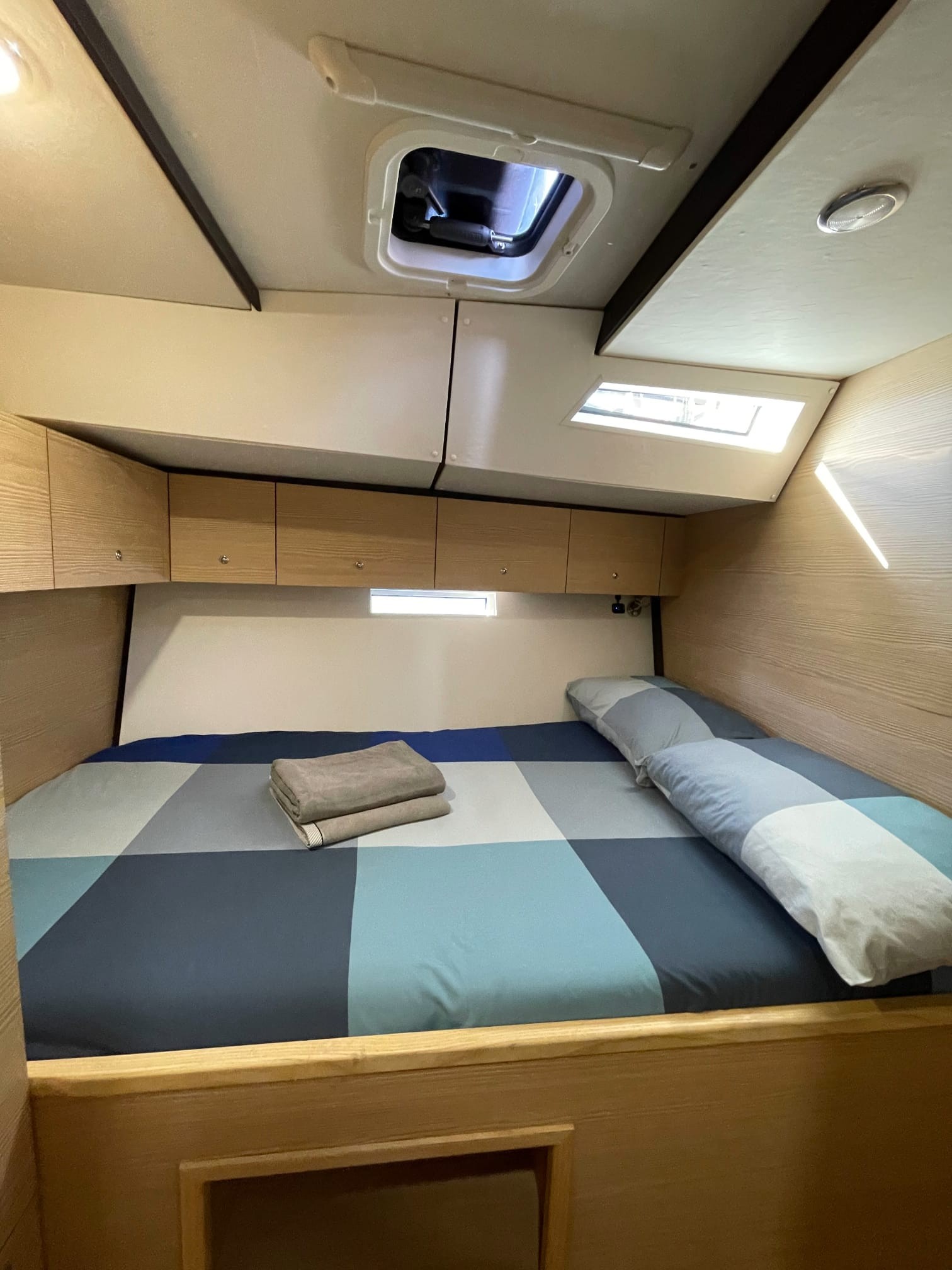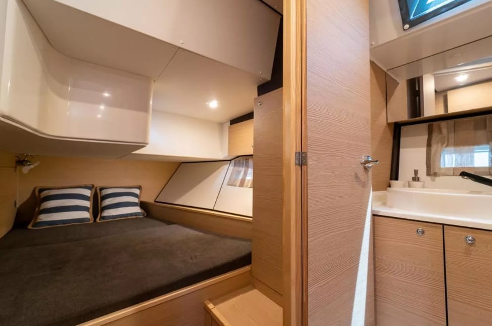 Pilota automaticoElica di PruaOutside GPS plotterFrigoriferoBiminiTenderRanda rollabileDocciaOutside showerCookerPlancetta Specchio di PoppaRiscaldamentoKitchen utensilsPonte in teakAltoparlanti esterniInterior speakersFlat screen TVAir Condition (salon+cabins)