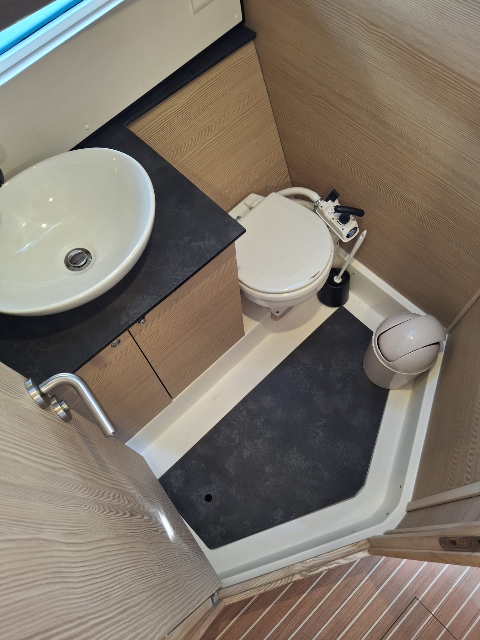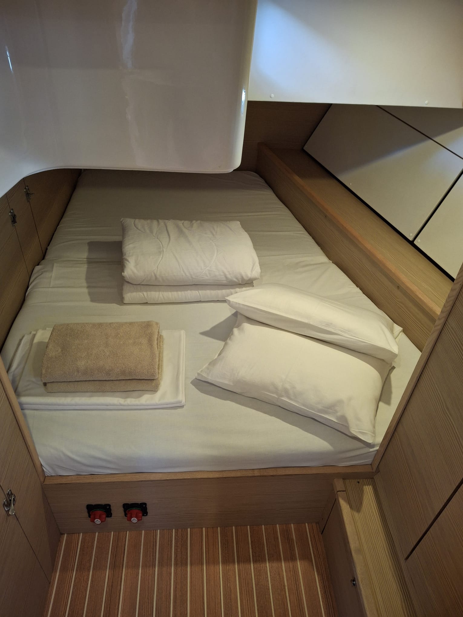 Radio/Lettore CDSternshowerRanda avvolgibileWind direction-speedVHF Radio stationToilets with showerTavolo in pozzettoAlimentazione a terra 220VCockpit pillowsElectrical anchor winchElica di PruaSteering wheel x2Ponte in teakGPS Chartplotter in cockpitPlancetta Specchio di PoppaGenoa avvolgibileCockpit loudspeakersPozzetto in teakAria condizionataCongelatoreGeneratoreUSB/AUXDouble plotterCockpit refrigeratorDeck cushionsSolar panels 2 x 160 WBluetoothHardtop bimini with LED lightsSundeck cushionsTransit logTowels ( one 50x100 per person )Final cleaning & full water tanksLenzuolaOutboard engine & fuelTender