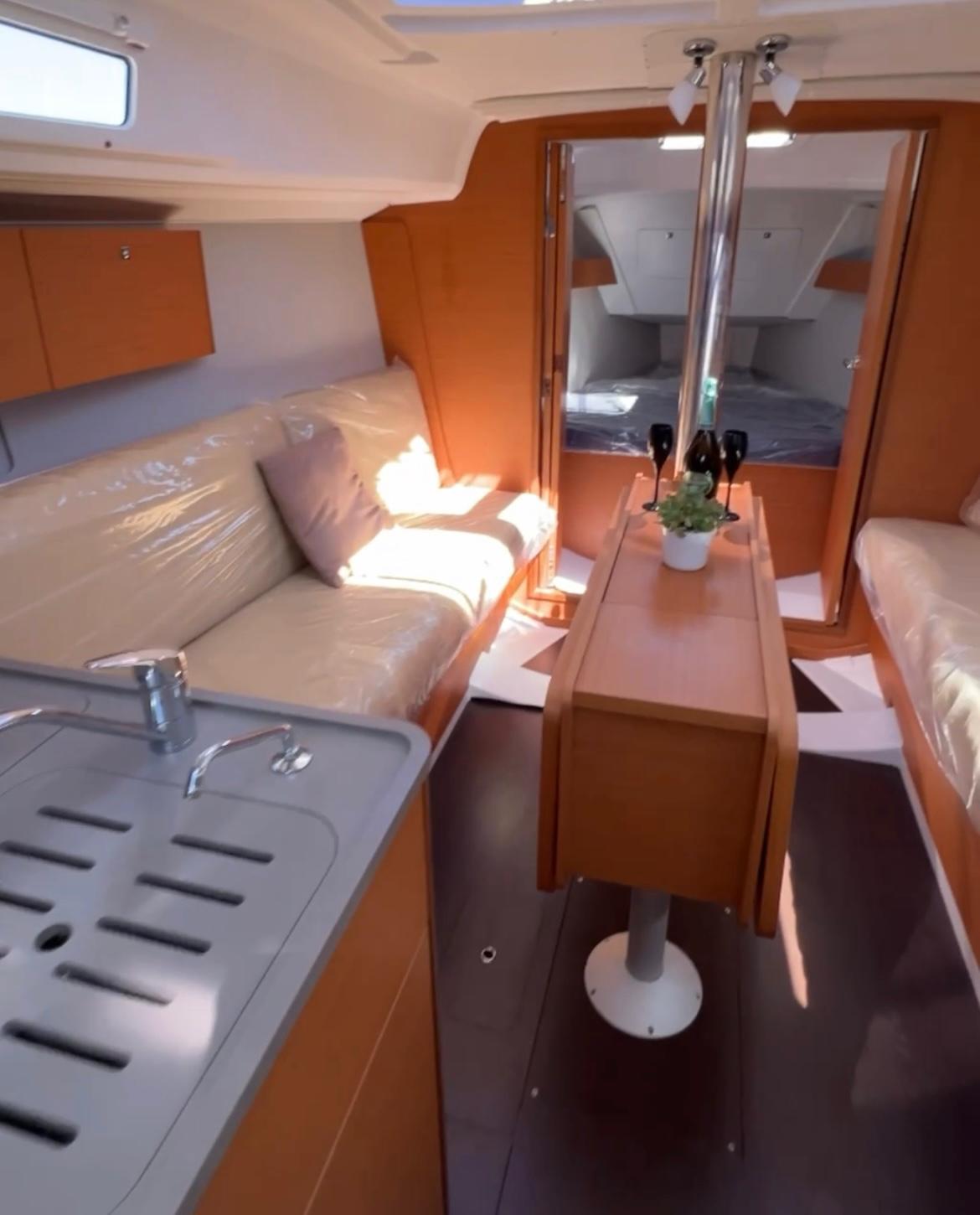 Randa steccataSelf tacking jibBarometroEcoscandaglioSolcometroVHFGPS ChartplotterLOG-ECHOWind StationAltoparlanti in pozzettoConvertible dinetteExternal showerFrigoriferoBombola del gas12/220 volt socketsCavo 220VTenderEstintoreKit di primo soccorsoSalvagenteAnchor chainZattera di salvataggioInflatable raftLife linesSafety beltsSpare anchor Giubbotto di salvataggioPompa di sentinaElectric bildge pumpSerbatoio acqua2 winches size T40Air pumpAnchor davitAsymetrical spinnaker gear or Code 0Automatic reefing line with automatic returnAutomatic shower pumpBONANZA BEIGE saloon cushions in leatheretteScaletta per il bagnoBiminiChartplotterCockpit portlight in aft cabinCockpit seat + cockpit in teakTavolo in pozzettoSalpa ancora elettricoExtra service batteryLazy bagLazy jackSprayhoodSteering rowdeckWaterproof bluetooth speakerWinches T 40