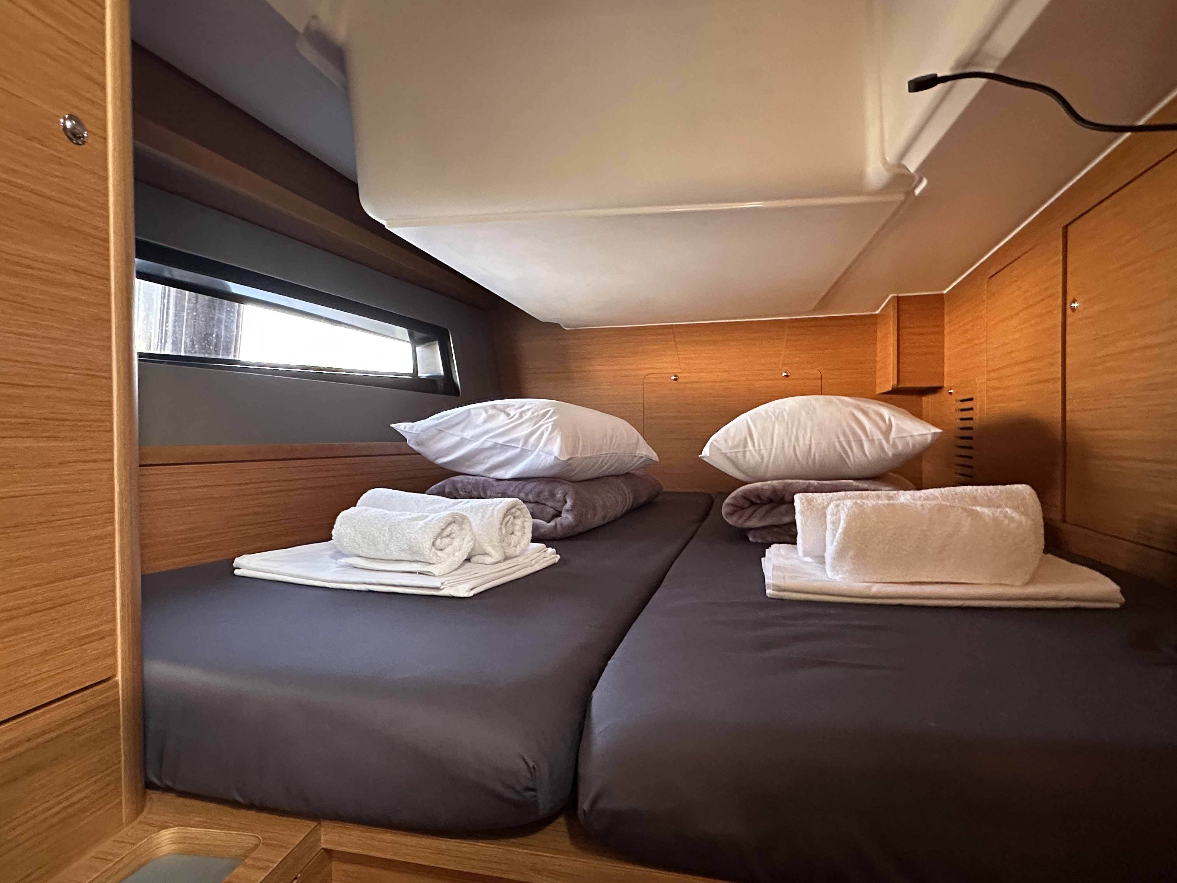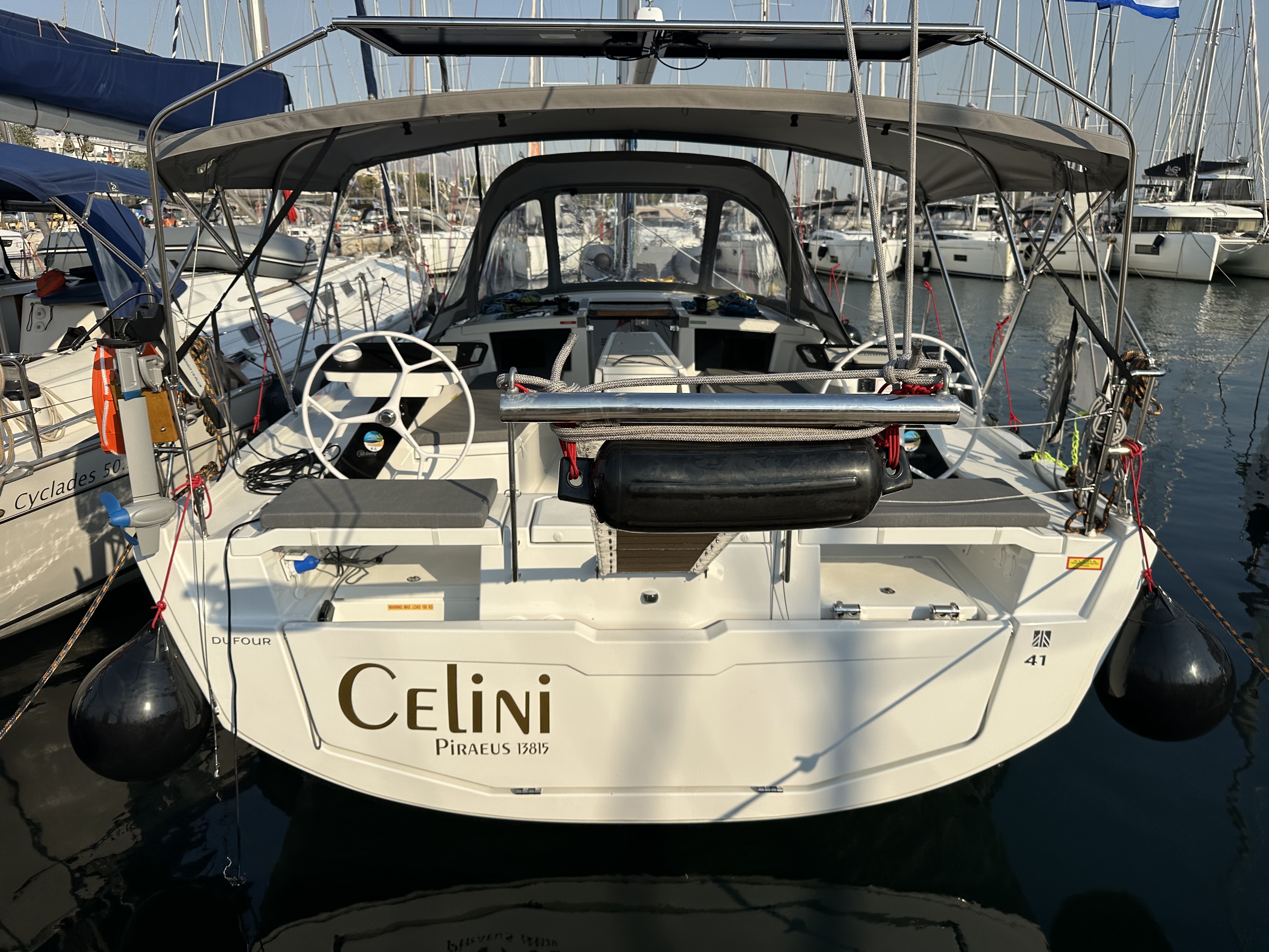 Tacking jibTimone a ruotaGPS Chartplotter in cockpitBussolaSolcometroPilota automaticoVHFEcoscandaglioAltoparlanti in pozzettoAcqua caldaPlancetta Specchio di PoppaBiminiDoccetta esternaSalpa ancora elettricoPosateFrigoriferoFornello con fornoLavelliCavo 220VPannello solareTender gonfiabileAncora di rispettoCinture di sicurezzaEstintoreAncoraCatena di ancoraggio calibrataKit di primo soccorsoSalvagenteZattera di salvataggioRazzi di segnalazioneCuscini e coperteTimone a ruotaEcoscandaglioRadio Cass/Radio/CD Player with Speakers in Saloon & CockpitRanda avvolgibileSpray hoodCarte nautiche e guidaStrumenti carteggioGiubbotto di salvataggioElica di PruaBombole gasFlippers and maskPortable hand pumpGasoline for outboard motorBinocoloDivider & Parallel rulerOrologioBarometroHeelmeterTorciaElectrical bilge pumpBansigoSail & Dinghy repair kitFlags C & NSegnale sonoroAncora galleggianteTagliacimeBoat/Engine/Instruments ManualsCassetta attrezziEngine & Gear oilSpare batteriesMezzo marinaioDinghy oarsAnti rust sprayMooring lines 10/20/50 metersSpare navigational bulbWC elettricoInverterInox boarding ladder
