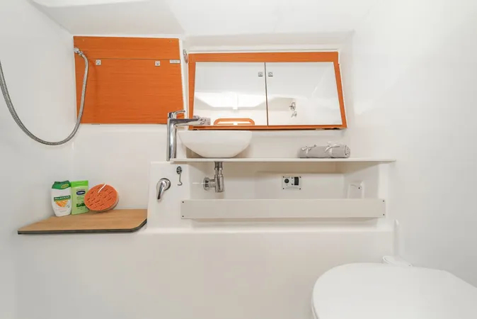 Cuscini in pozzettoWinch elettricoPilota automaticoElica di pruaBussolaGPSGPS chart plotterLogge/Lot/SpeedCarte nauticheSet di navigazioneWind instrument/AnemometerBlack Water TankEstintoreKit di primo soccorsoTorciaDotazioni di sicurezzaSet of toolsRadio VHFInverterPannelli solariAncora di rispettoBimini topCockpit/stern, outside showerSpazzoloneTenderSalpa ancora elettricoParabordiFolding cockpit tablePlastic bucketSprayhoodAcqua caldaKitchen utensils (Galley equipment, cutlery)FornoFrigoriferoStufaWC elettricoInside showerFusion radioOutdoor speakersUSB
