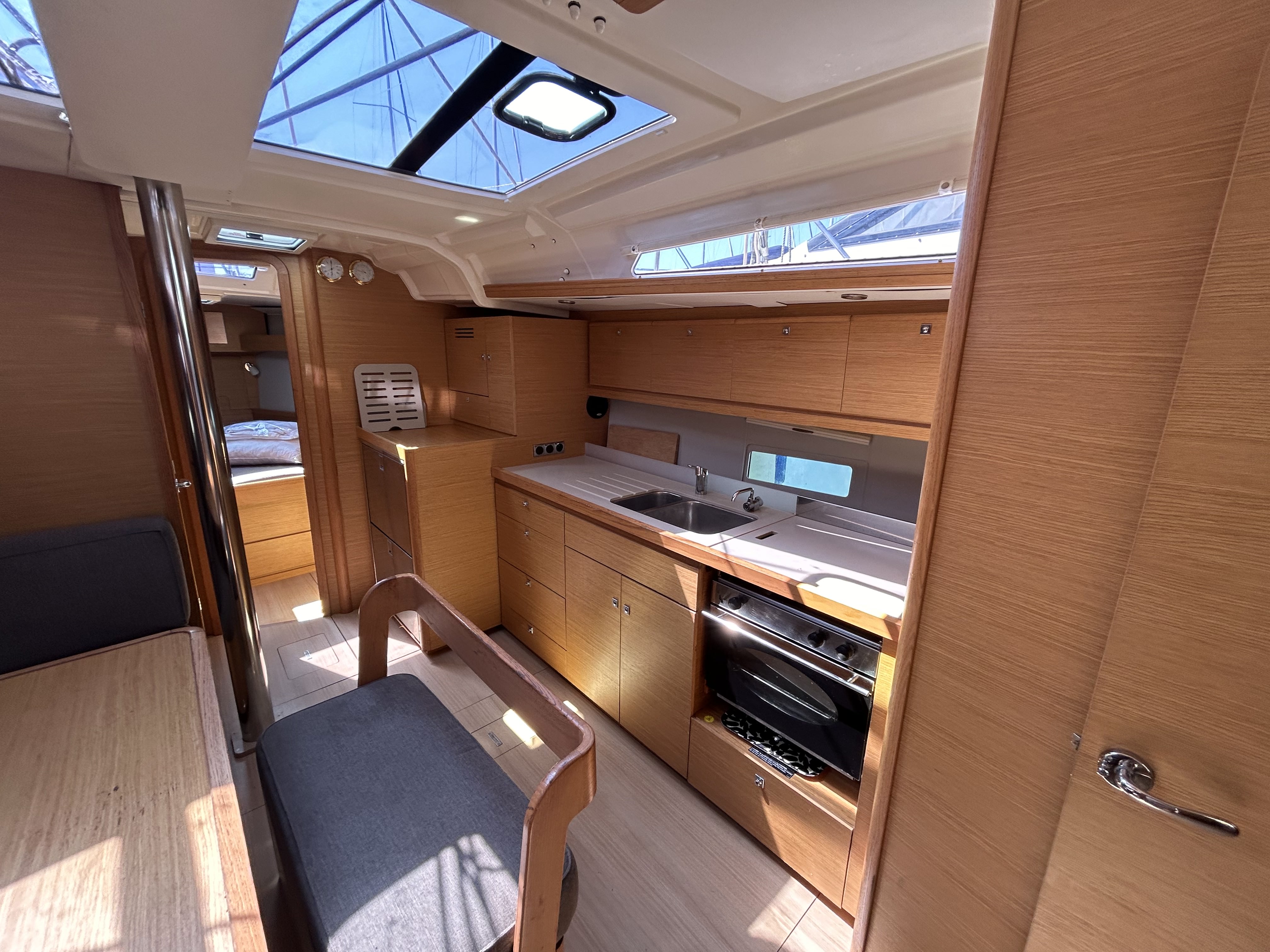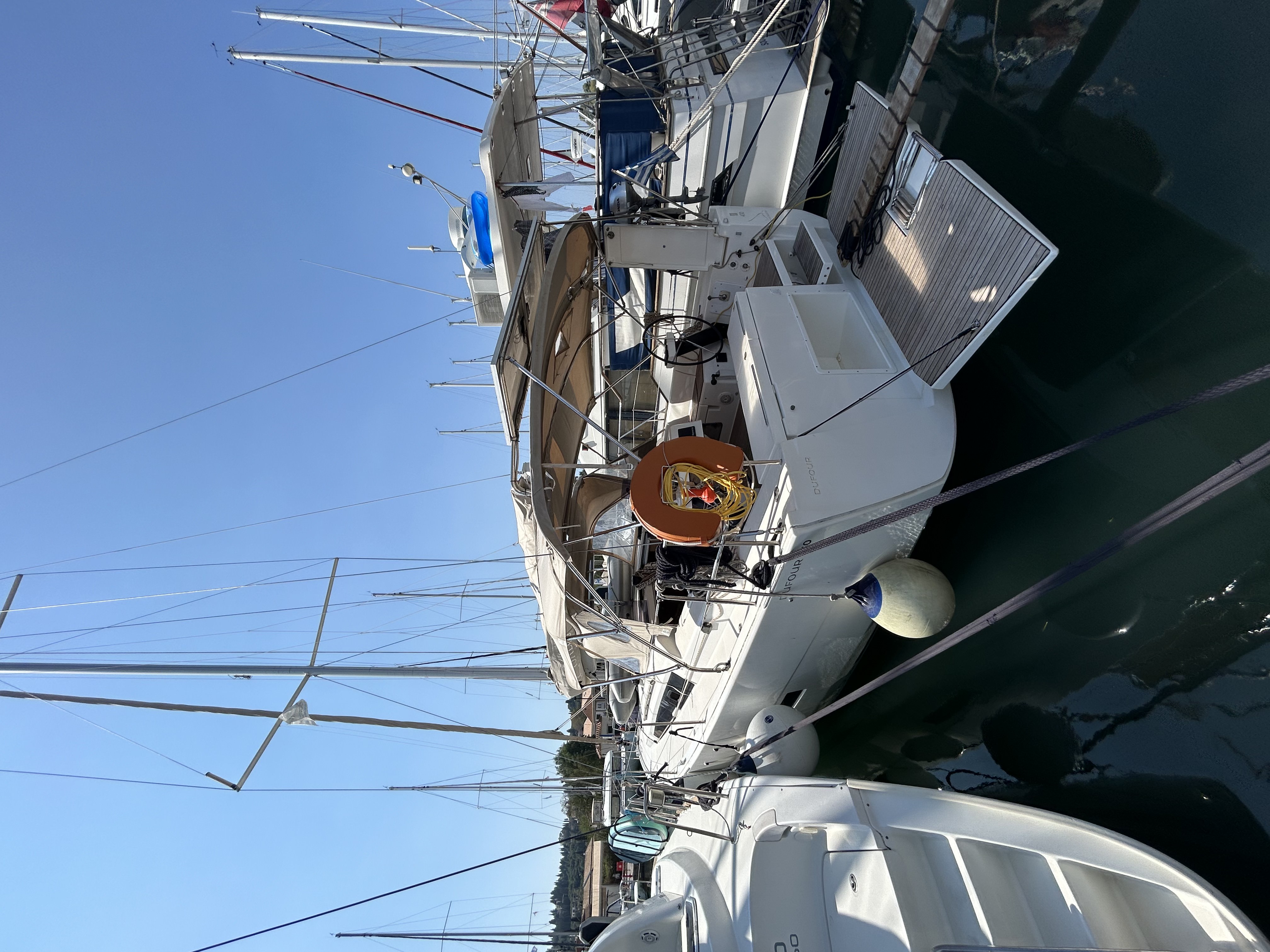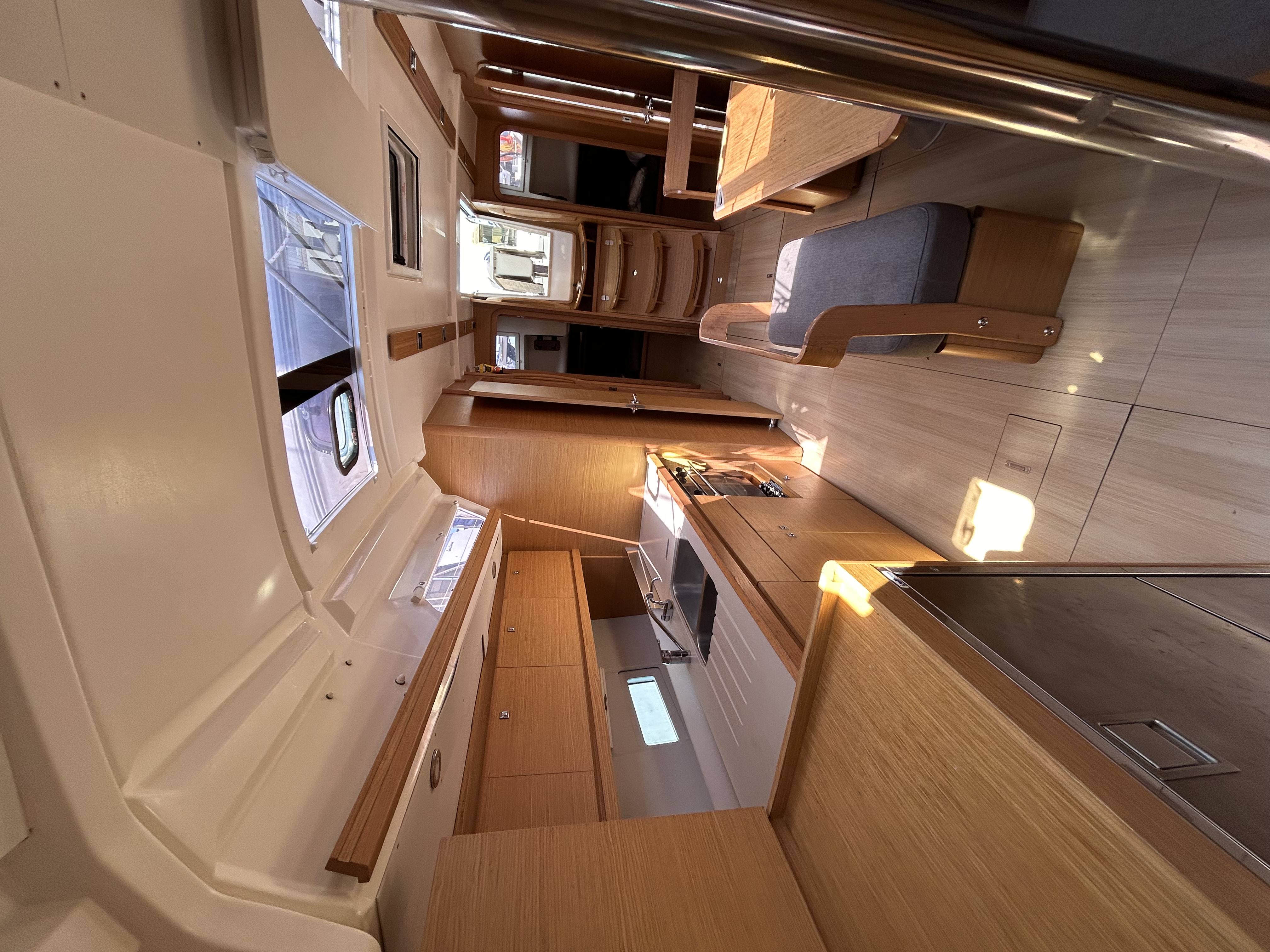 12V plug on the control panel220V shore connection with shore power cable220V socket in each cabinBimini topFolding cockpit table Folding saloon table with extra cushion for additional berth in saloonHot water shower in cockpitISOTHERM Electrical FridgePannello solareSwimming platform with lifting mechansmTwin white steering wheelsElica di pruaTenderLazy bagLazy jackRadio/USB Player with outside speackersSprayhoodRaymarine i70 wind, speed depth sounderWather heater12V/220V converter 300WRanda steccataRaymarine Evolution autopilot P70Raymarine GPS AXIOM 7Additional fridgeDeck gas barbeque with sink
