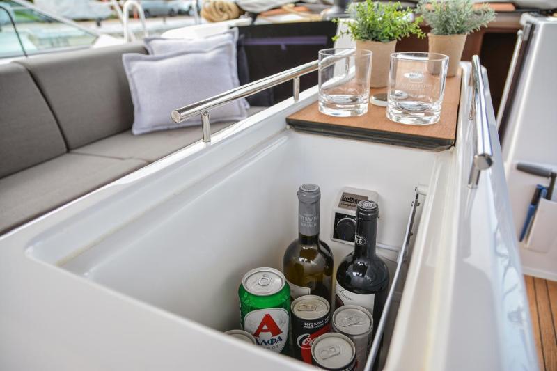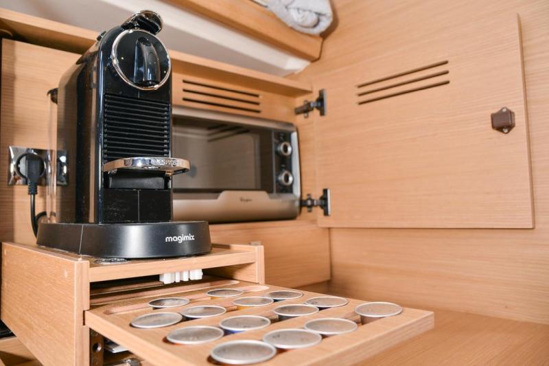 Led navigation lightsBBQ/Plancha on aft deckTavolo in pozzettoNespresso machineLavello60 HP engineSalpa ancora elettricoPlotter (cockpit)GPS AXIOM 9 on cockpit table VHF loudspeaker in cockpitGeneratoreWater MakerElica di PruaPilota automaticoInverterBiminiTender & OutboardAria condizionataLight oak contemporary interiorCuscini in pozzettoBlinds and mosquito nettingCD/MP3 playerSprayhoodSnorkelling equipmentDoccetta in pozzettoAltoparlanti in pozzettoTeak in CockpitHoliding tanksStainless steel bathing laddernewLed interior lightsWater boiler (40lt)Aft sunbath cushionsFixed GangwayFull batten MainsailLazy bagSelf Tacking Jip
