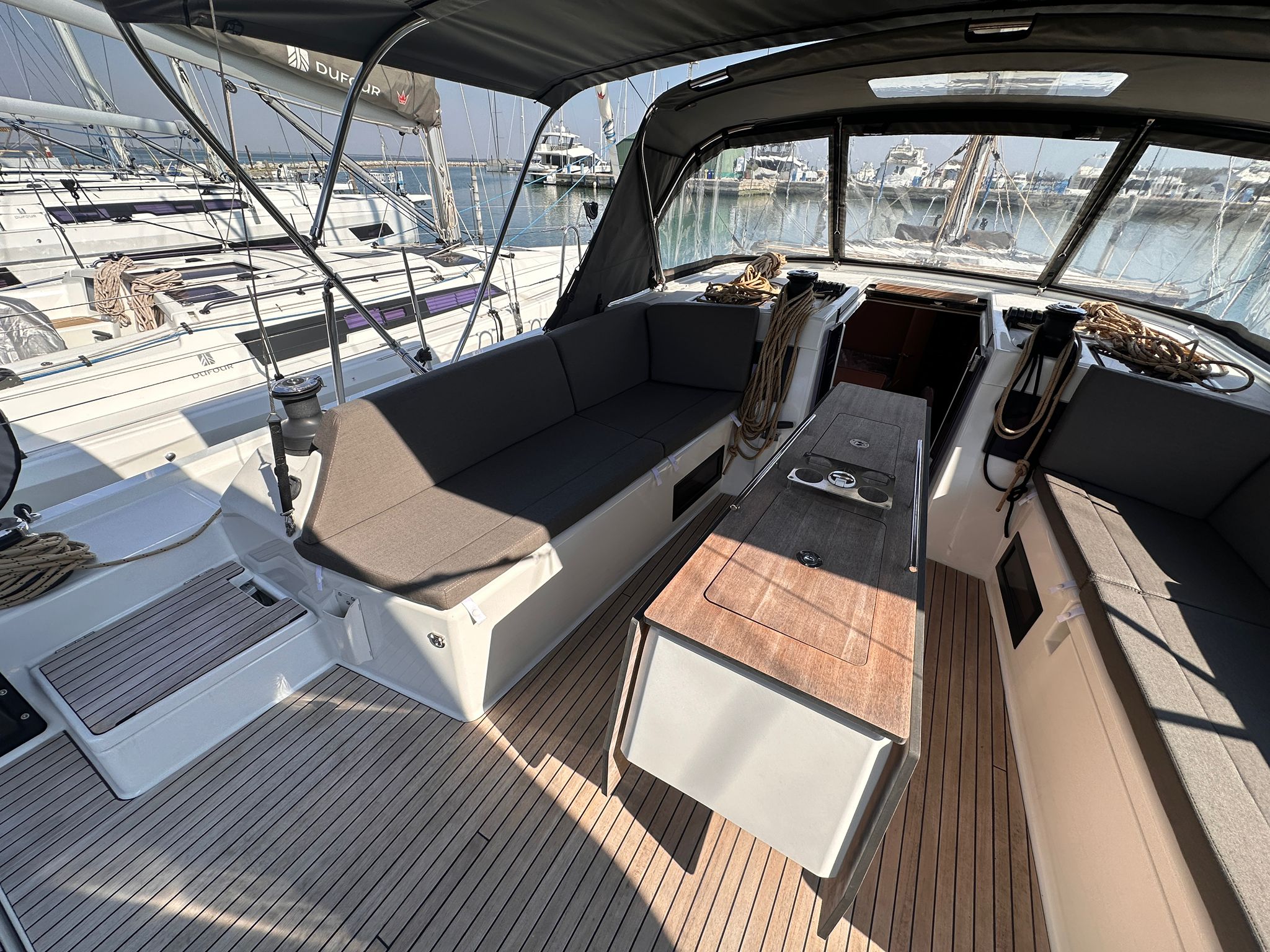 Pilota automaticoElica di pruaShowers drains with automatic pumpAria condizionataChartplotterWC elettriciWinch elettricoGas ovenGeneratoreSprayhoodPozzetto in teakWindlass additional with chain counterComplete safety equipmentManual stern platform openingCuscini in pozzetto2000 W battery charger/inverterVHFBoiler