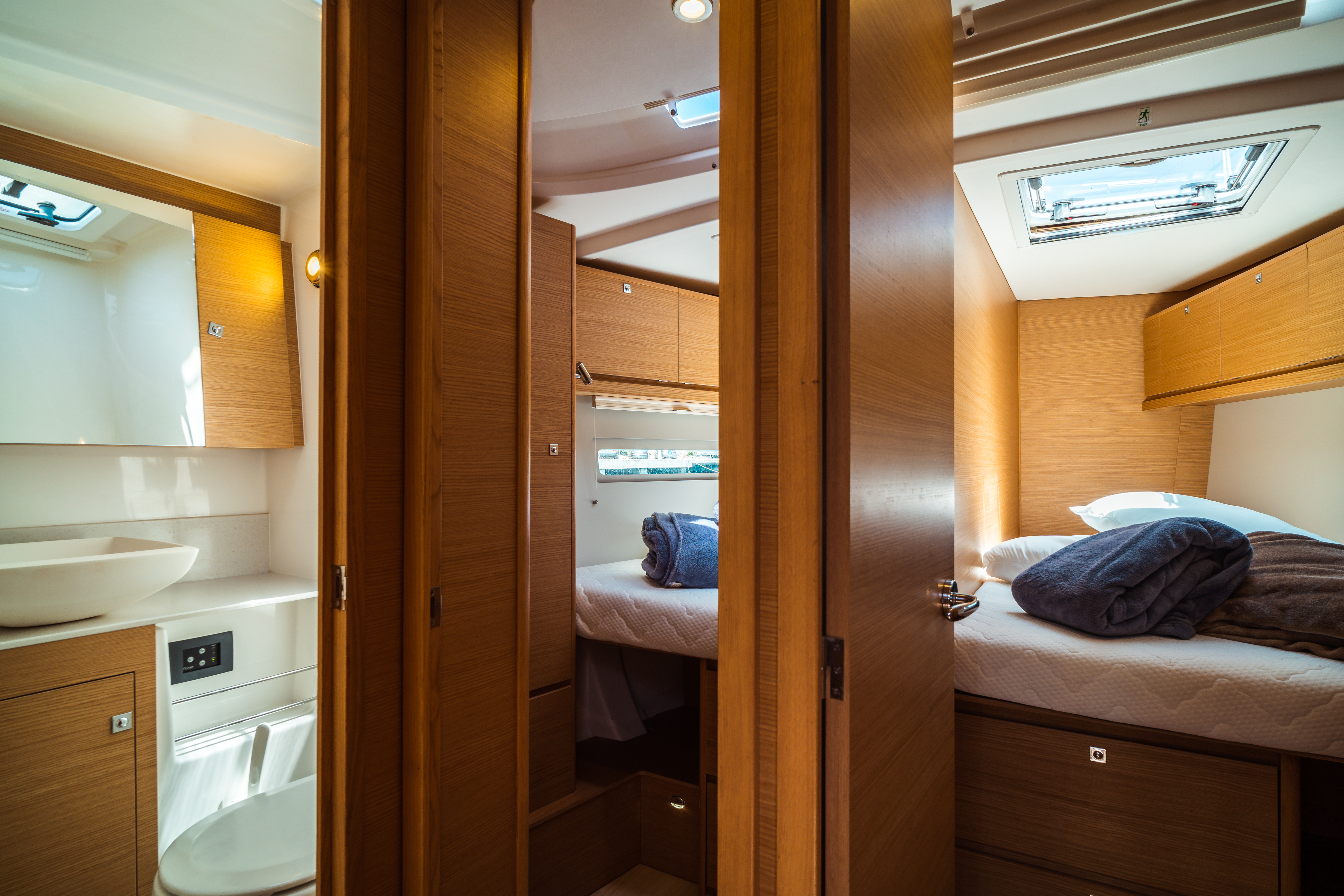 MS FUSION Player 2 loudspeakers in salon + 2 outsideHelm seat cushions Dark GreyFlag halyards on spreadersIndirect lighting in cabins and salonWaterproof loudspeakers in cockpitElectric seawater pumpComposite bimini with windscreen at helm stationInverter 12/220 VUSB sockets in all cabinsFans in salon and cabinsRetractable bow thrusterFully equipped kitchenNautical charts for Sardinia & CorsicaHandheld compassPilot Book (IT/EN/DE/FR)TorciaFrench & Corsican FlagsBinocoloDividers, Triangle, pencilsBook of Lights and SignalsTimone a ruotaPilota automaticoStazione VentoAnemometroGPS chartplotter Radio VHFStazione VentoFrigoriferoGas stove with OvenAria condizionataMicrowave OvenPillows & BlanketsRadio + USB + BluetoothDouble berth in salonFans in salon and cabins220v boilerInverterCoffee machineElectric WCFully equipped kitchenBiminiSprayhoodElectrical Windlassanchor with chainElica di PruaSecond AnchorBoat HookWater Hose & AdaptorsPasserellaAdditional Ropes1 Mask & snorkelBucket, cleaning Brush, SpongePegs & washbasinPozzetto in teakTavolo in pozzettoAltoparlanti esterniExternal showerExternal grillElectric opening bathing platform1 x FridgeExternal CushionsGennaker HalyardParabordiExternal cockpit lightLifejacketsLife HarnessesFirst Aid KitBarra Timone di emergenzaEstintoreEmergency FlaresTool kitBlack Cone & BallAirhornSignal Rockets and FlaresLife buoy with line and ledRanda avvolgibileJIB