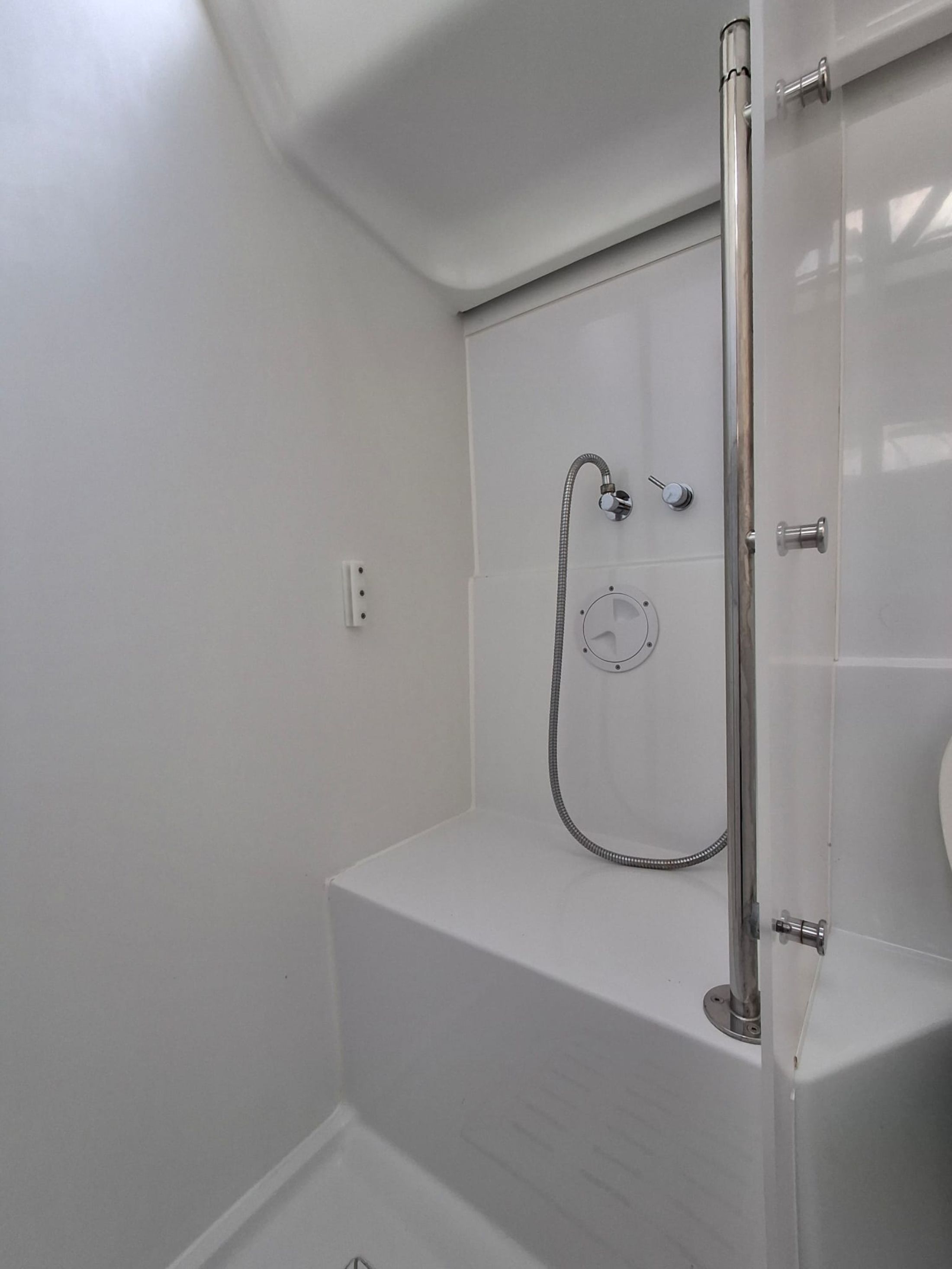 Bimini topPlancetta Specchio di PoppaPasserellaSprayhoodPozzetto in teakTavolo in pozzettoCockpit/stern outside showerScaletta per il bagnoDinghy + pumpFuoribordoAncoraCime di ormeggioPlastic bucketSpare anchor (reserve, auxiliary anchor)Maniglia WinchImpeller, V-belt, oilfilterSalpa ancora elettricoAnchor swivelBlack ball Mezzo marinaioParabordiSpring lineManichetta acquaKit di primo soccorsoSegnale sonoroHorseshoe lifebouyLife jackets per personDistress flare boxLife belts (Safety harness x2)Distress signalsSet of toolsRadio VHFTorciaEstintoreZattera di salvataggioRanda avvolgibileGenoa avvolgibileFrigoriferoAcqua caldaMoka potLavelloKitchen utensils (Galley equipment, cutlery)Bombole gasStufaOutdoor speakersBluetooth playerIndoor speakersWi-Fi internet (unlimited)Elica di pruaBussolaDeptsounderGPS chart plotter - cockpitBinocoloSet di navigazioneHarbour guidesNavigation (Nautical) charts and nautical guideStazione VentoRiflettore radarBussola da rilevamentoPilota automaticoComposite steering wheelsLogge/Lot/Speed/Wind-tridataBilge pump handleCabin cushions/pillowsDuvet + coverConvertible saloon tableBatterieCaricabatterieBilge pump - Electric230 volt socketPresa 220VPannelli solari