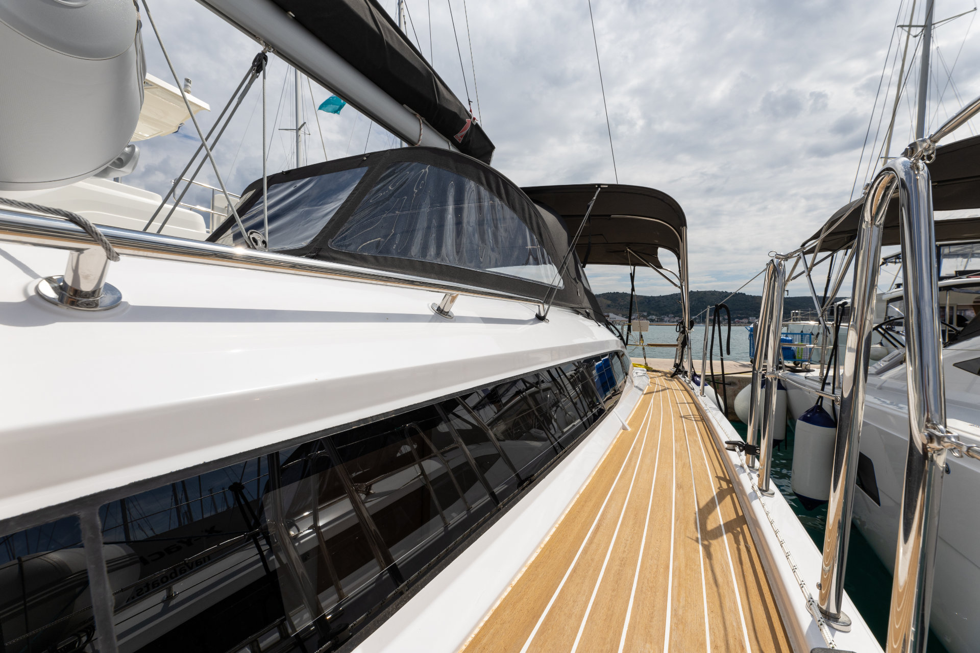 Pilota automaticoVHFGPSGPS chart plotter in cockpitBussolaWinchesAria condizionataAmbient lightsElica di pruaExtra berths in saloonbedlinen & towelsStoviglieSerbatoio acquanautical charts & pilot bookTimone a ruotaAltoparlanti in pozzettoJL MM50 radioSaloon speakersWi-FiHair dryerToilet (manual)Plancetta Specchio di PoppaBiminiDoccetta esternaCushions in cockpitPasserellaGrillPozzetto in teakTeak cockpit tableSprayhoodFrigoriferoStove with ovenFrigorifero220 V shore connectionBilge pumpsHeating (webasto)electric toilet(s)Dinghy with outboard engineAncora di rispettoCinture di sicurezzaEstintoreAncoraKit di primo soccorsoRazzi di segnalazioneGiubbotti di salvataggioTeak