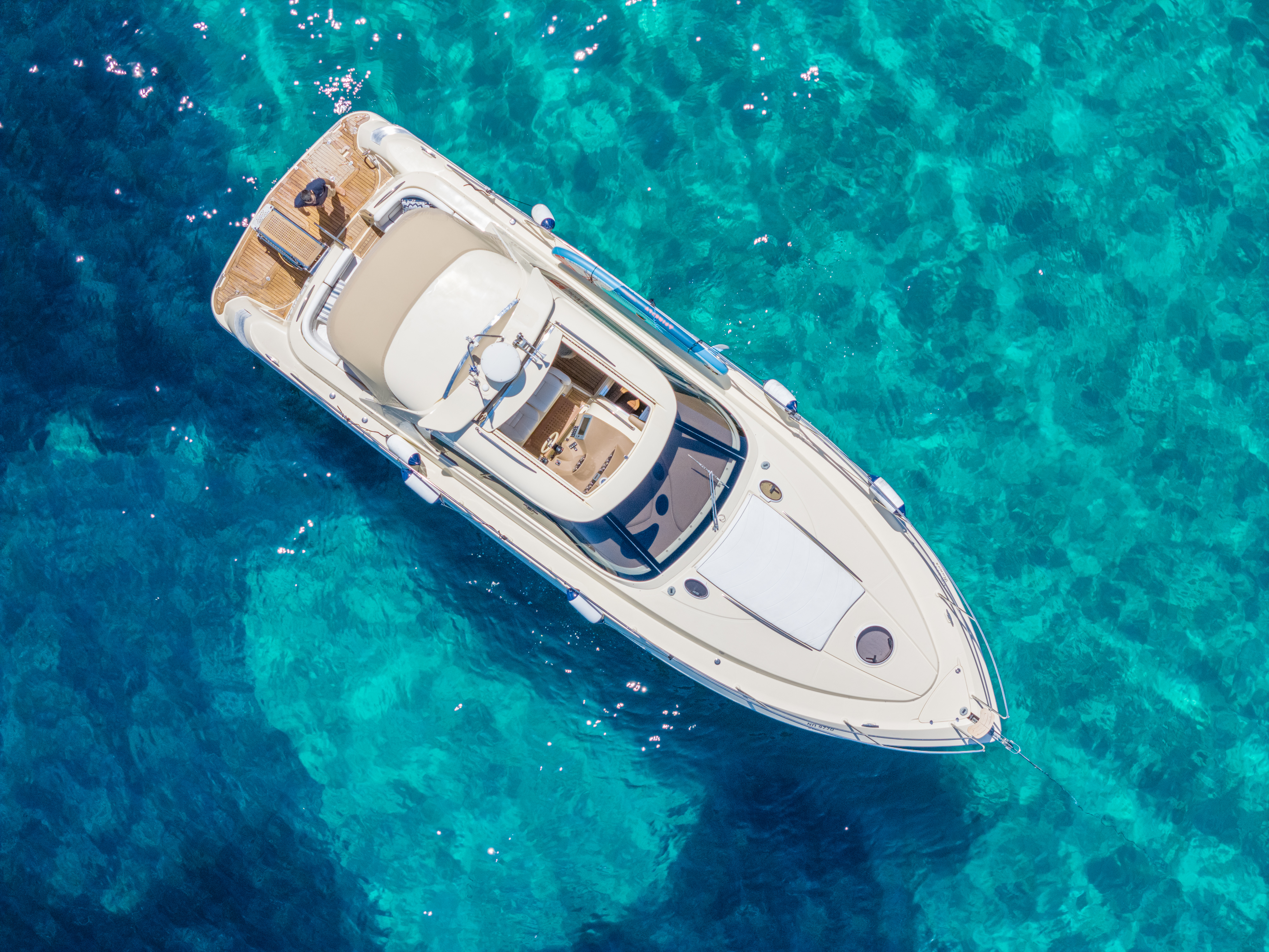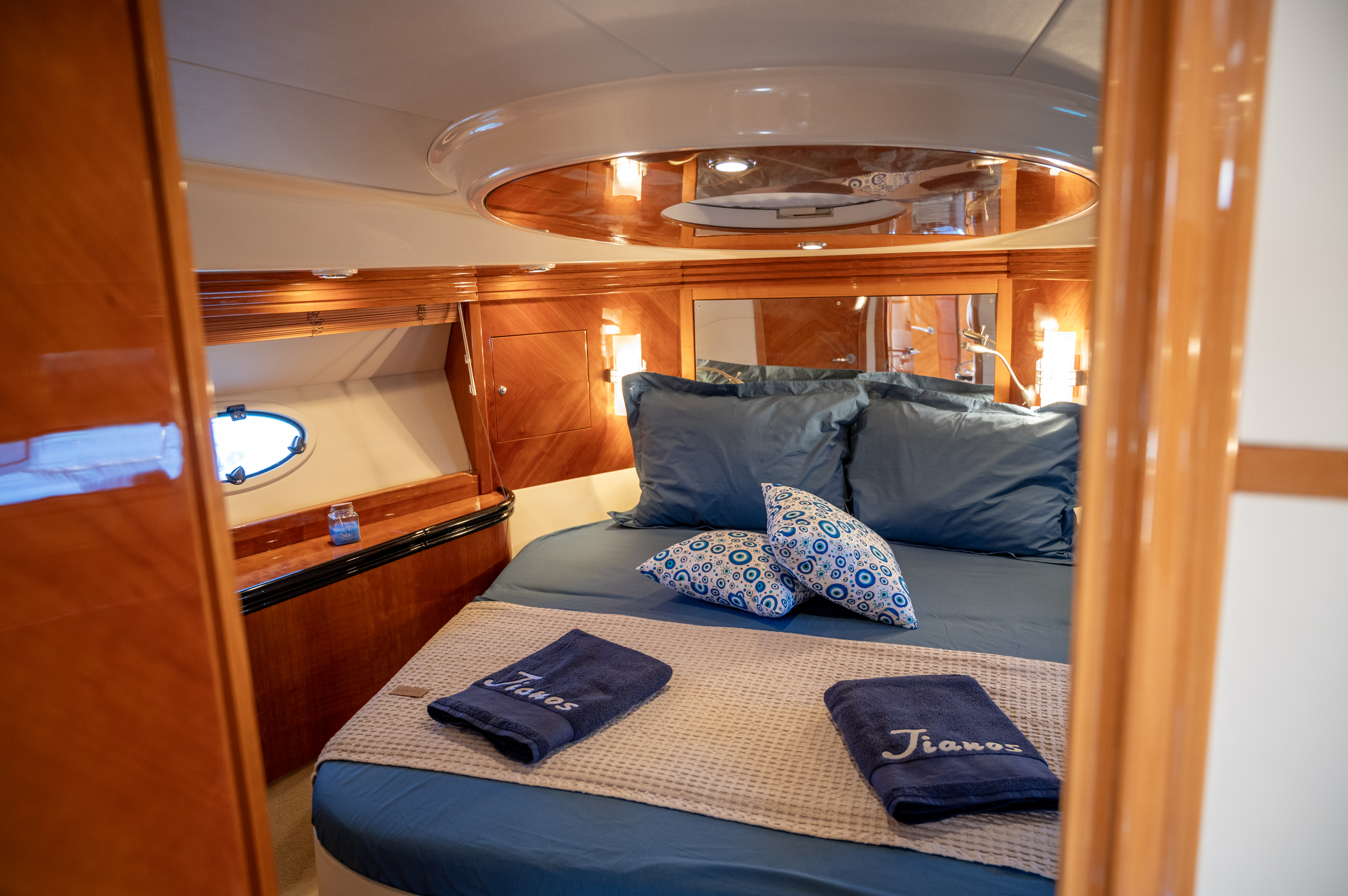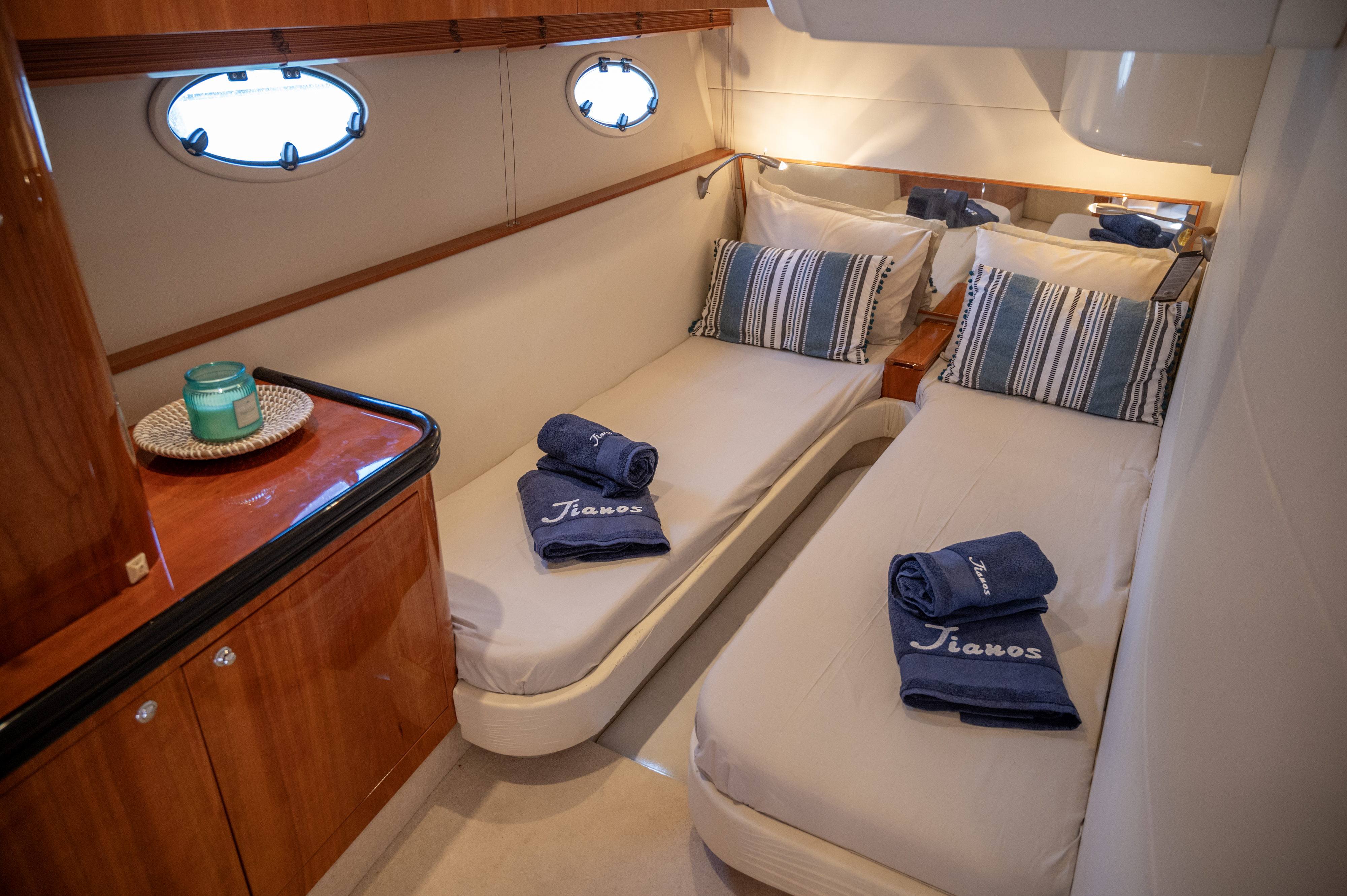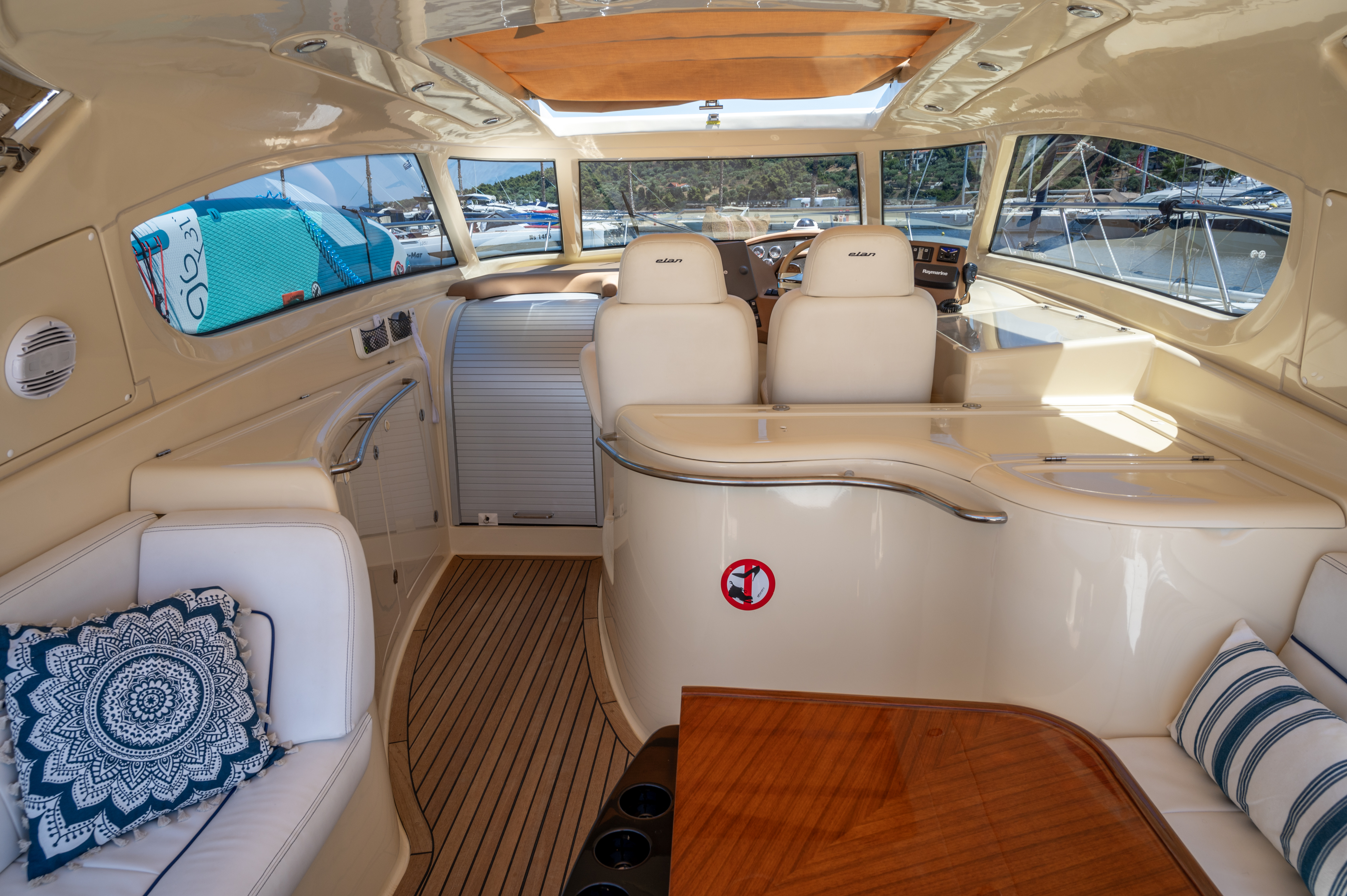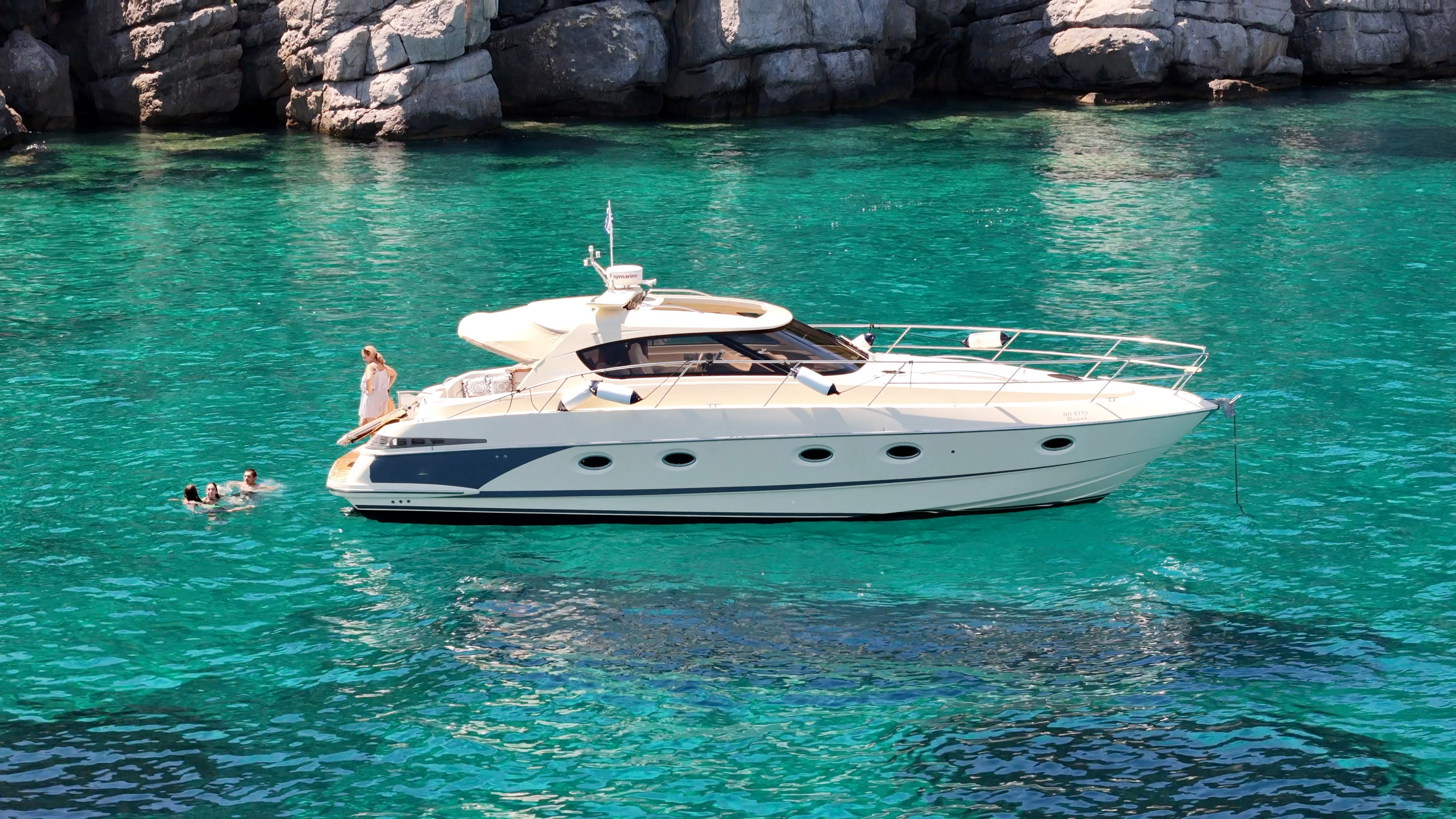 Bow thrustTVVHFGPS RaymarineGrill cockpitFrigoriferoRadio/CDAria condizionataForno a microondeFresh water tankPozzetto in teakLifejacketsGeneratoreFloating LightBox of FlaresKit di primo soccorsoSafety Harness