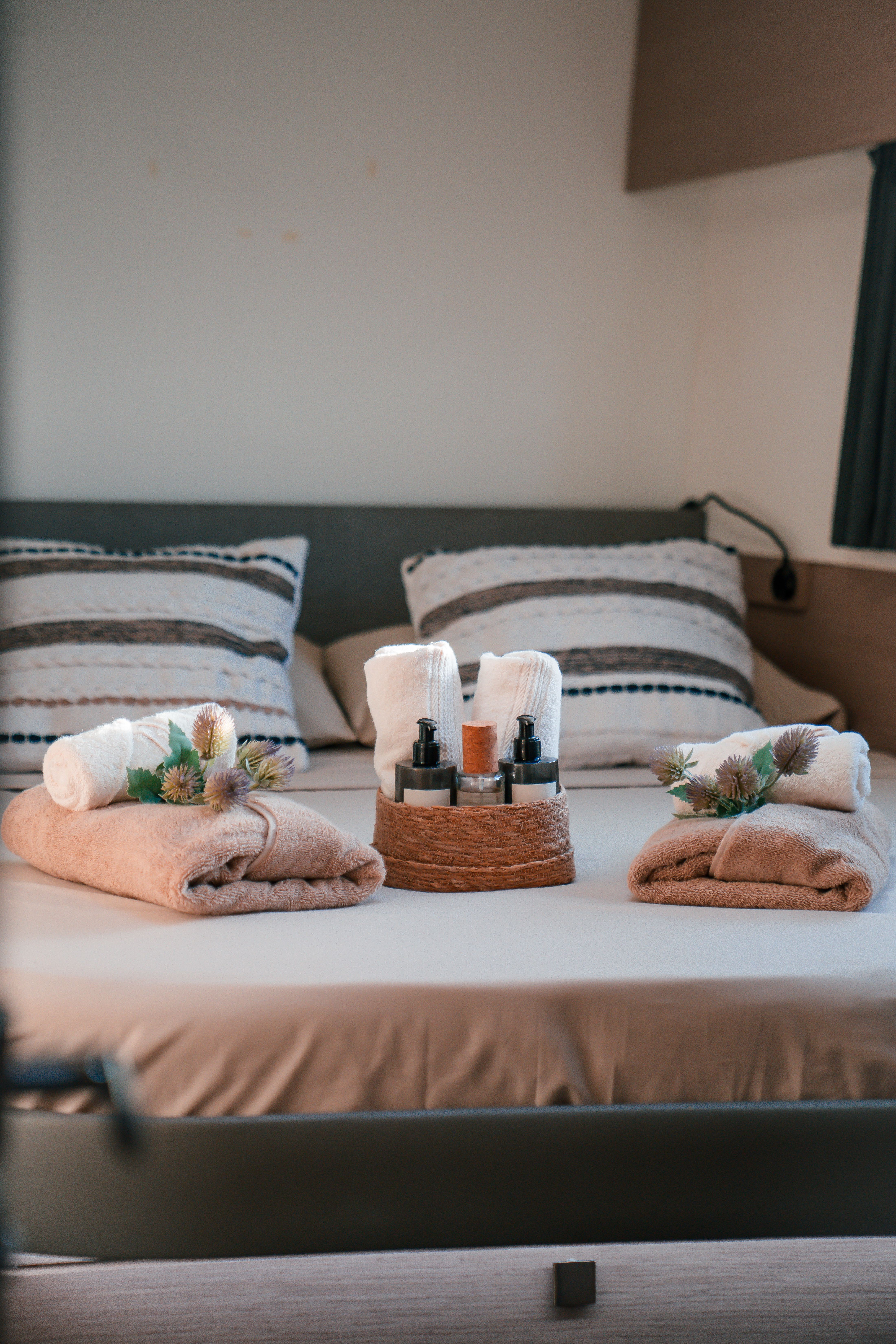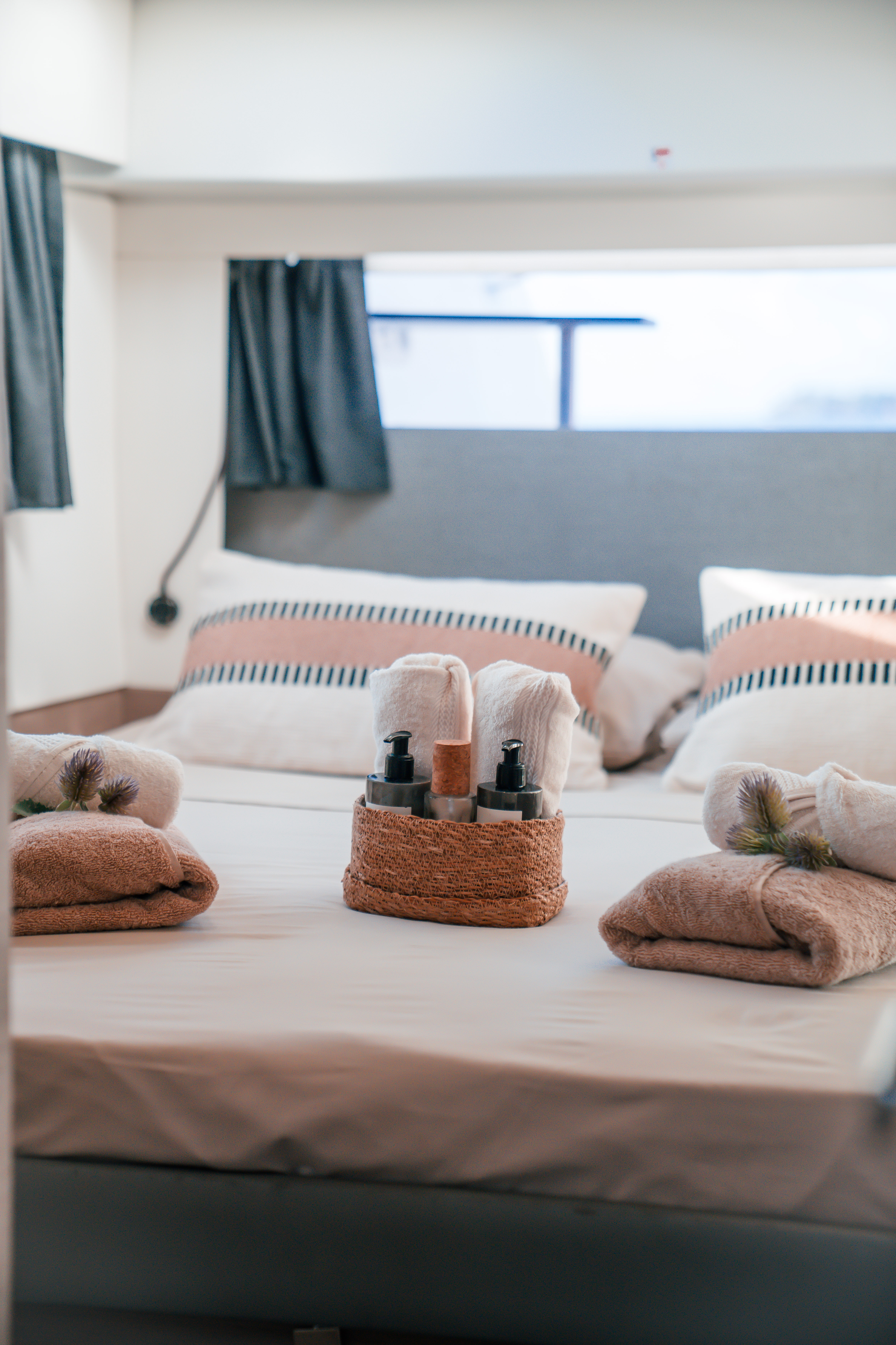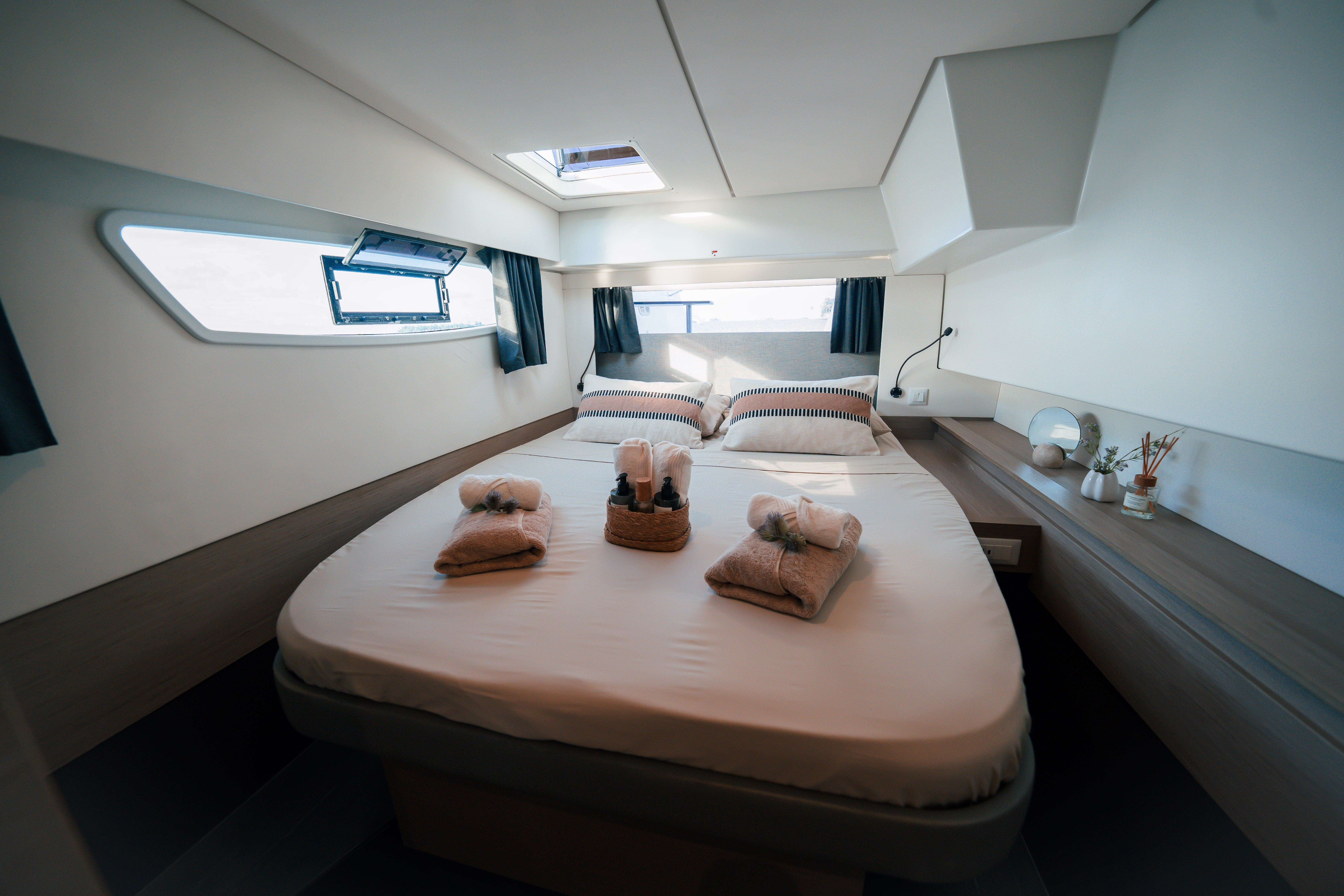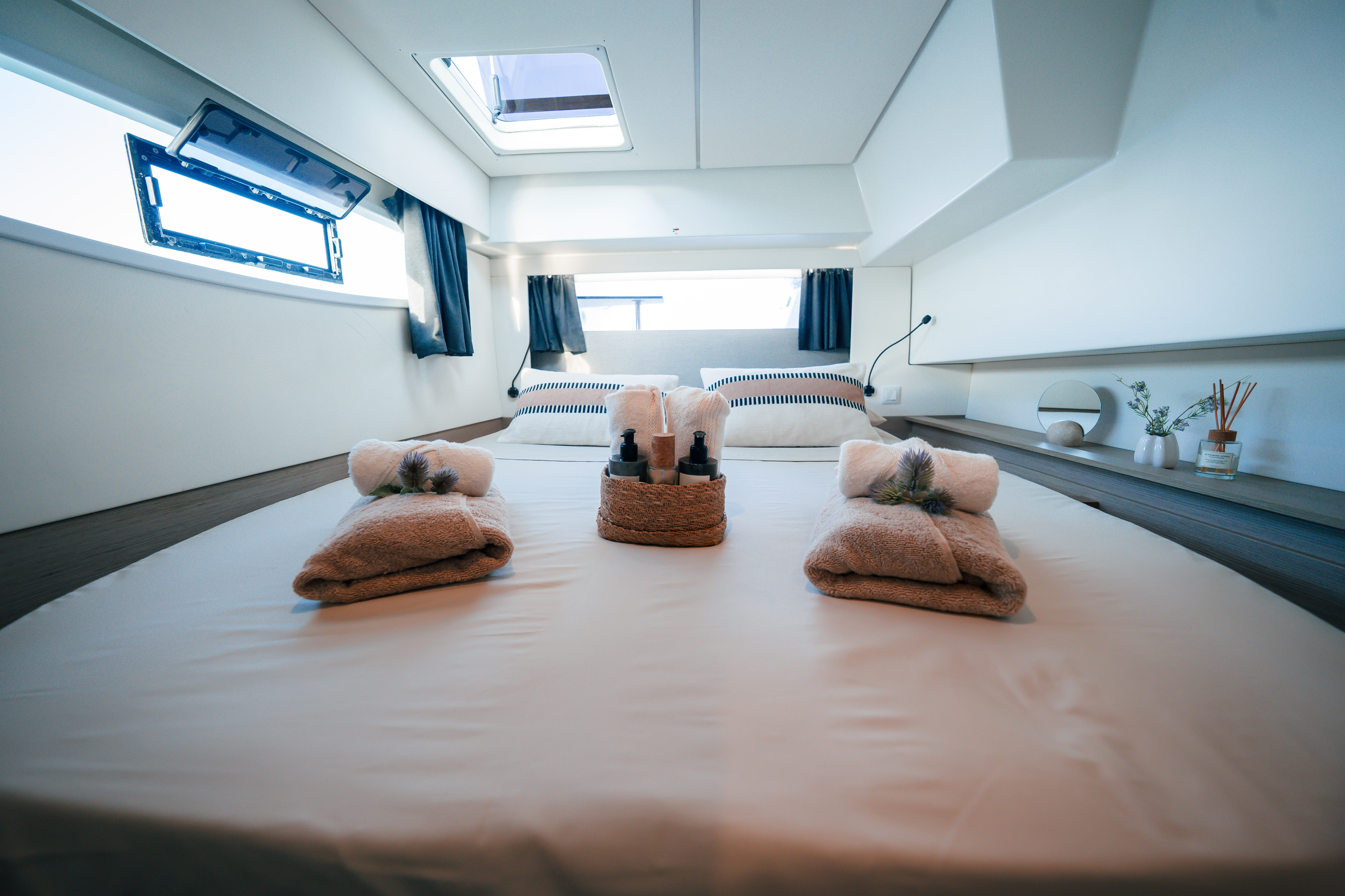 Cabin fansPaddleboardAttrezzatura per lo snorkelingDinghy with outboard engine AsciugamaniWi-FiSunchill - Floating Pool Fishing gearFully equipped galleyFornoFrigoriferoCongelatoreMacchina del ghiaccioSpacious salon with panoramic windows Aria condizionataChartplotterGPSVHFPilota automaticoEcoscandaglio