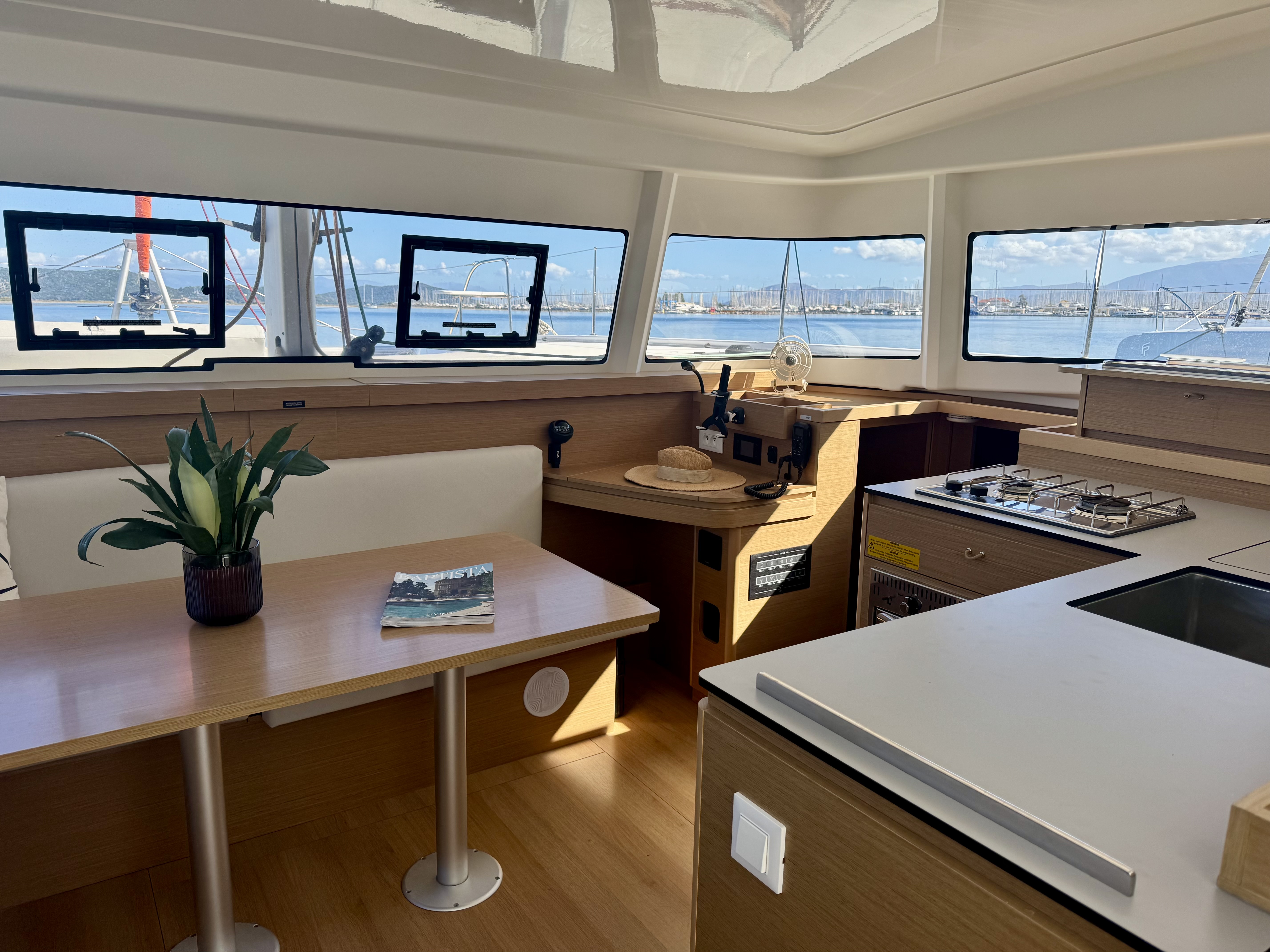 Pilota automaticoChartplotterCockpit GPS plotterLettore CD-RadioPannelli solariTenderCuscini in pozzettoBiminiGeneratoreFrigoriferoAltoparlanti in pozzettoWC elettricoWater makerGreek water pilotCarte nauticheNespresso Coffe MakerAsciugamaniCoffee makerFuoribordoCassetta attrezziLenzuolaLazy bagCusciniBlankets and towelsPillow casesBed sheets