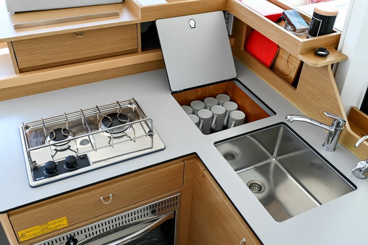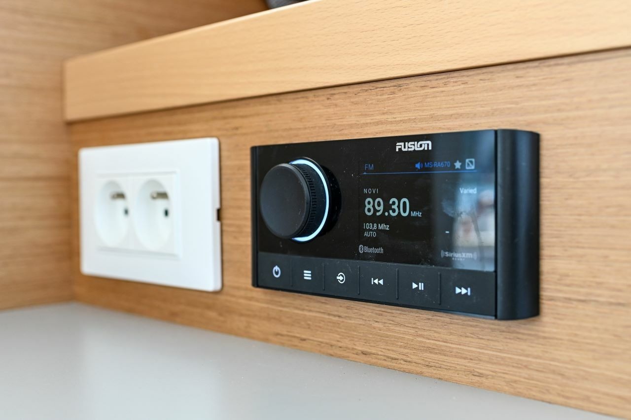 Cuscini in pozzettoLazy bagLazy jacksPilota automaticoBussolaGPSGPS chart plotterLogge/Lot/SpeedCarte nauticheSet di navigazioneWind instrument/AnemometerBlack Water TankEstintoreKit di primo soccorsoTorciaDotazioni di sicurezzaSet of toolsRadio VHFPannelli solariWatermaker - desalinatorAncora di rispettoBimini topCockpit/stern, outside showerSpazzoloneTenderSalpa ancora elettricoParabordiPlastic bucketSprayhoodAcqua caldaKitchen utensils (Galley equipment, cutlery)FornoFrigoriferoStufaElectric fans in cabinsWC elettricoInside showerFusion radioOutdoor speakersUSB