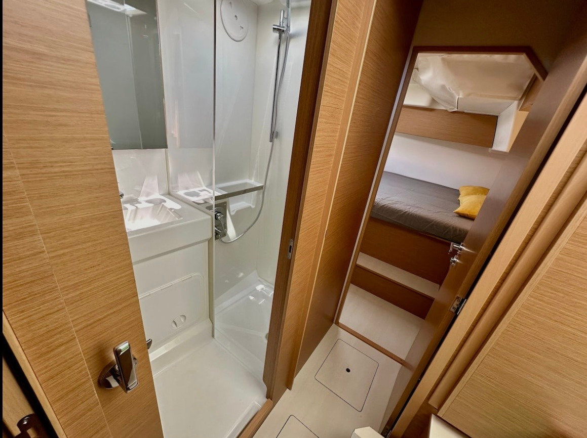 Cuscini in pozzettoWinch elettricoLazy bagLazy jacksPilota automaticoBussolaGPSGPS chart plotterGPS chart plotter - cockpitLogge/Lot/SpeedCarte nauticheSet di navigazioneWind instrument/AnemometerBlack Water TankEstintoreKit di primo soccorsoTorciaDotazioni di sicurezzaSet of toolsRadio VHFAir ConditionGeneratoreUSB socketsWatermaker - desalinatorAncora di rispettoPlancetta Specchio di PoppaBimini topCockpit/stern, outside showerSpazzoloneTenderSalpa ancora elettricoParabordiPlastic bucketSprayhoodCongelatoreAcqua caldaKitchen utensils (Galley equipment, cutlery)FornoFrigoriferoStufaElectric fansElectric fans in cabinsWC elettricoInside showerFusion radioOutdoor speakersUSB