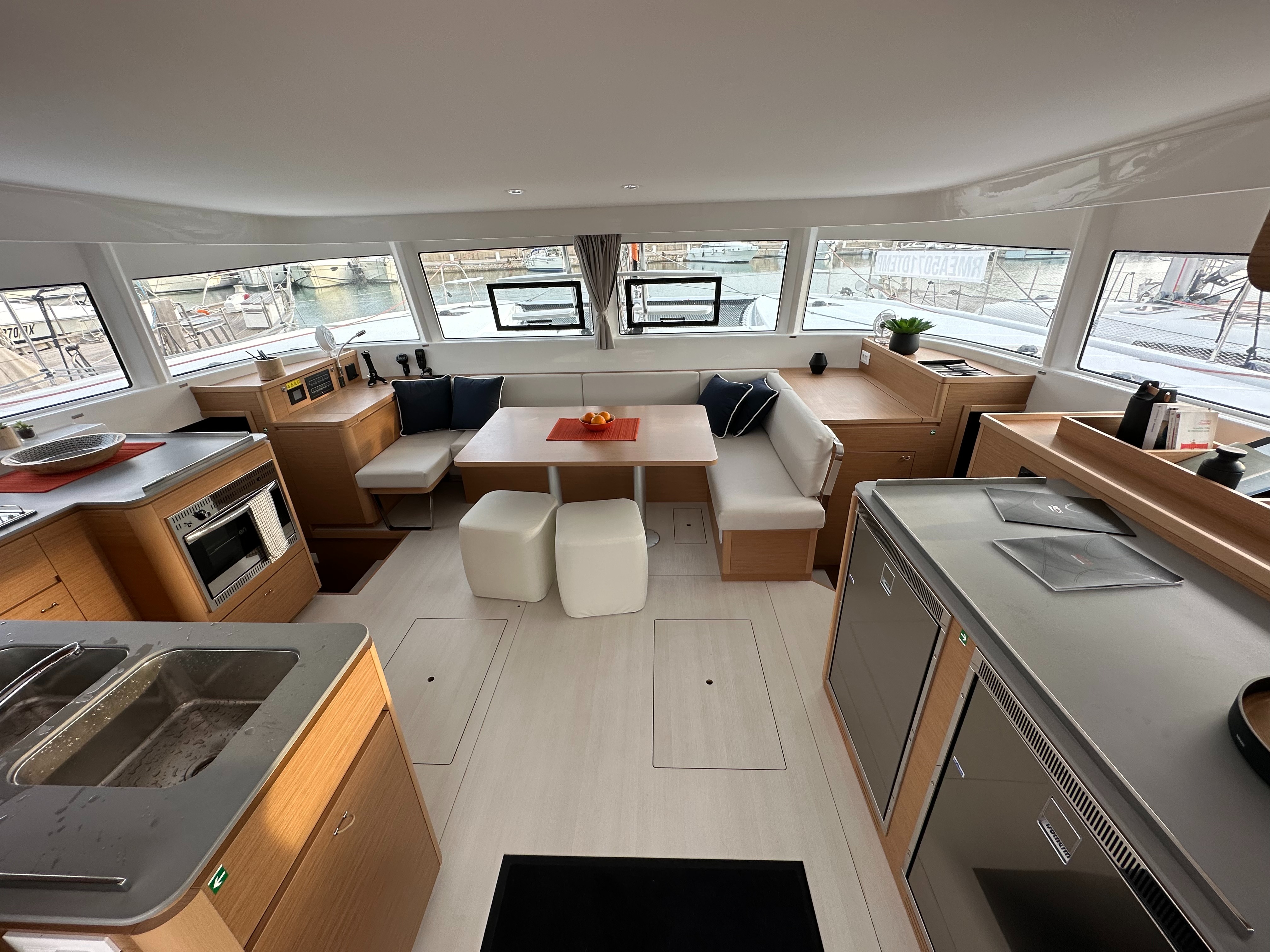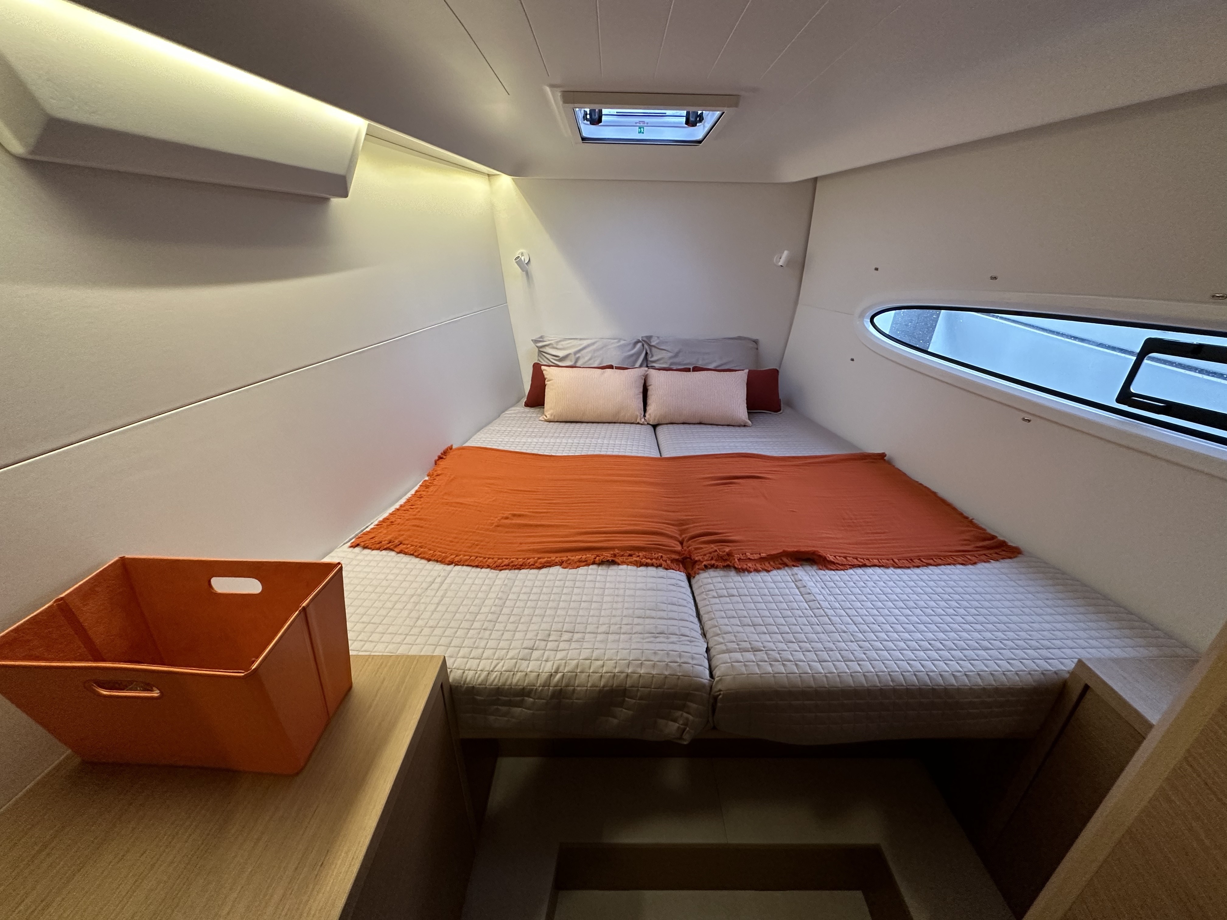 1x 75L drawer fridge 2x 130L front-opening fridges2x57HP saildrive with 3-blade folding propellers2x gas cylinders (2.75 kg)child safety netelectric anchor windlass with wired remotehot/cold cockpit showerLazy BagTender1x rod holderfolding PVC gangway with storage bagfixed internal VHFPilota automaticoSolcometrofishfinderStazione Ventowind stationweather stationtoolboxengine spare partsItalian flag safety equipment within 50 nm1x electric winchexternal cushions on seats and backrestscockpit in teak2x manual winchesPulse Line versionwatermakerLED lighting in cockpit cockpit table with extension, foldable to create a shaded lounge areabimini over the helmselectric mainsail travelerGarmin GPS chartplotter on starboard helm 1x manual crew toilet 4x head with electric toilet and holding tankCode-0Dacron square top mainsail, full battens laminate genoa1,48 mt2x fresh water tanks (600L total)2x fuel tank (400L total)Stand Up Paddle € 60,00/weekend - € 110,00/weekparking inside Marina di Nettuno € 17,00/dayextra towel set (face towel, body towel) € 30,00/double set - € 15,00/single setExtra bedding sheets pack € 15,00/single - € 30,00/doubleFusion Bluetooth stereo with internal and external speakers220 V outlets + 12 V outletfansgas ovenpots, pans, dishes, and kitchen utensilsUSB outletsinverter 2 KWmanual seawater foot pump with dedicated tapthree-burner gas stoveconvertible salon
