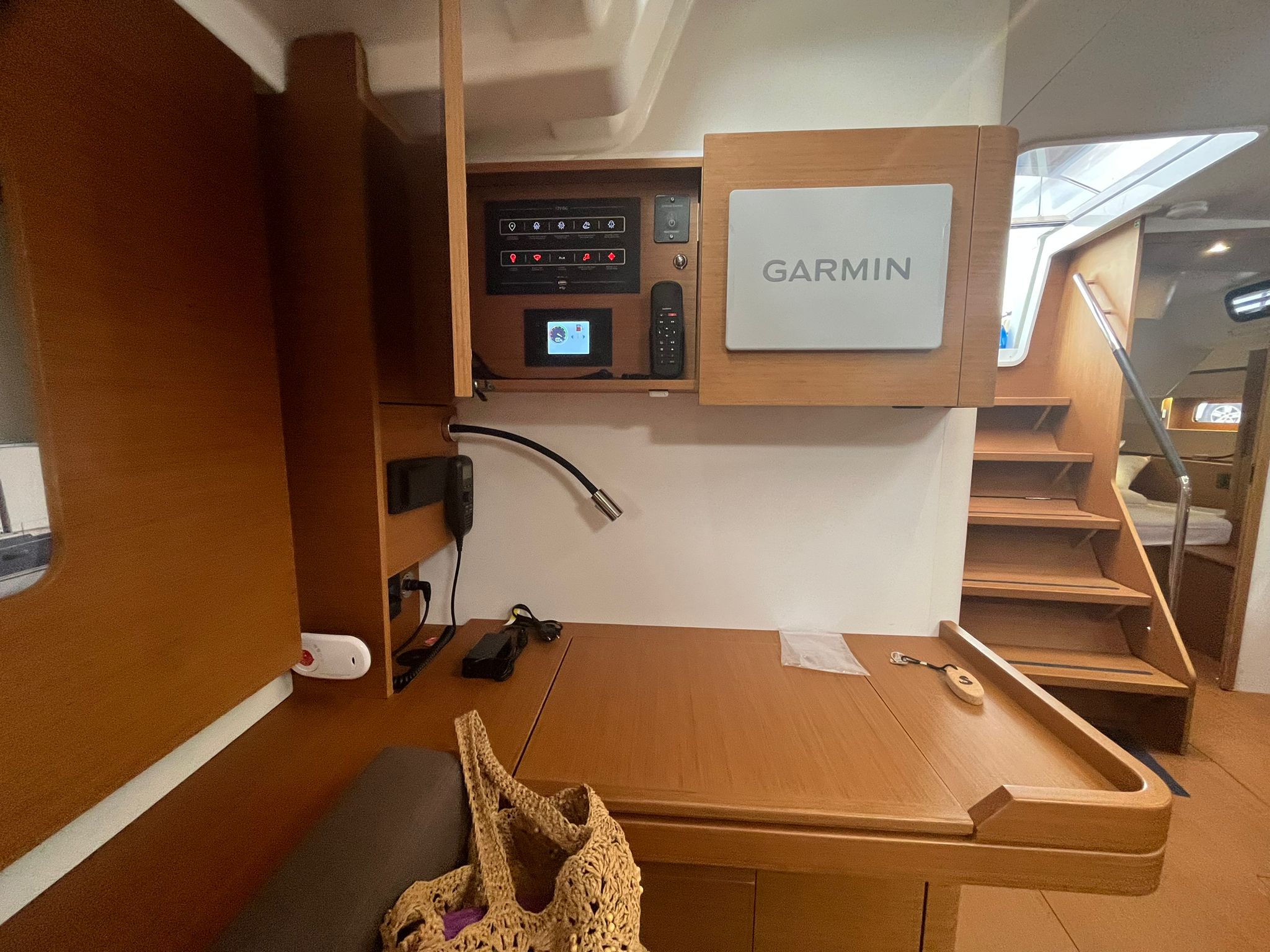 Stand up paddleJobe addict SUP boat rackAria condizionataElica di PruaSerbatoio acquaSea scooter FrigoriferoStove/ovenAcqua caldaBombole gasKitchen utensilsLenzuolaTowel set ( 2 pcs )LED lightningCoffee machineUSB portsNespressoSpring matressTenderCinture di salvataggioGiubbotti di salvataggioSegnale sonoroFirst aid setEstintoriEmergency signalsPompa di sentina elettricaPompa di sentina manualeFuoribordoCaricabatterieAlimentazione a terra 220VPilota automaticoGPS charter plotterVHFFM radio/USB connectionBussolaCarte di nauticheManualeStazione VentoElectric toilet quiet flushSpeed meterDepth meterInverterHelmSprayhoodBiminiAncora di rispettoSalpa ancora elettricoAltoparlanti in pozzettoTavolo in pozzettoTeakCockpit cushions setSpare anchor Mast and boom lightningDoccetta in pozzettoAmbient Led lightning on deckPasserellaPlancetta Specchio di PoppaTender garageSunshadeGenoa avvolgibileRanda steccataElectric winch for main sailDeep cast iron keelMast