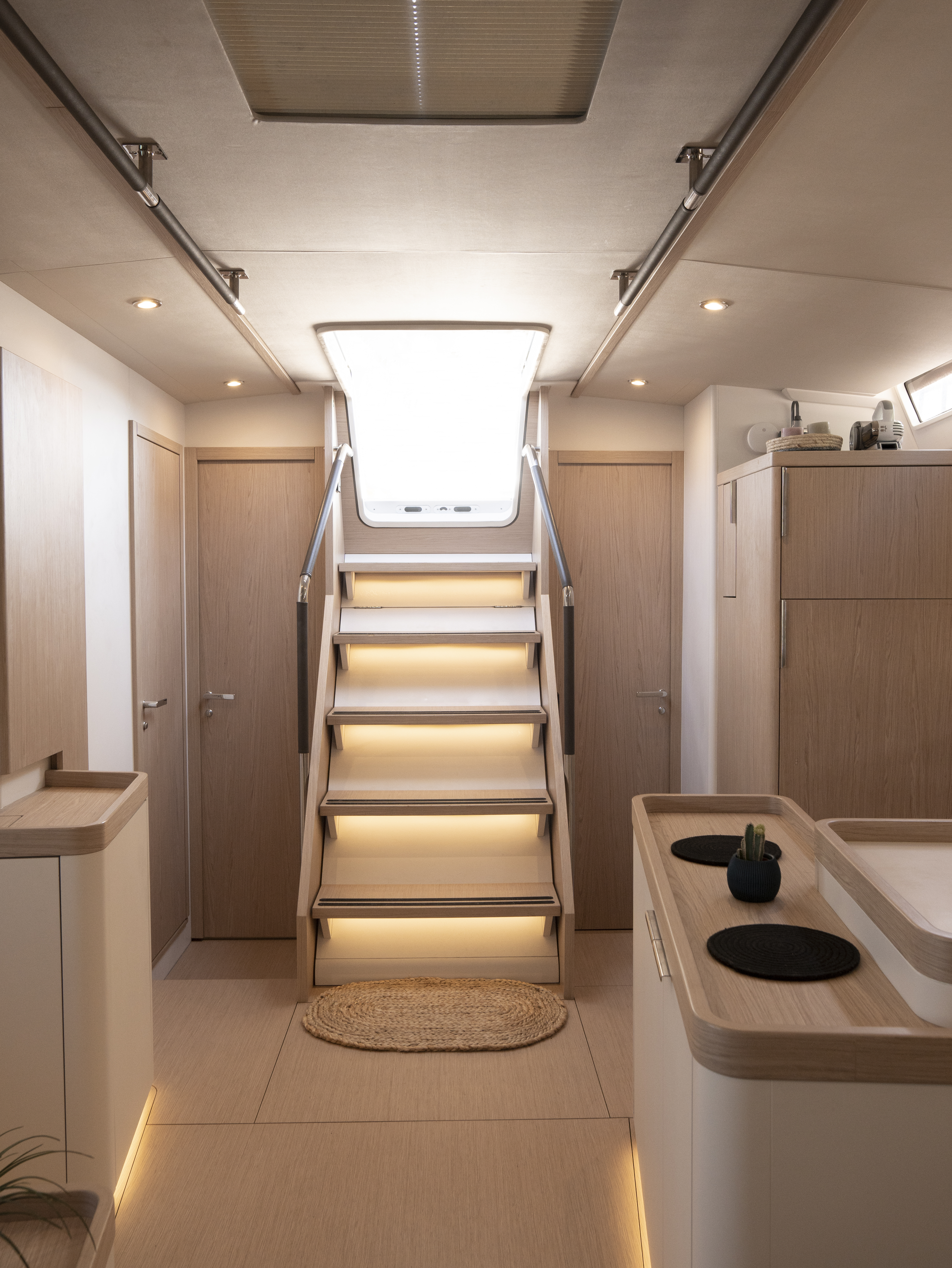 Full teak deckGeneratoreWater makerAria condizionataUnderwater & Mast LightsCarbon Steering wheelFull kitchen equipmentCocktail/Bar equipmentWeber BBQSprayhoodBiminiExtra shadow coversSwimming platform & ladderCockpit tablesDoccetta in pozzettoAttrezzatura per lo snorkelingSalpa ancora elettricoWC elettriciCuscini in pozzettoPasserellaFridge & Chill boxInverterPilota automaticoAISGPS+plotterVHFDotazioni di sicurezzaDinghy with outboardBed linen & TowelsSUPFull Batten MainsailGenoa avvolgibile