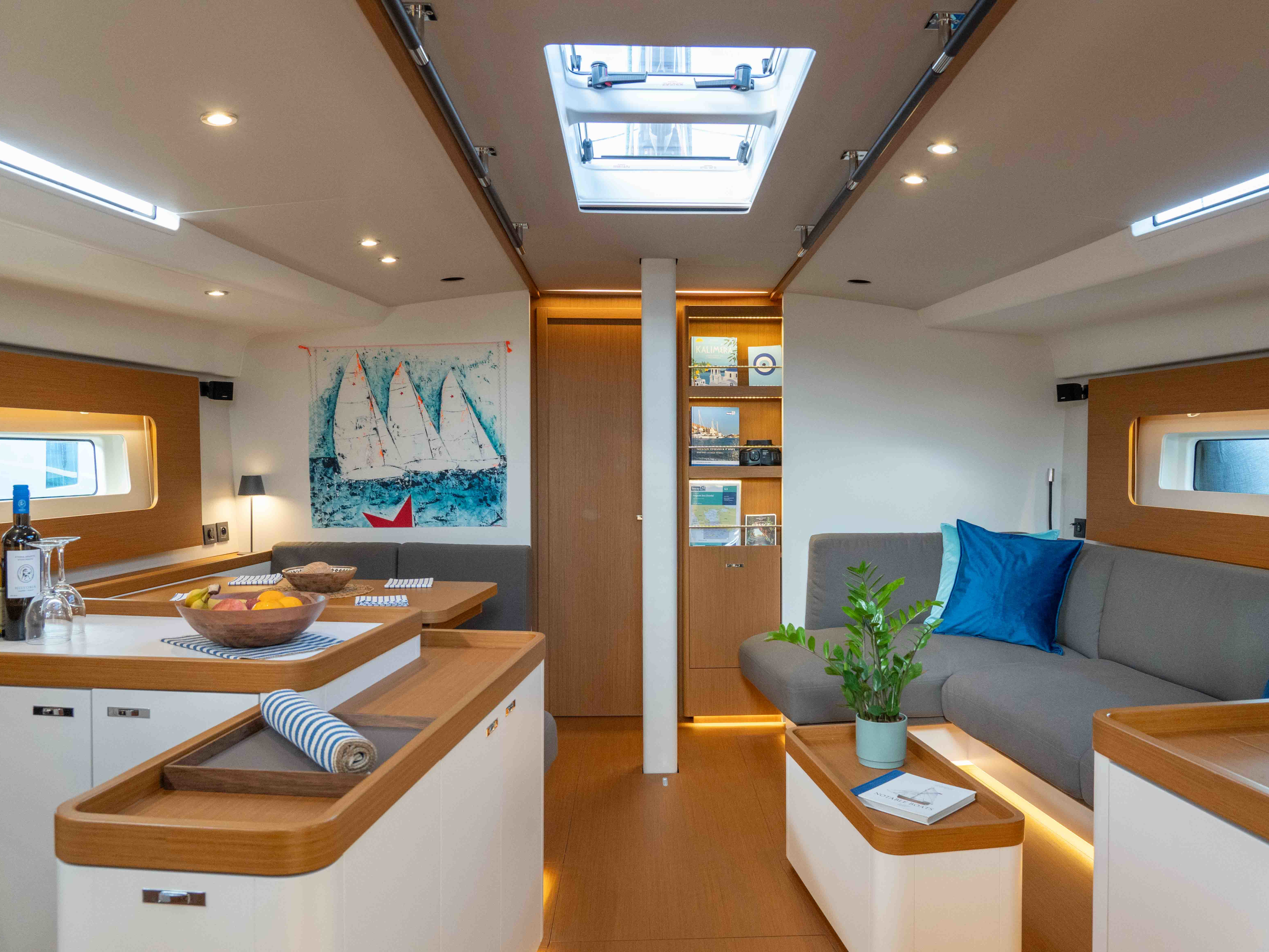 Full teak deckGeneratoreWater makerAria condizionataUnderwater & Mast LightsCarbon Steering wheelFull kitchen equipmentCocktail/Bar equipmentWeber BBQSprayhoodBiminiExtra shadow coversSwimming platform & ladderCockpit tablesDoccetta in pozzettoAttrezzatura per lo snorkelingSalpa ancora elettricoWC elettriciCuscini in pozzettoPasserellaFridge & Chill boxInverterPilota automaticoAISGPS+plotterVHFDotazioni di sicurezzaDinghy with outboardBed linen & TowelsSUPFull Batten MainsailGenoa avvolgibile
