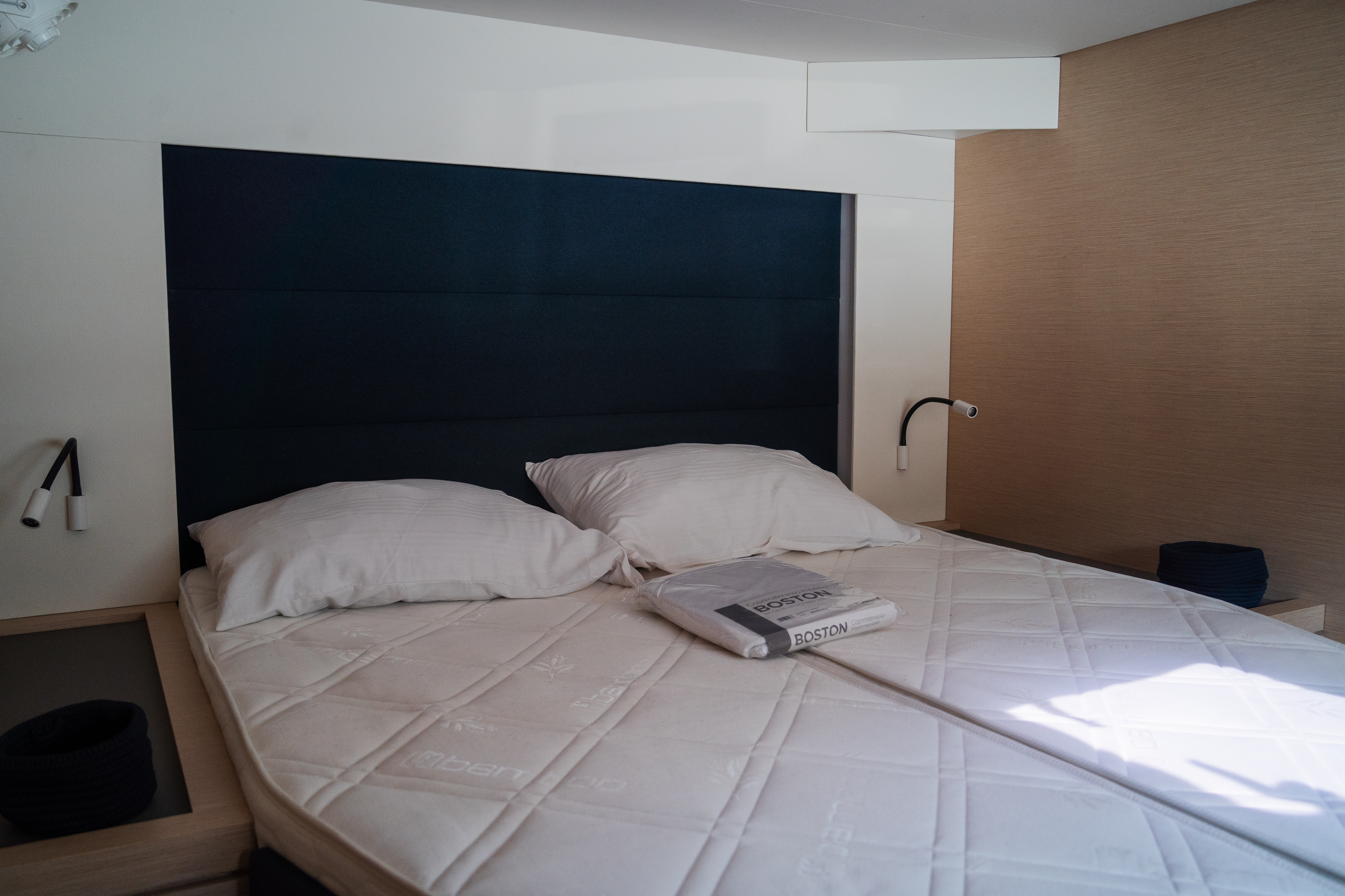 Lazy BagRanda steccataGenoa avvolgibileSolcometroRadio/CDAltoparlanti in pozzettoAir Cond. CLIM.220V 50HZ 6800 BTU QUINTET in all cabinsRiscaldamentoAcqua caldaBiminiSalpa ancora elettricoFrigoriferoCongelatoreGenerator Panda 16000 KWPannello solareDinghy 3.40 mtEstintoreAncoraKit di primo soccorsoSalvagenteZattera di salvataggioCuscini e coperteTachimetroStazione VentoRadio Cass/Radio/CD Player with Speakers in Saloon & CockpitSpray hoodAncora di rispettoCarte nautiche e guidaGiubbotto di salvataggioNespresso 220v coffee machine32" Flat screenElectric Wc in all cabinsCockpit RefrigeratorWinch elettricoWind stationTavolo in pozzettoStereo + 4 speakersFornoVHF (Int/Ext)AIS (Int/Ext)CaricabatterieElectric supply: 220-12 voltStern fendersBow cushionsGas BBQElectric multi-function tableCuscini in pozzettoGangway Classic in woodInverter 2000WElectric Winch for TenderRadarPilota automaticoSpare Batteries AGM 150A supplWatermaker OSMOSEA 100 lt/hFans 12V in all cabinsGarmin GPS 7410 2* Multi GMI20 (int/ext)