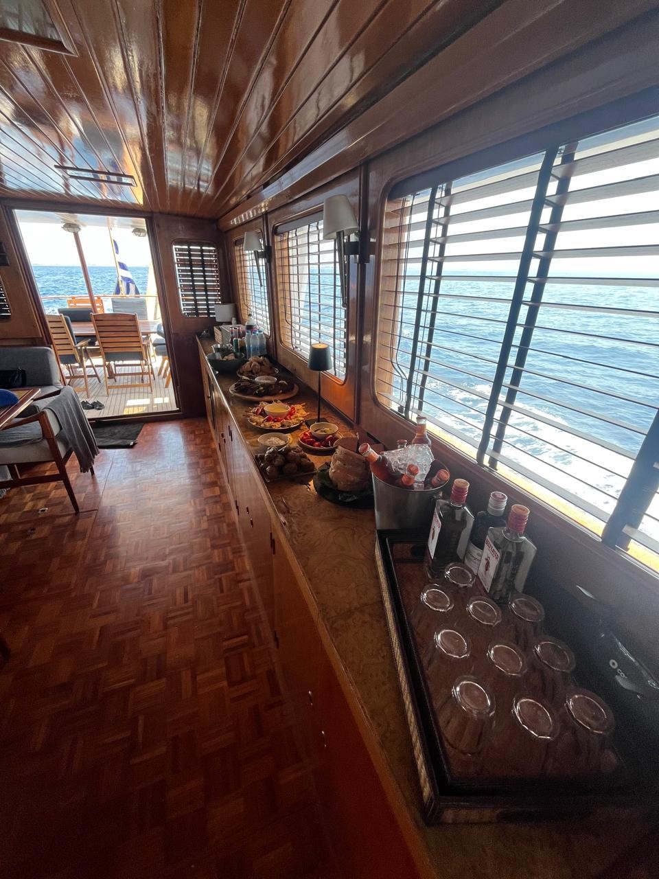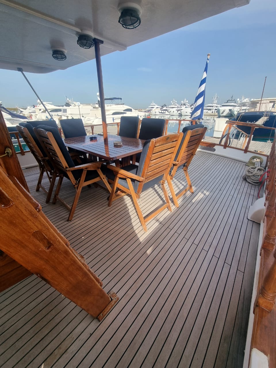 Outside GPS plotterPilota automaticoSprayhoodWC elettriciElica di pruaTenderInverterBiminiCookerFornoKitchen utensilsFrigoriferoLavelloOutside & inside speakersAudio systemOutside showerCongelatoreGeneratoreAria condizionataPlancetta Specchio di PoppaForno a microondeHydraulic Boarding Gangway/PassarelaFull Teak DeckRadio CD / MP3 / BTCoffee machineExtrenal cushionsWater maker
