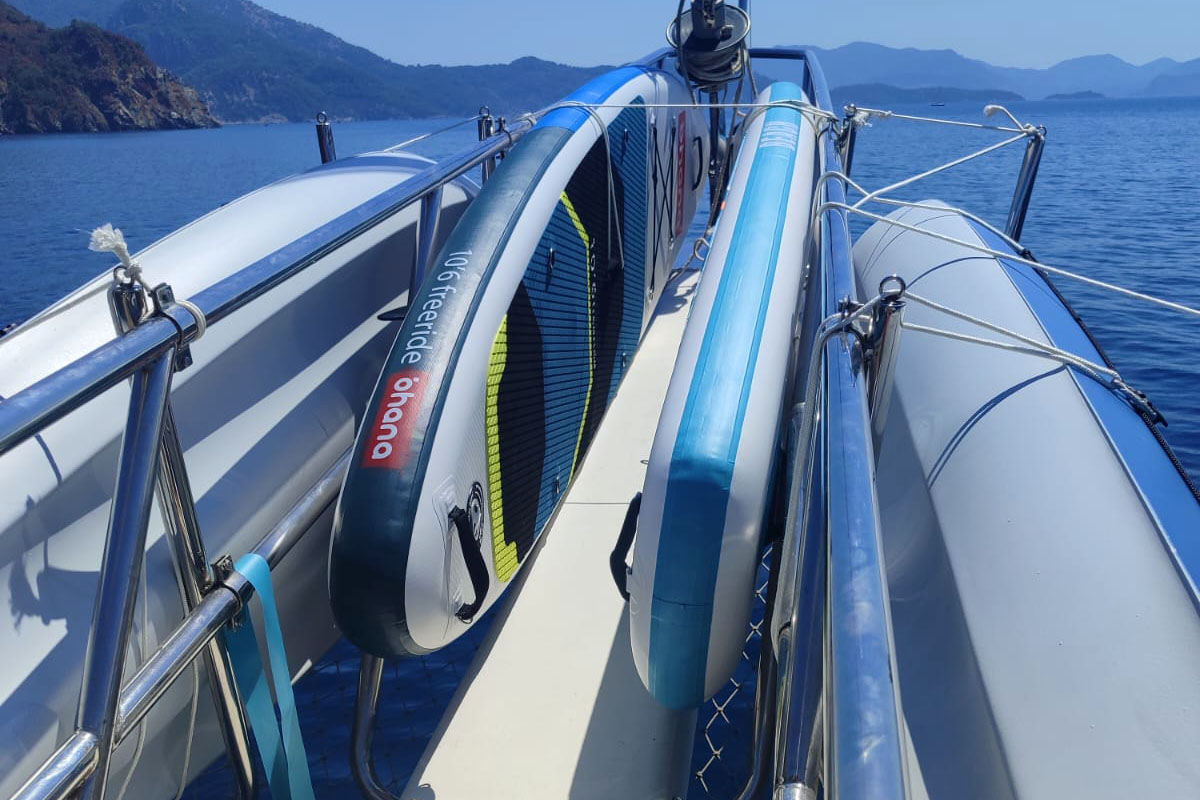 Doccetta esternaFuoribordoPaddle boardsWater-skiWakeboardSnorkel EquipmentCanoesFishing tackleTV and Sattelite in all cabins and salonTender with outboardIce machineFilter coffee machine