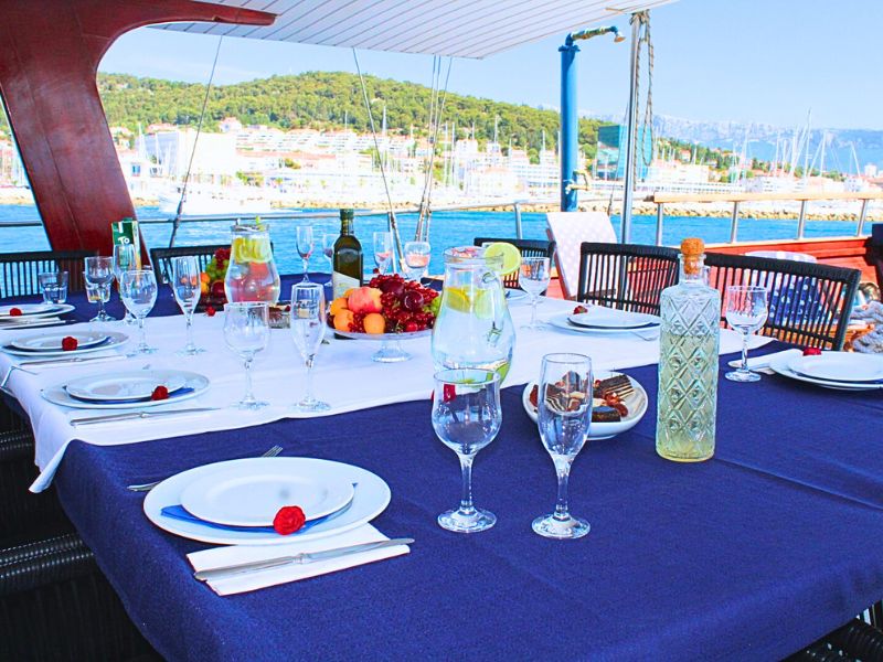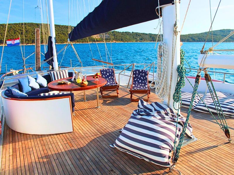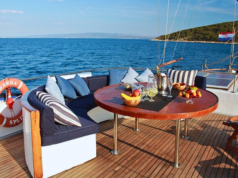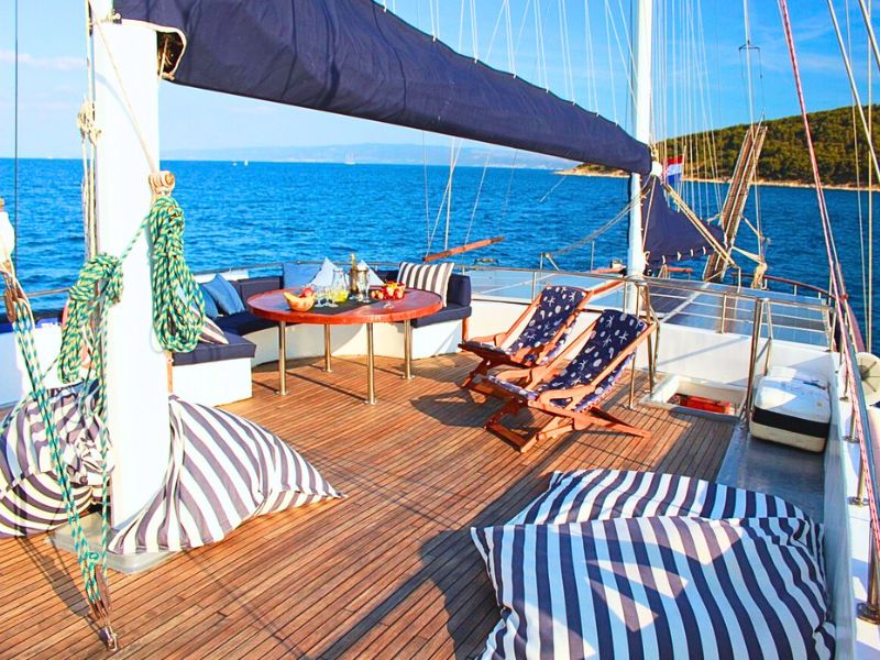 Lettore MP3PC in salonWi-FiTV + DVDSunbathing areaTavolo in pozzettoSunbathing cushionsSun TentAir conditionerTVGeneratoreWater skiJet skiDonutPaddle boardCanoesDouble bed cabinCusciniLenzuolaCoperteAsciugamaniLenzuolaTwin bed cabinBiminiDoccetta esternaSalon TV/DVDSalon Stereo/MusicSat TViPod/MP3 HookupsBooks / DVDs / GamesSun AwningHammockWind ScoopsBBQHair DryersIce MakerInverterWatermakerTenderSea BobSea ScooterWakeboardTubeSUPKayakSnorkel and Fishing gearBeach gamesHelipadDeck JacuzziStabilizersElevatorsGymWheelchair AccessOnboard Internet