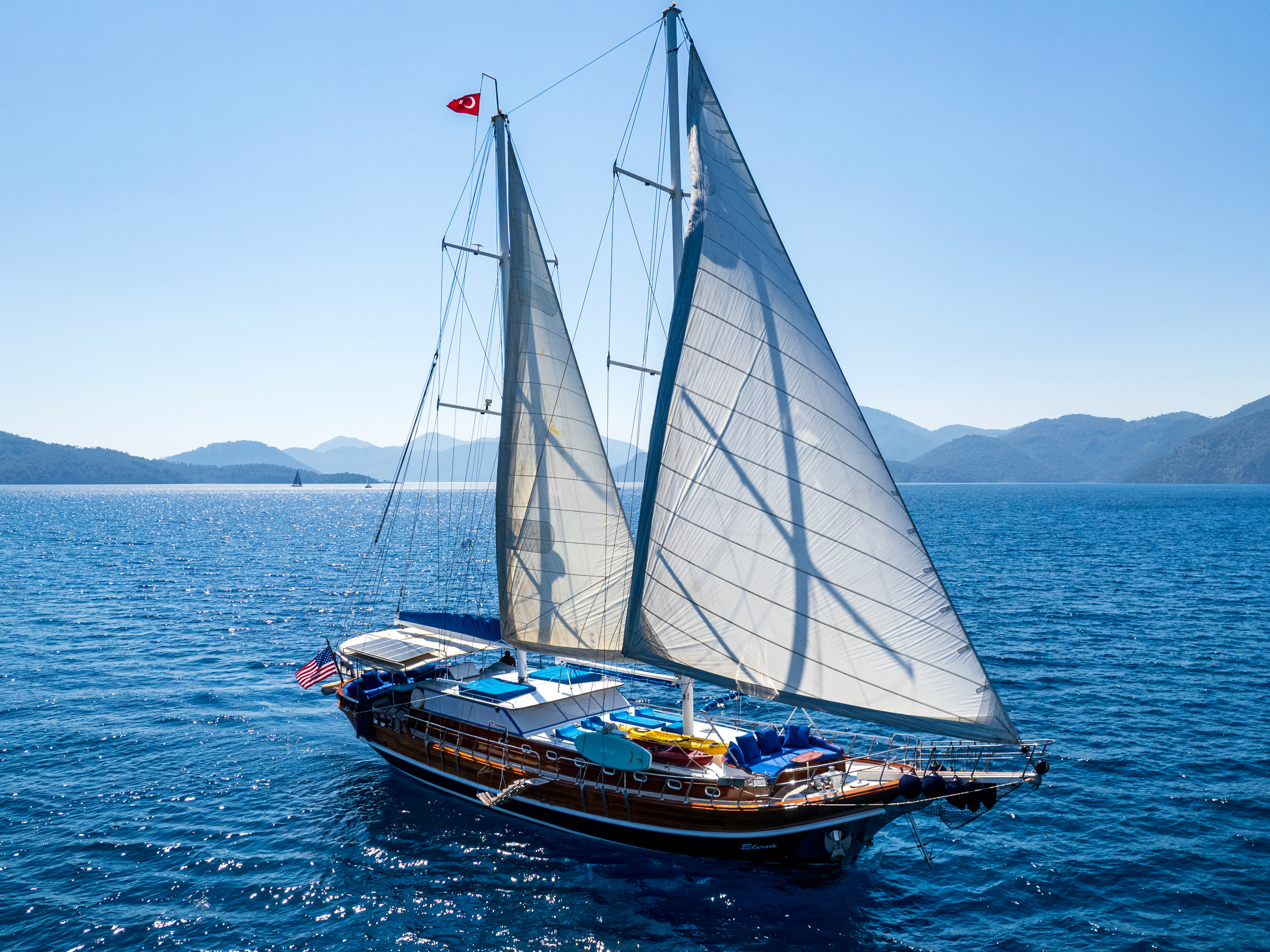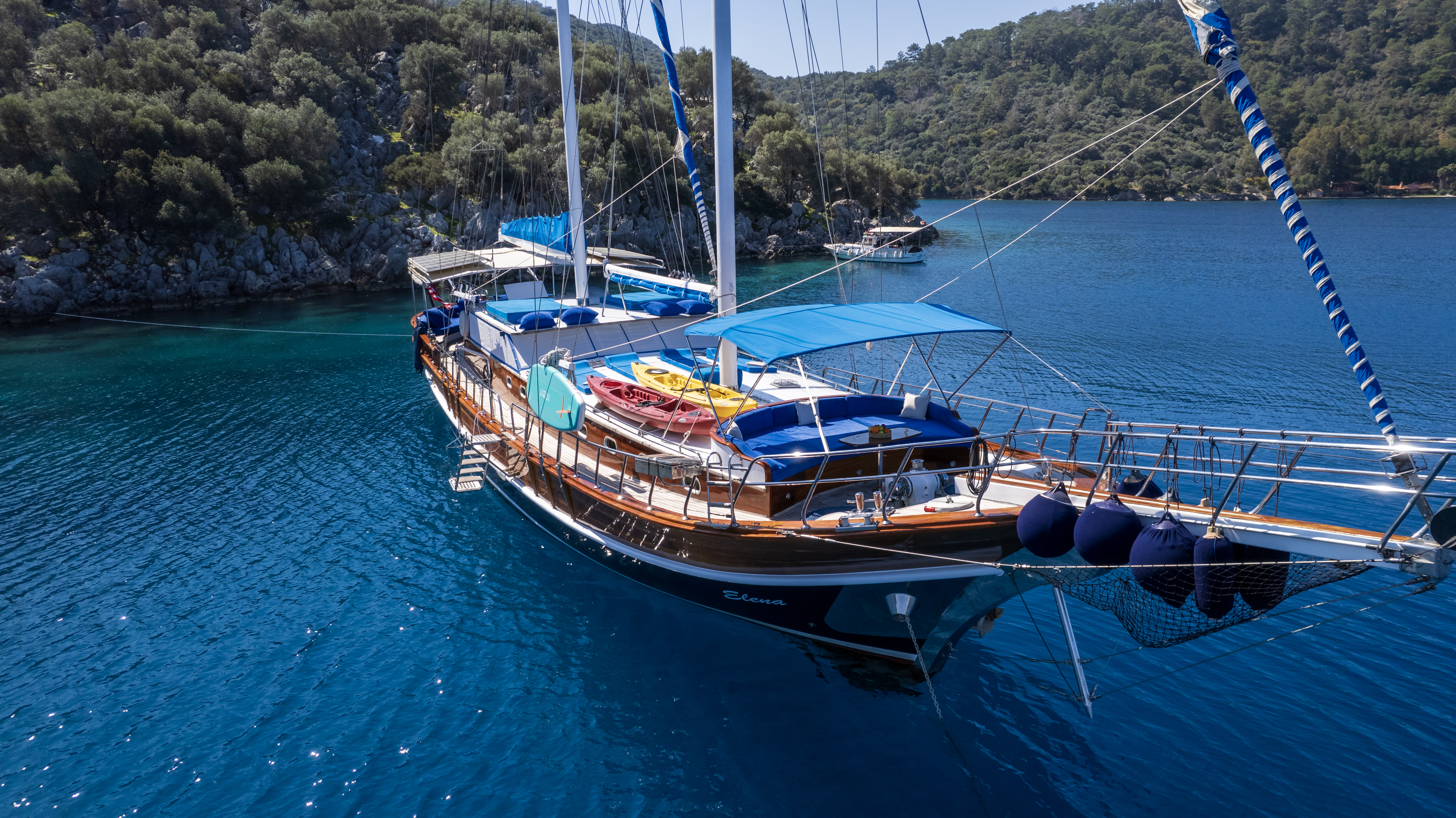 Sailing equipmentGiubbotti di salvataggioFully navigation equipmentsFully safety equipmentsWashing machineEstintoreMacchina del ghiaccioDoccetta esternaSun mattressesBar on deckSatelliteRadio VHFMusic system in saloon & deckCard gamesBackgammonInternet connectionEcoscandaglioBussolaGPSRadarWine coolerCoffee makerAria condizionataGeneratore24V, 220VWater maker Hardtop deckStand up PaddleRingoWaterskiOkay Games sets (2)DominoesJenga (2)Chess (2)4 Playing CardsTaboo Game (1)Twister (1)Scrabble (2)